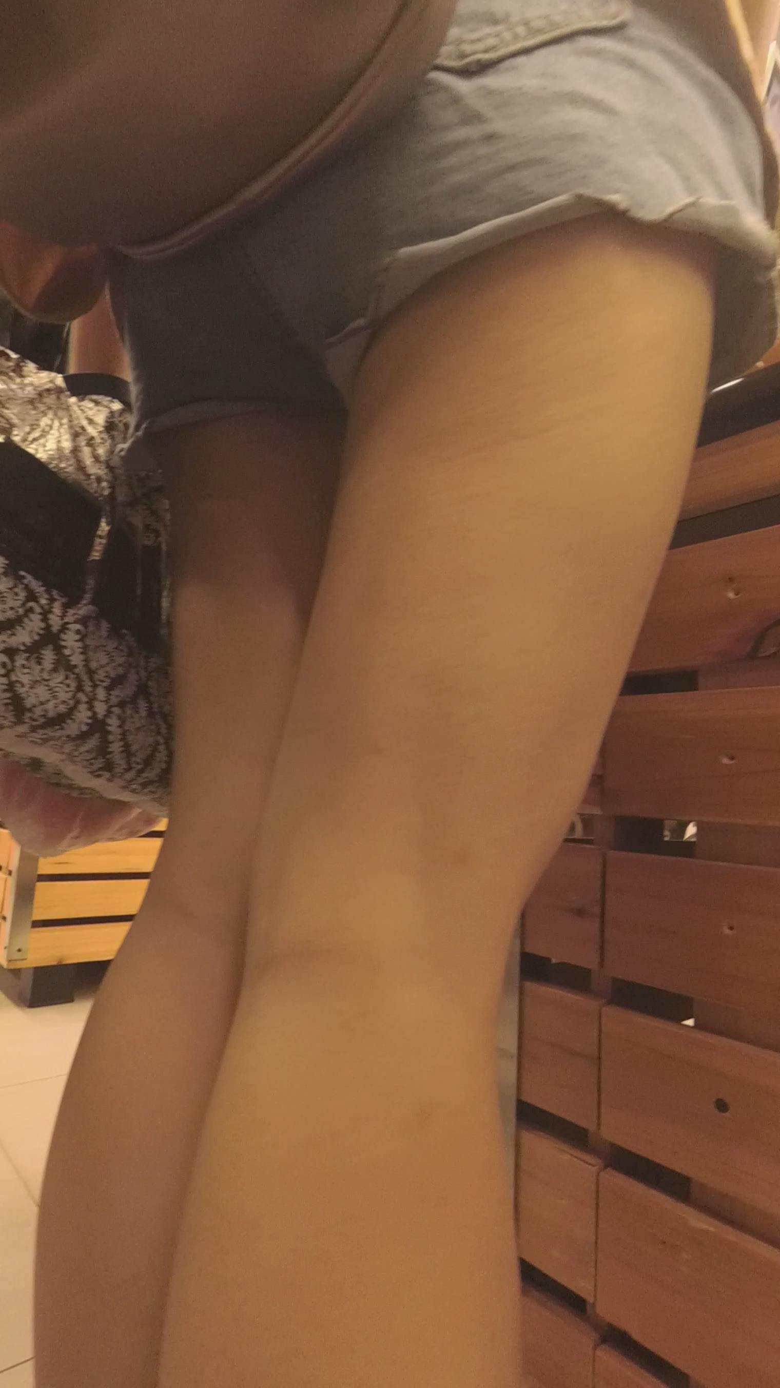 黄色衬衫牛仔热裤街拍美眉 编号4477