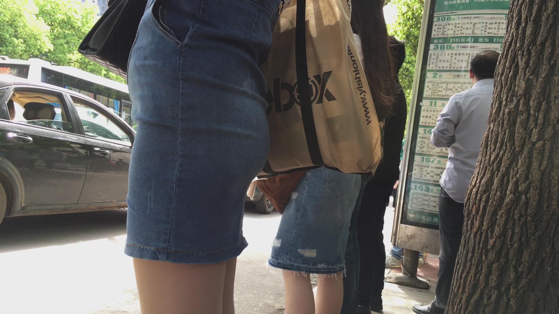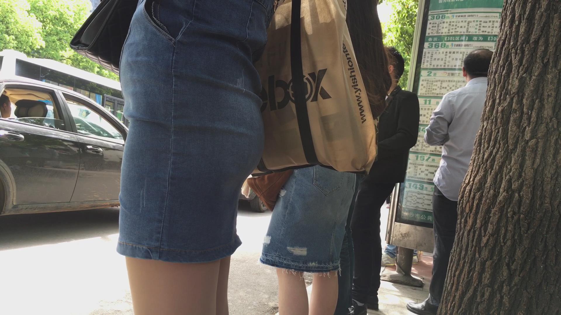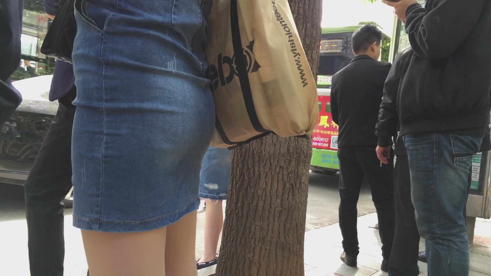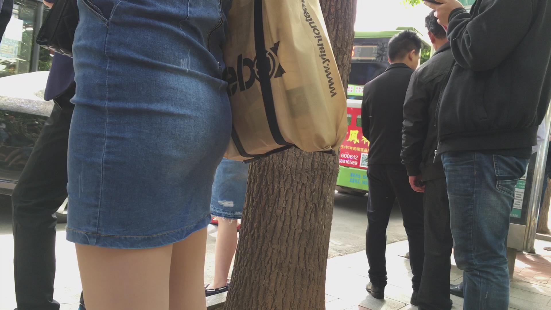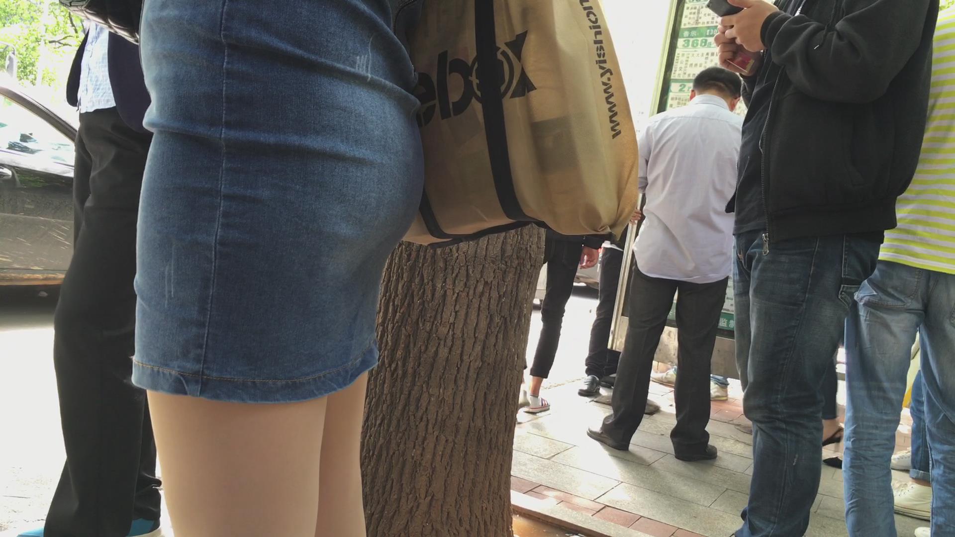等公车的翘臀牛仔紧身短裙少妇。 编号1777