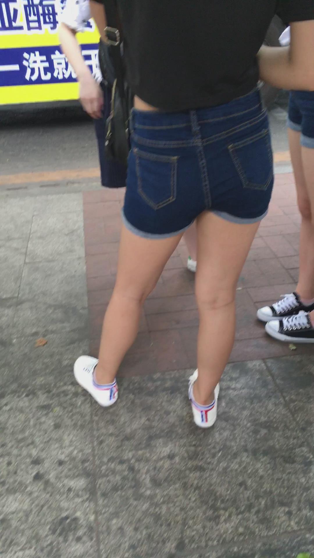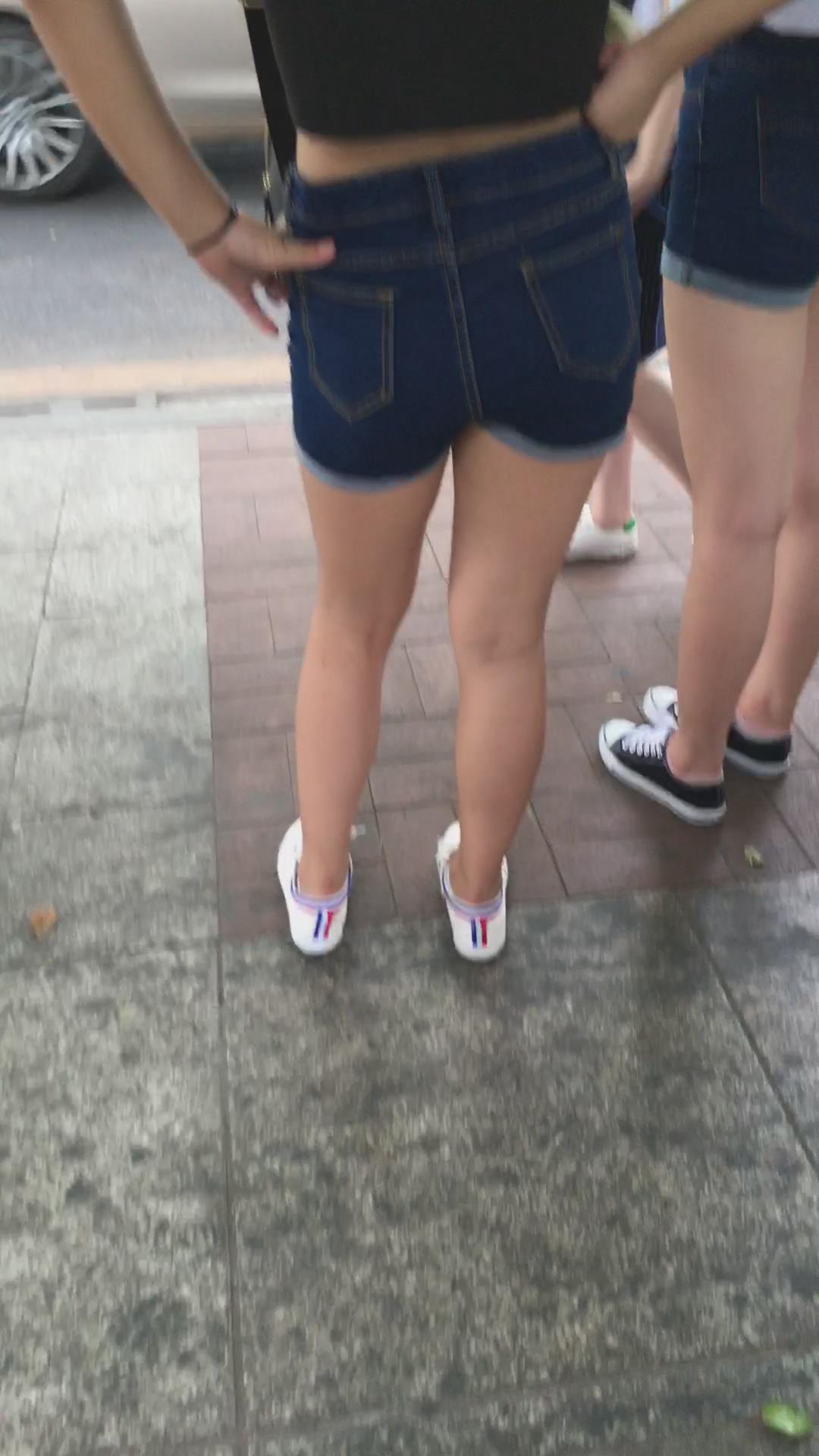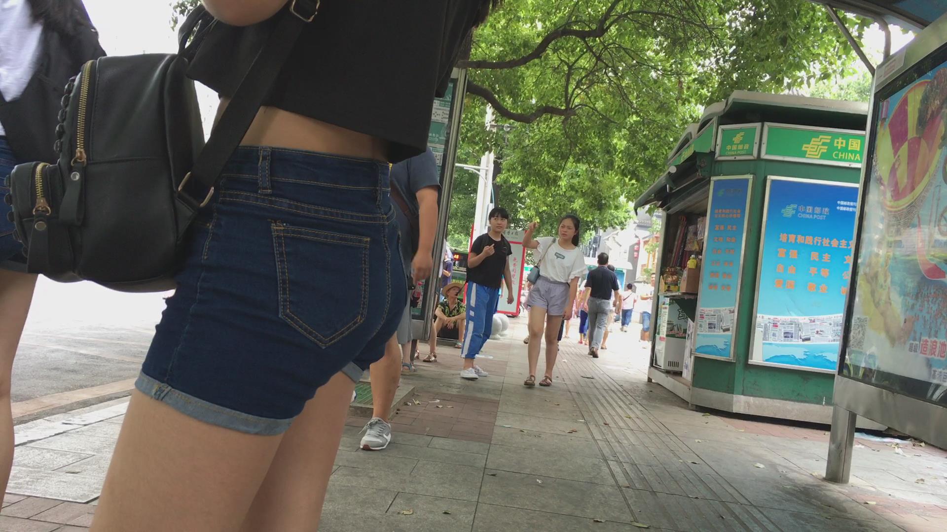 等公交的高腰牛仔热裤美臀少女。 编号4596