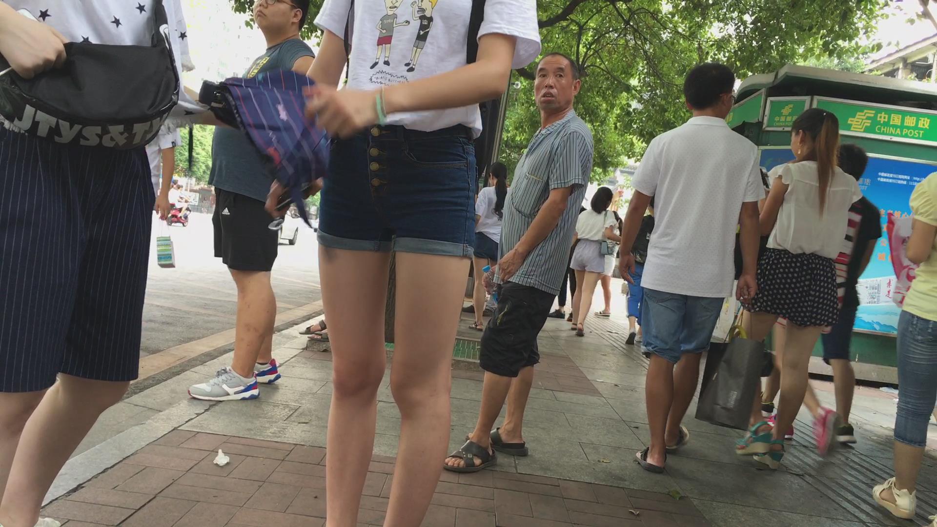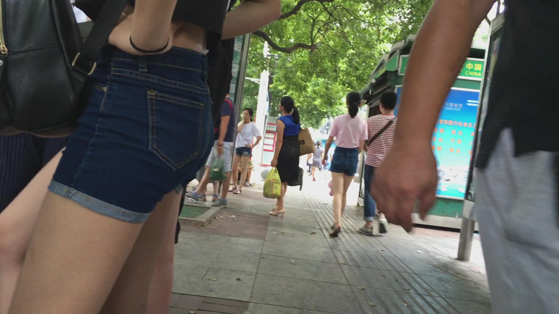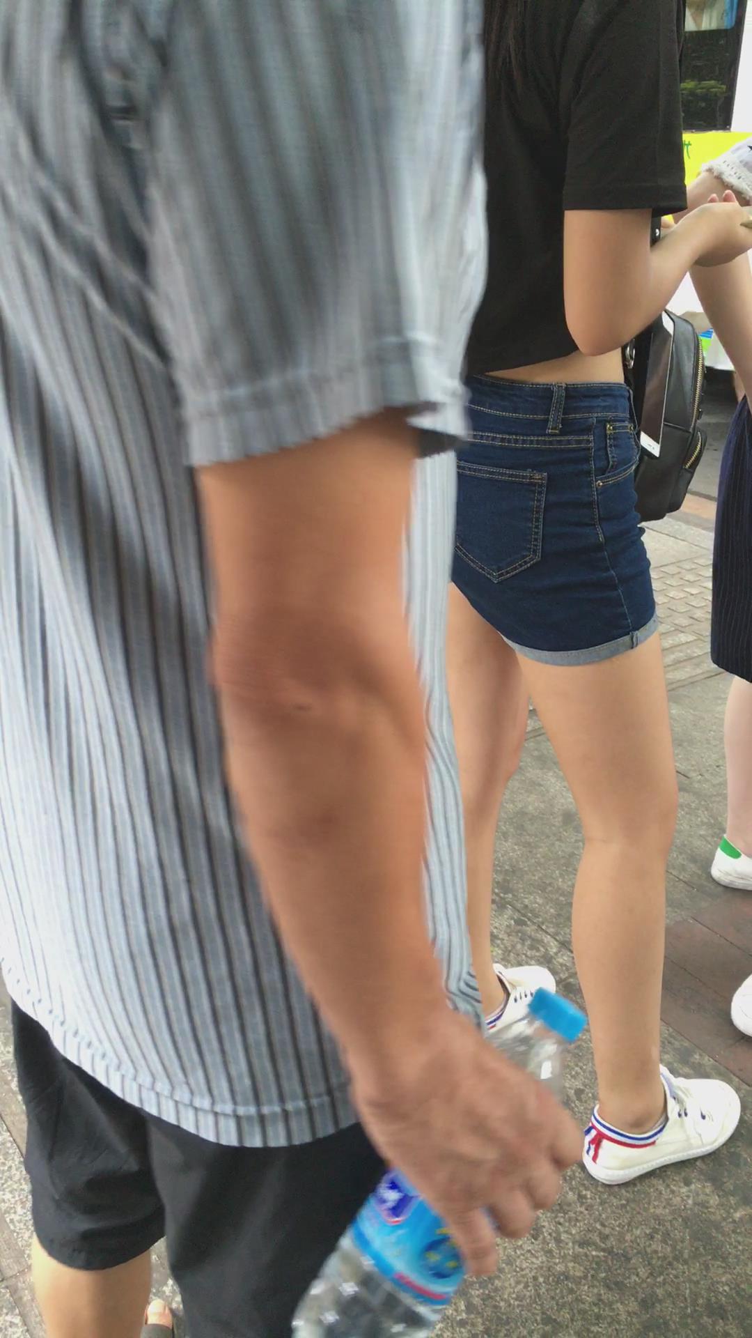 等公交的高腰牛仔热裤美臀少女。 编号4596