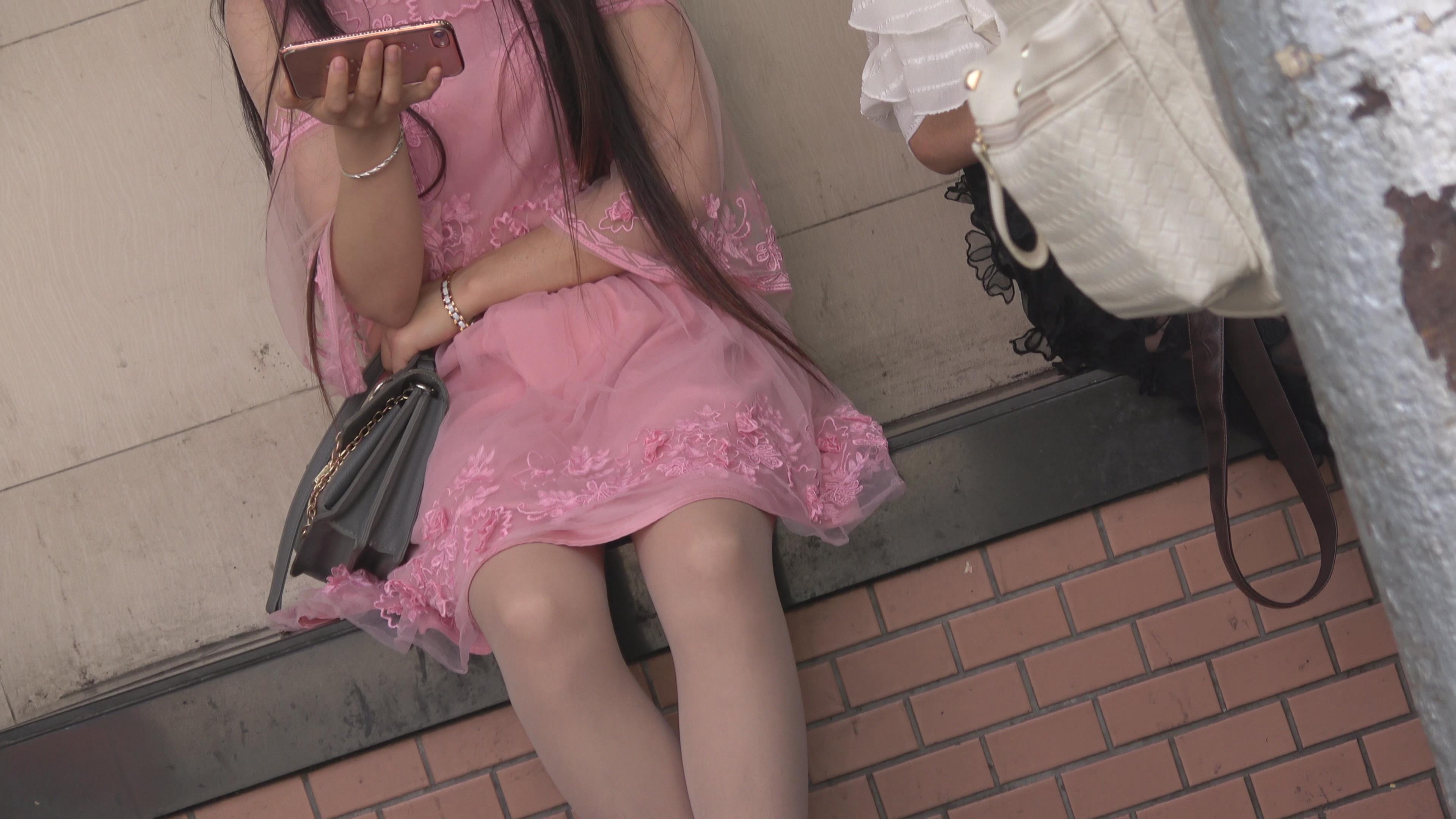 4K 百年一遇的粉群高跟街拍丝袜美女 编号6380