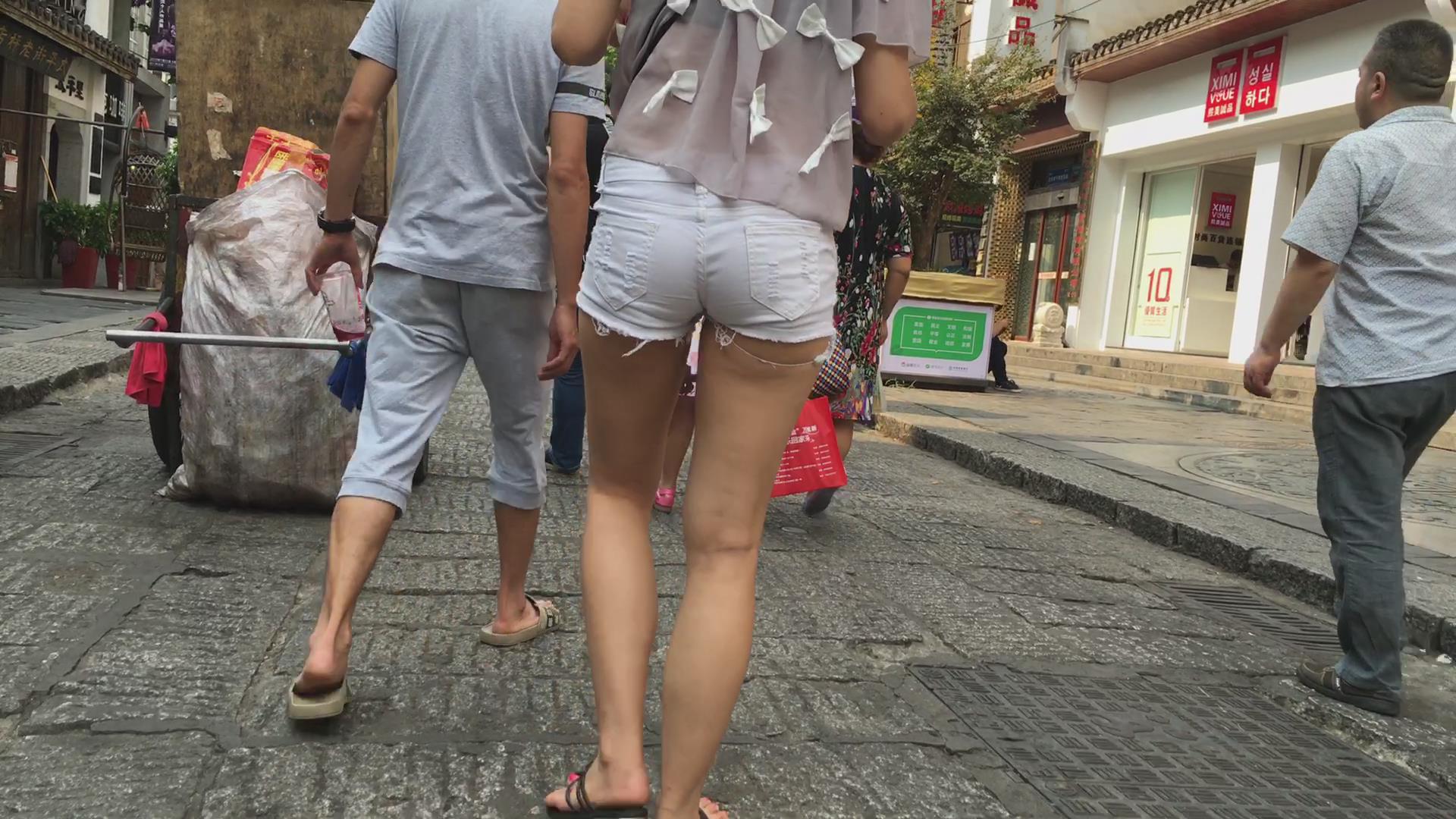 超紧身小圆臀白热裤美女陪男友压马路。 编号4599