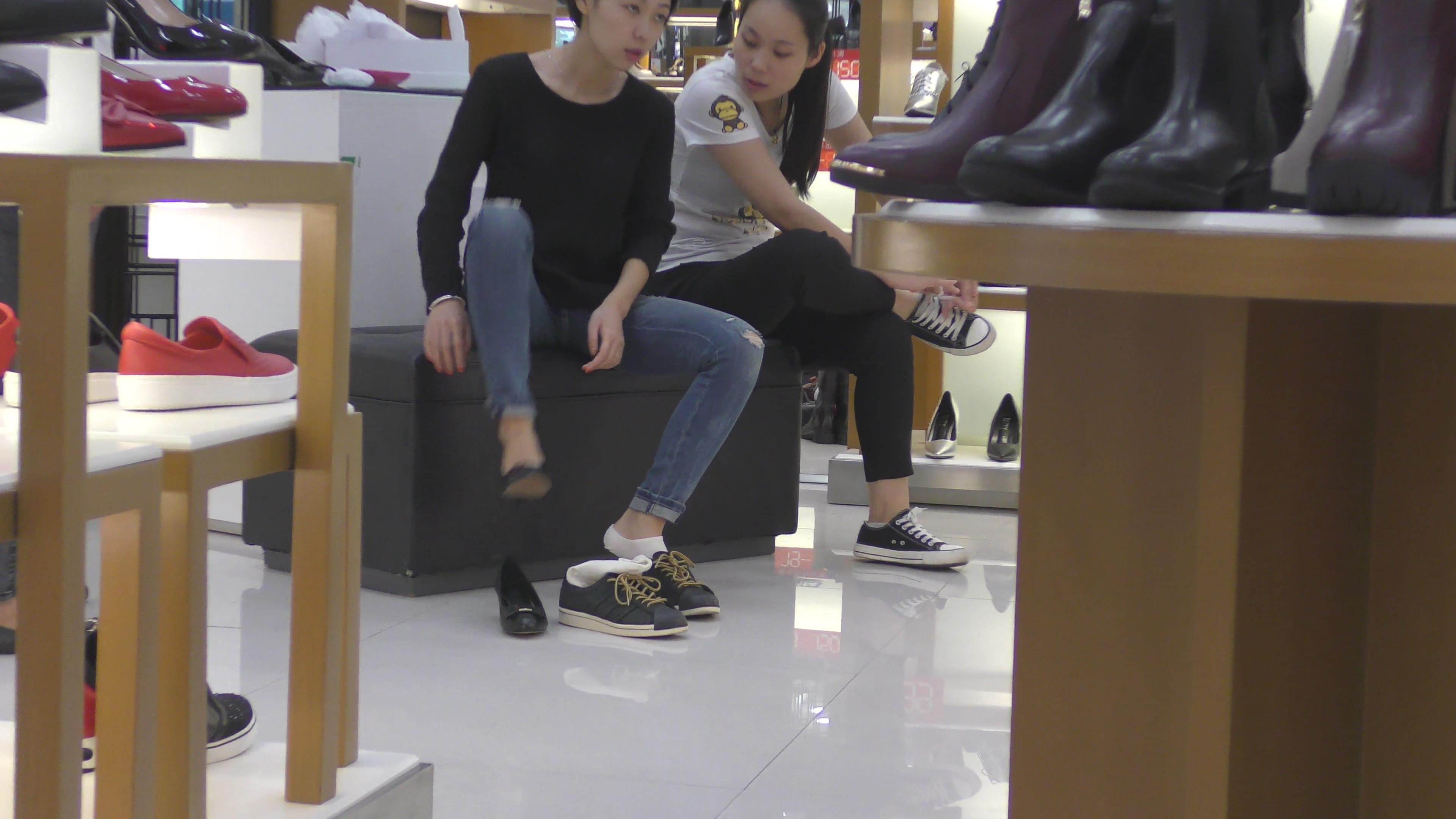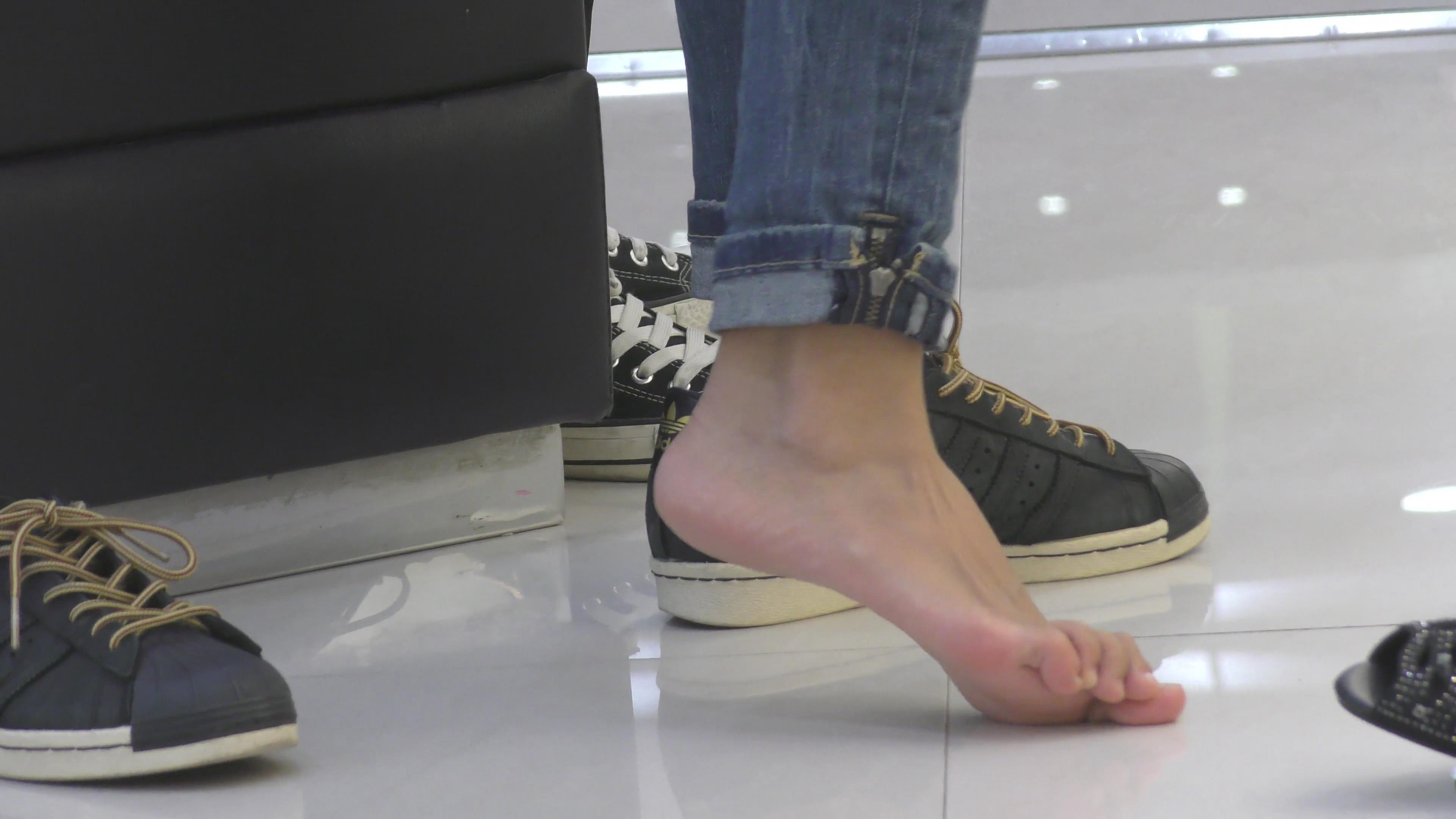 4k超清,紧身蓝牛小清新妹子鞋柜试高跟 编号6466