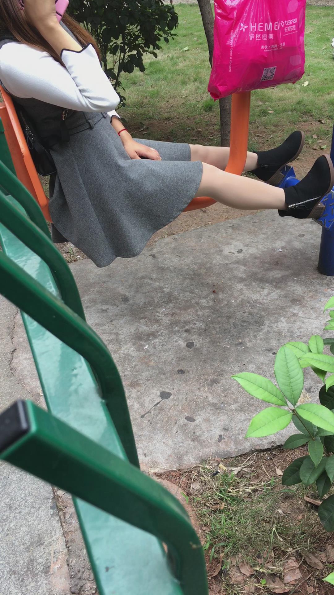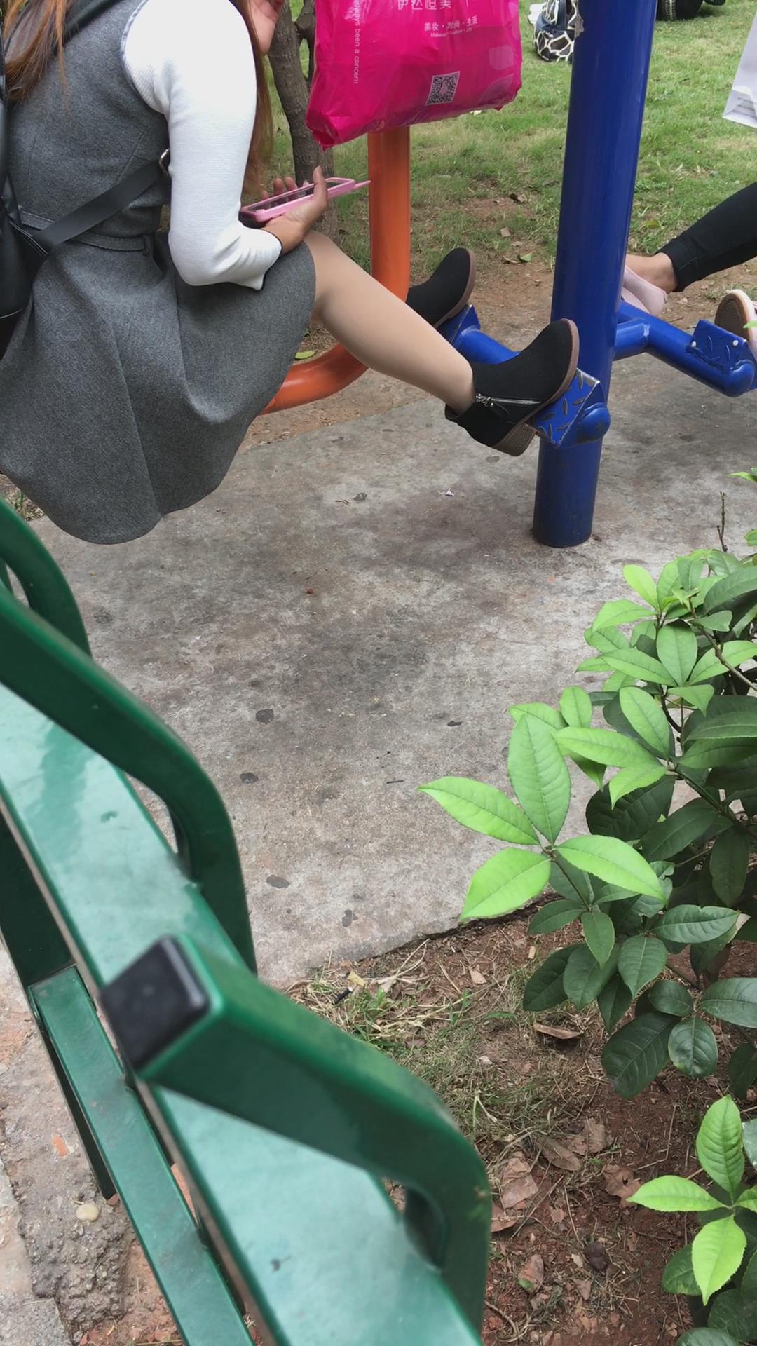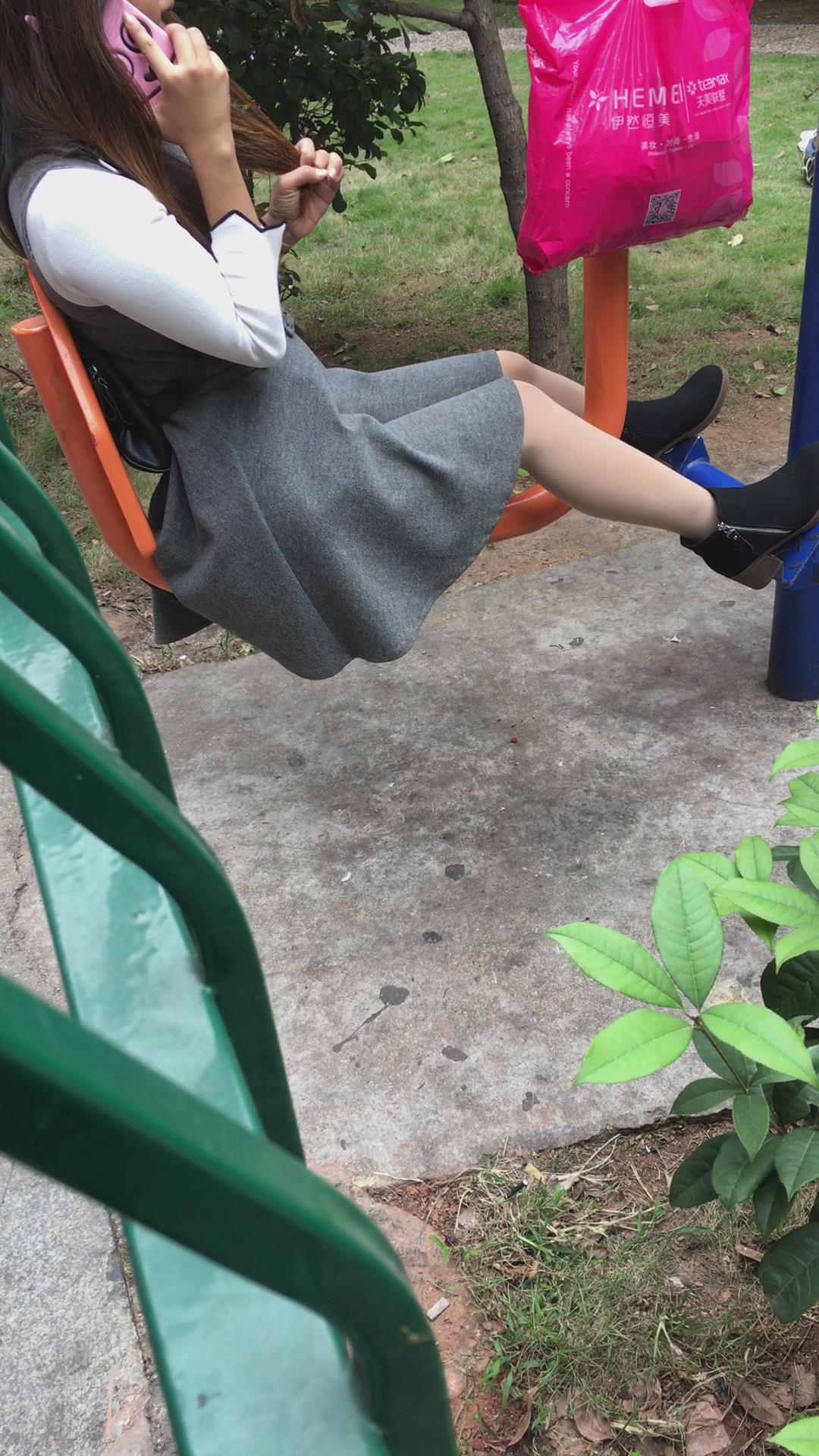公园健身器材上打电话的美腿少妇 编号6525