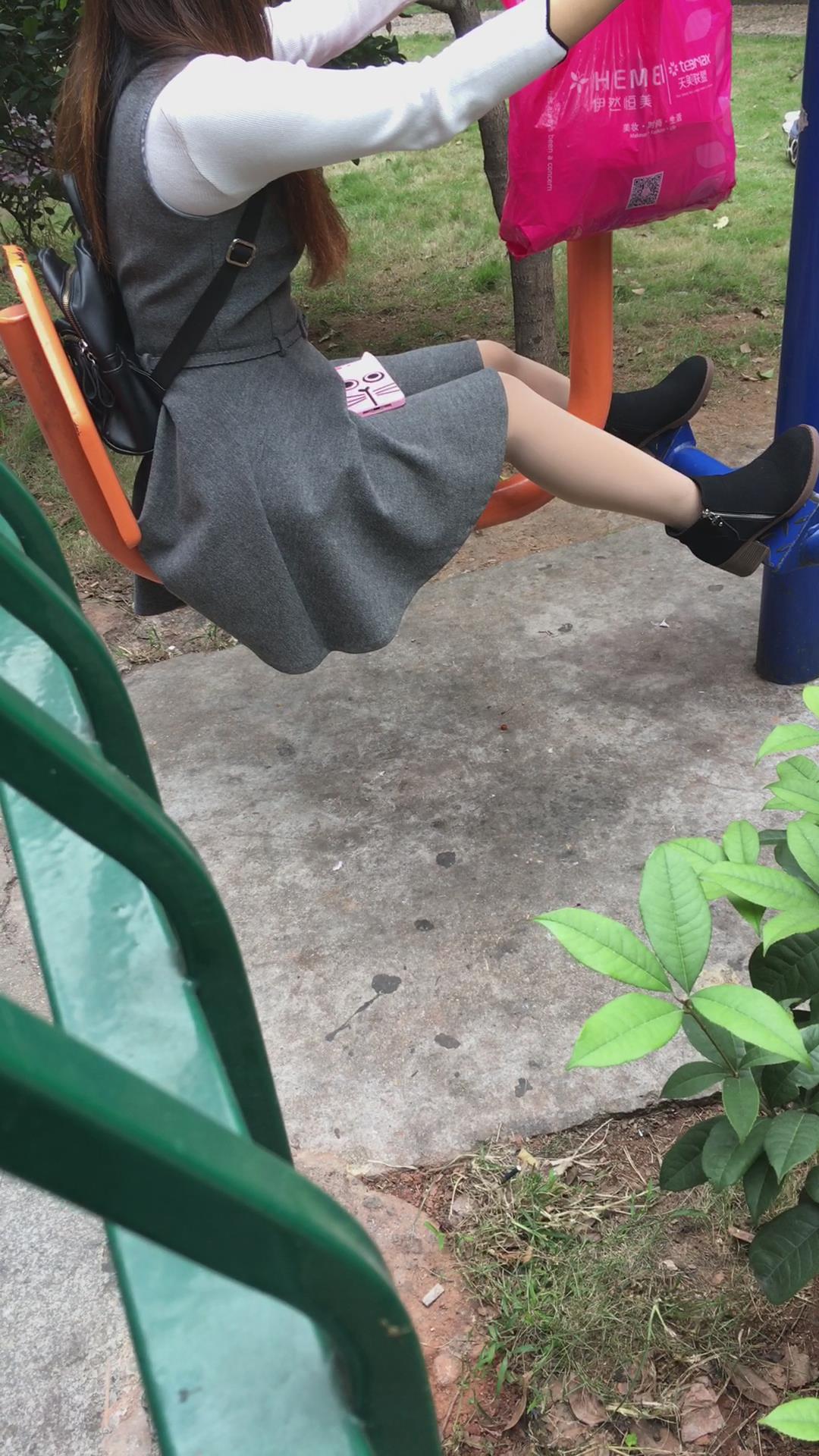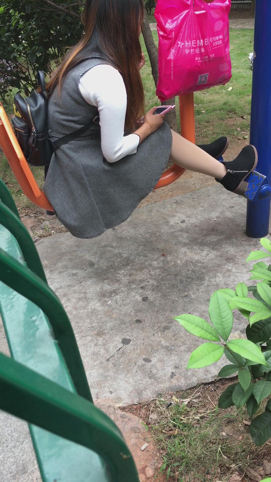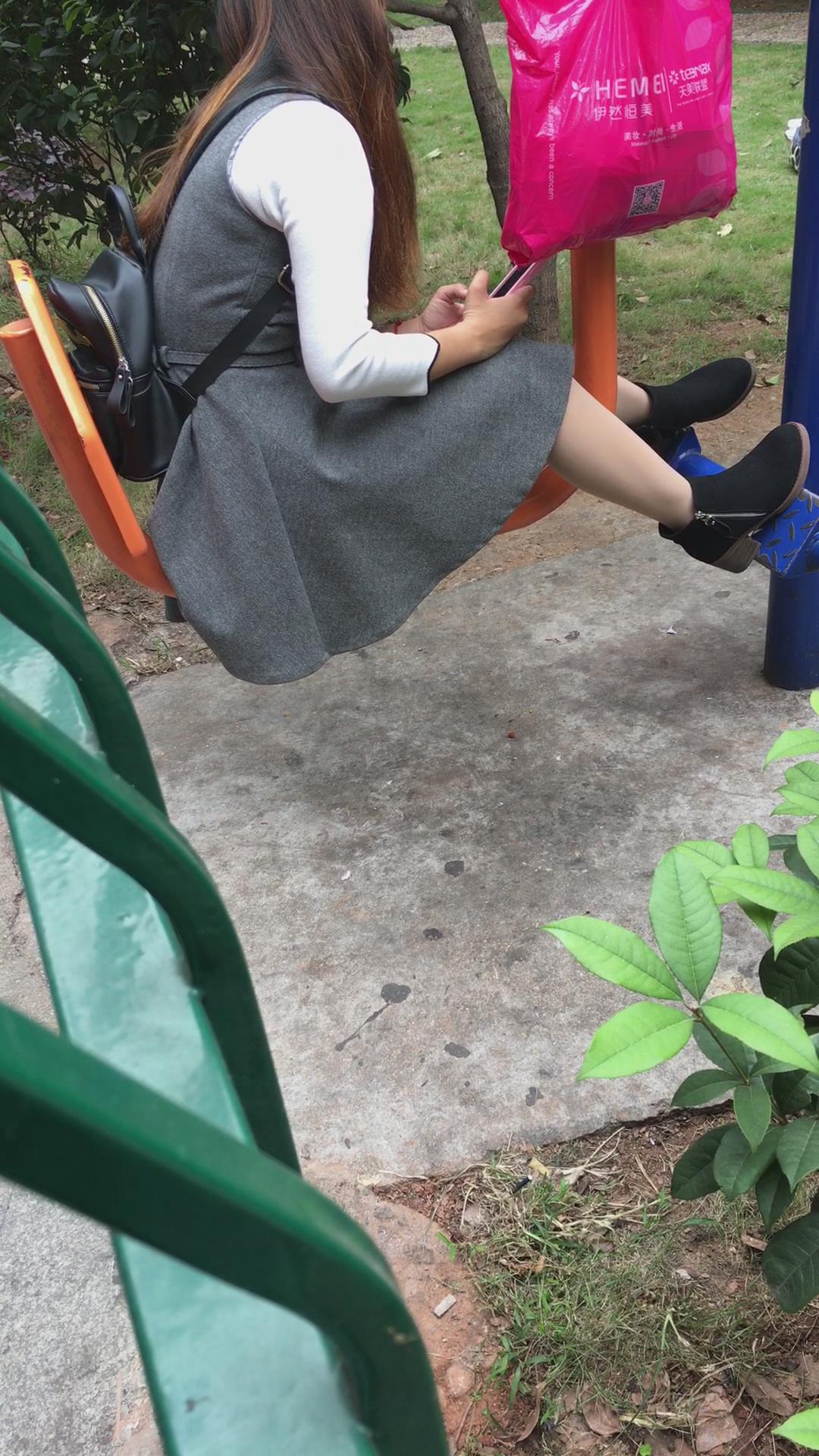公园健身器材上打电话的美腿少妇 编号6525