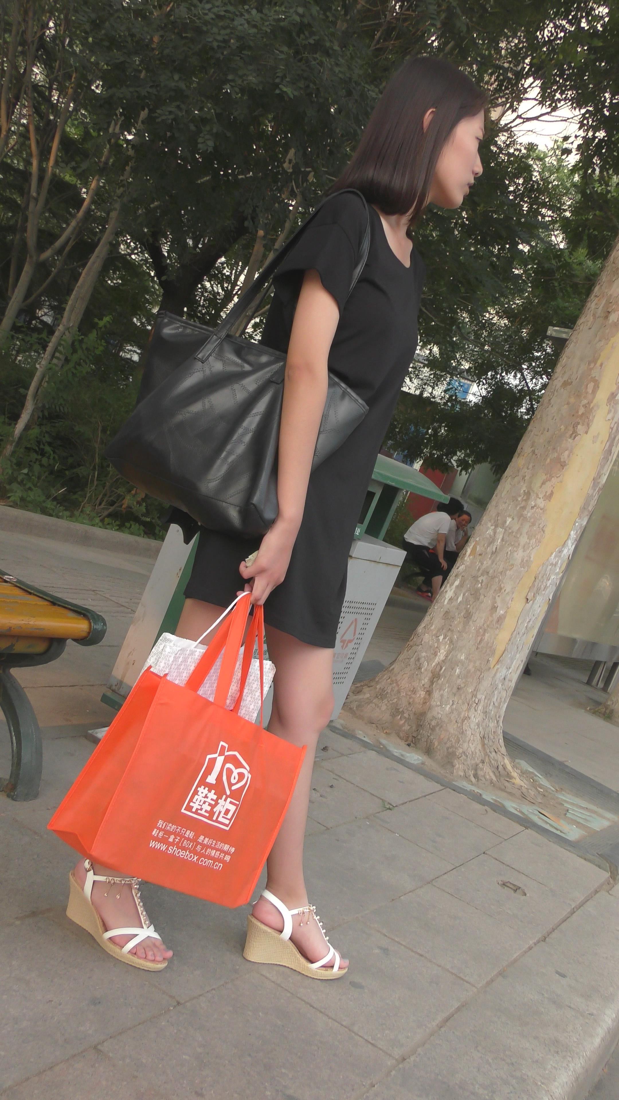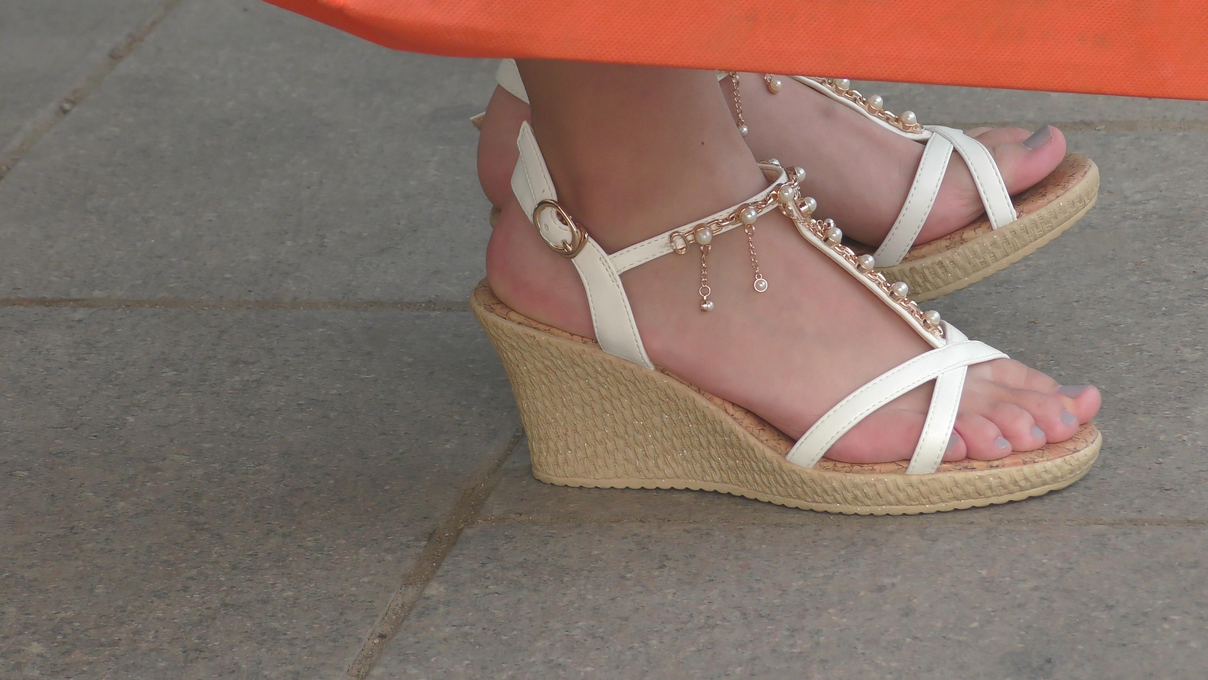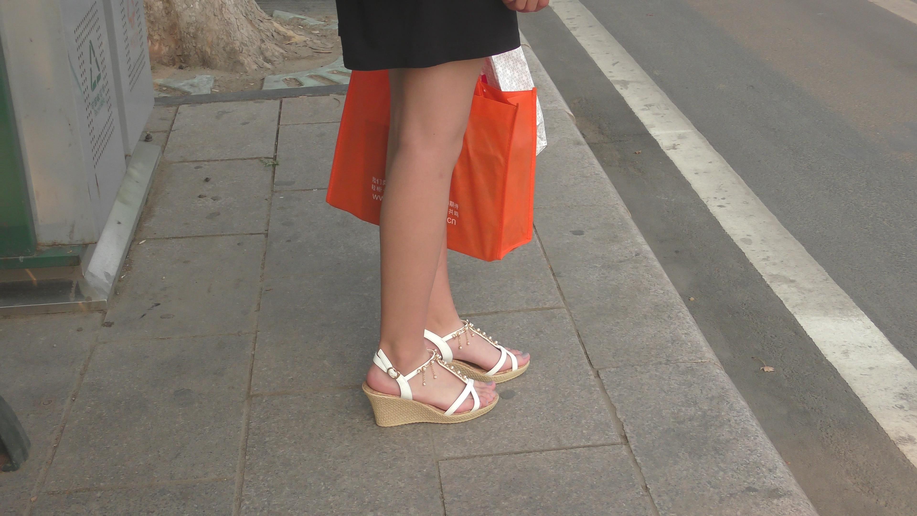 4k-公交站偶遇极品坡高跟凉鞋美眉,这玉足太精致漂亮啦 编号6529