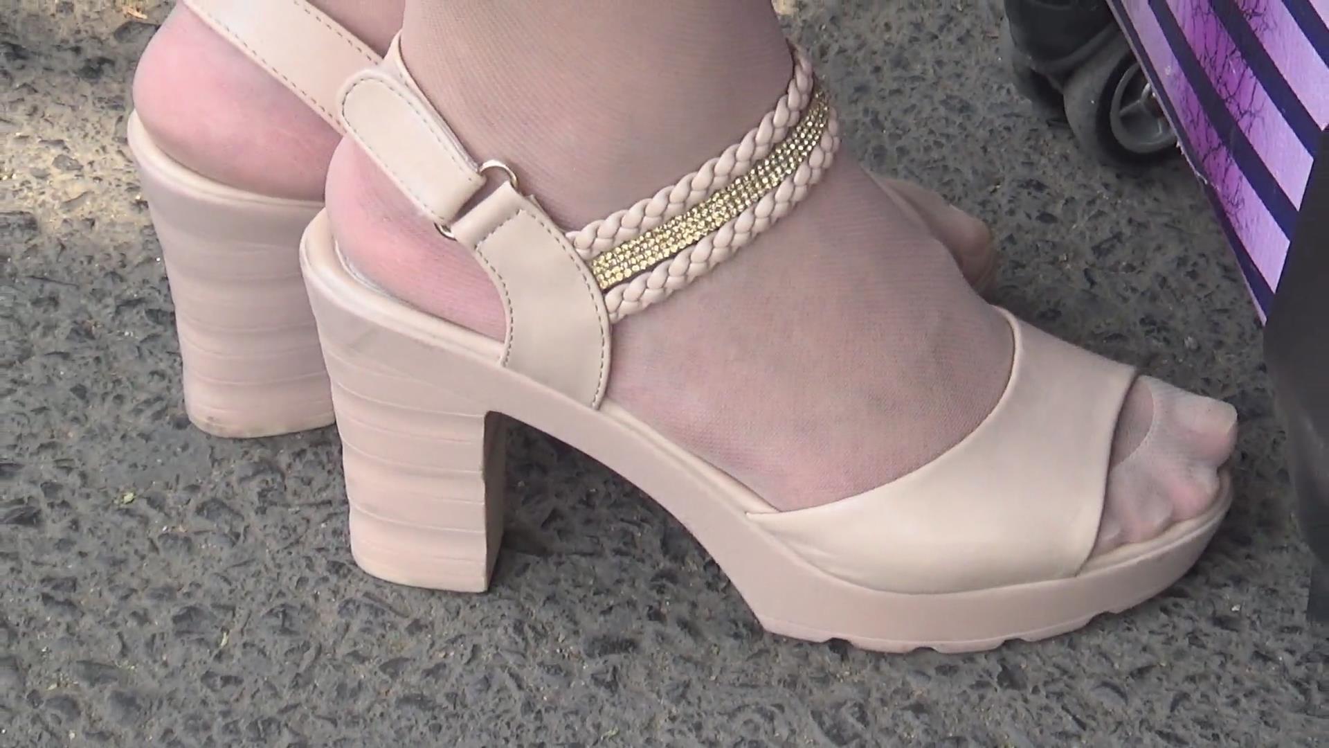 一双干净的美足,肉色丝袜跟这双高跟凉鞋太配了 编号6567