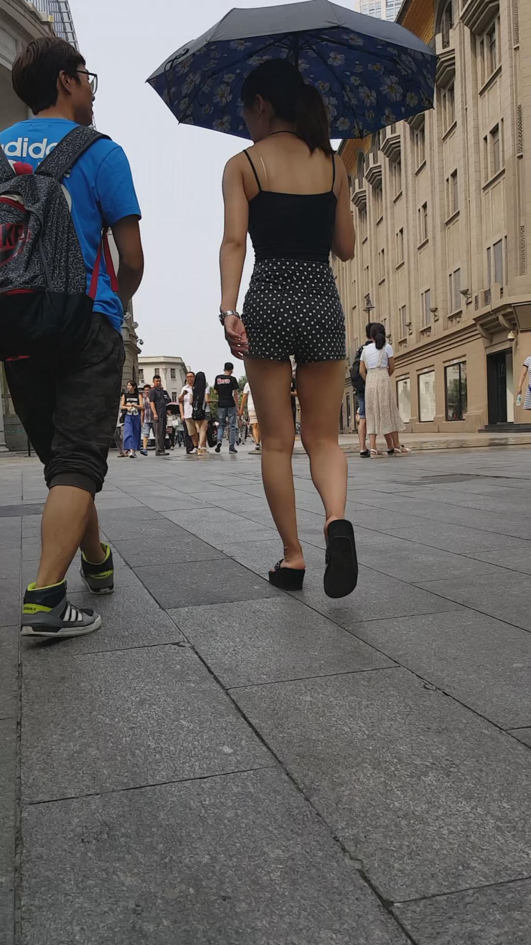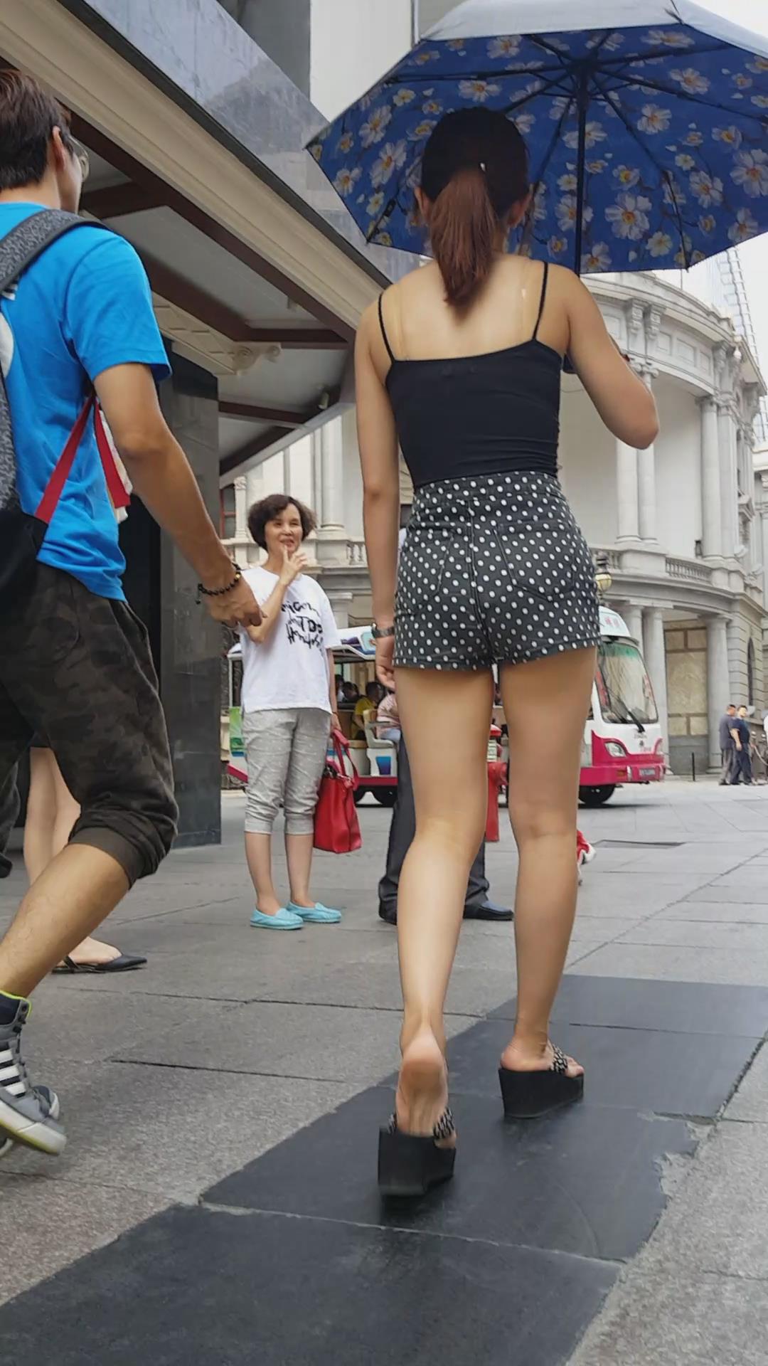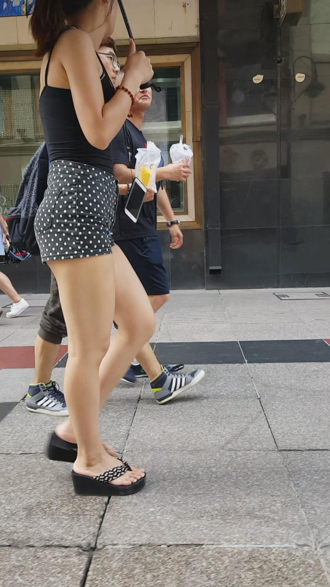 亭亭玉立的高腰斑点热裤配吊带背心大美女。 编号4618