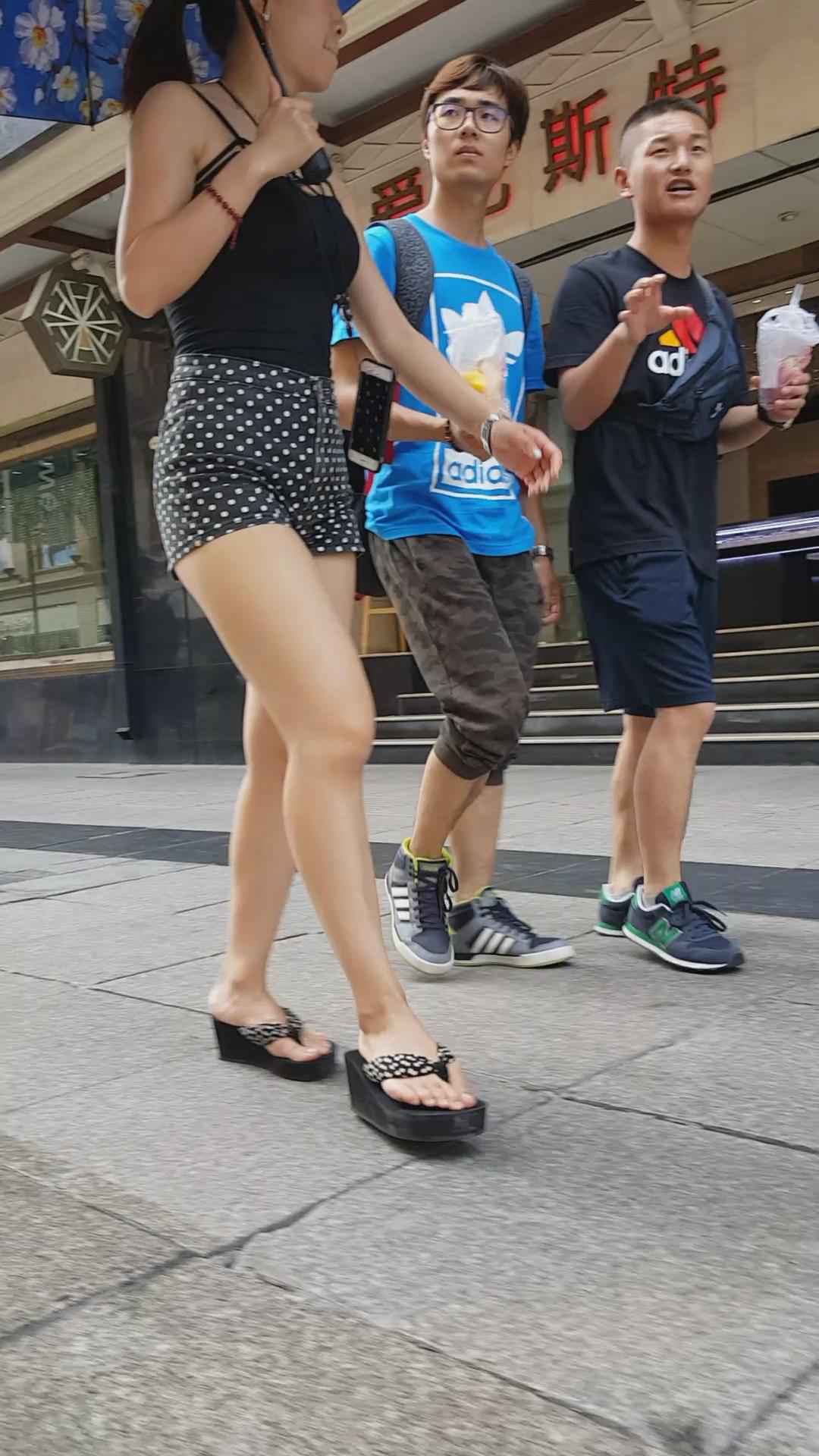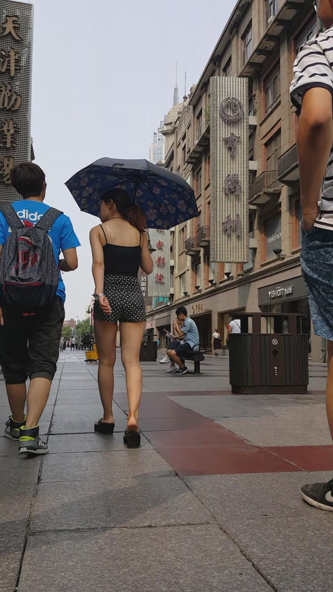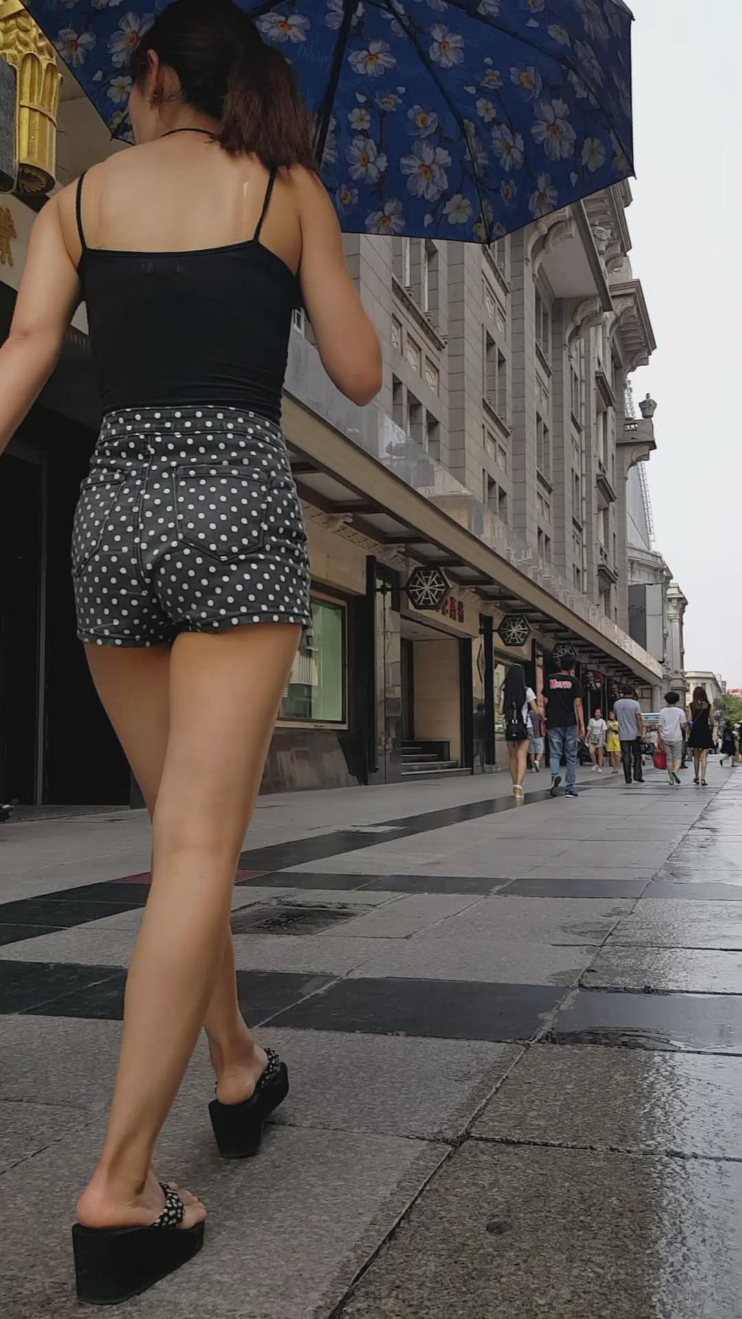 亭亭玉立的高腰斑点热裤配吊带背心大美女。 编号4618