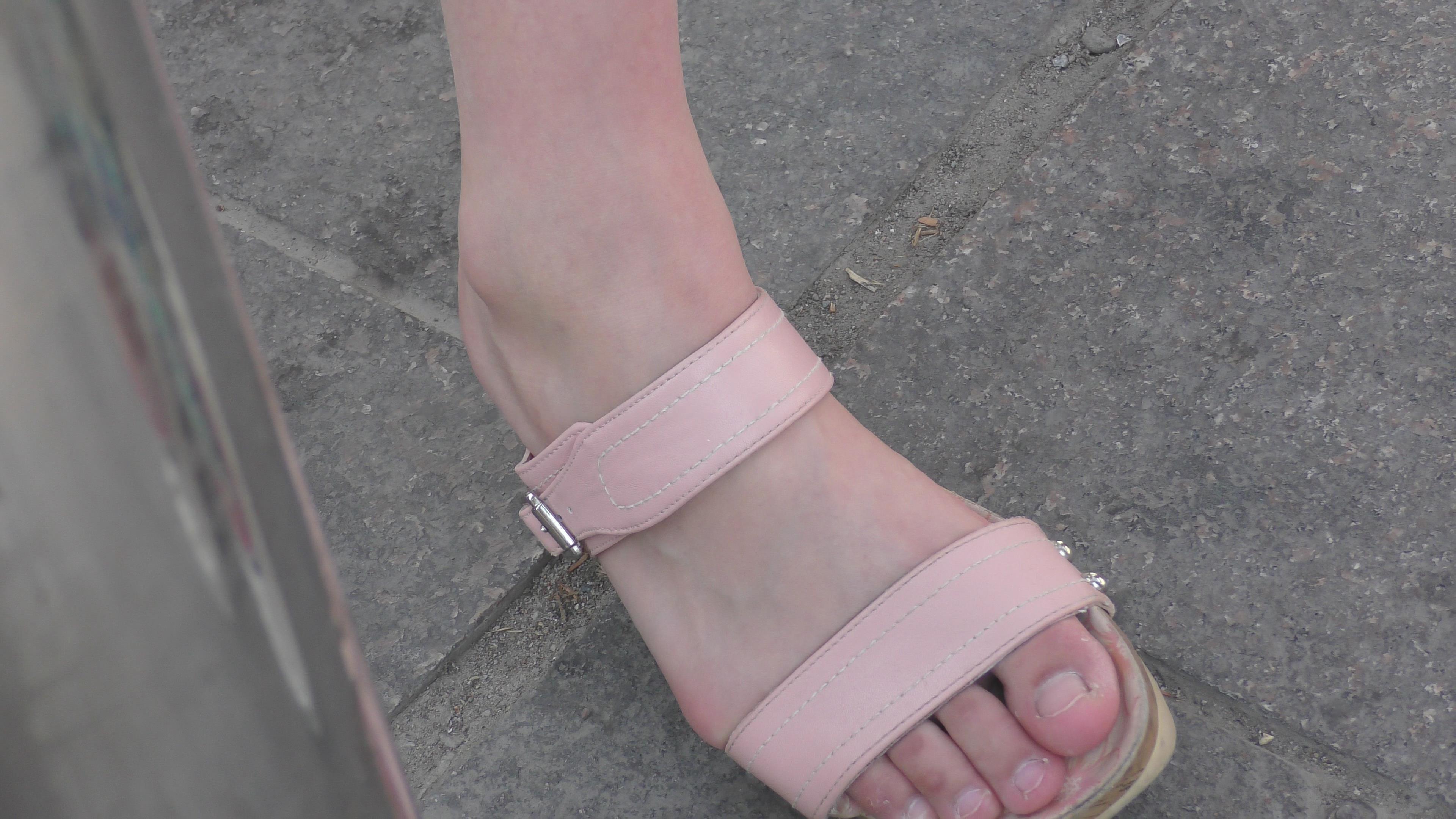 4k-逆天颜值的粉色坡高跟凉鞋美女,马尾辫更显清纯 编号6576