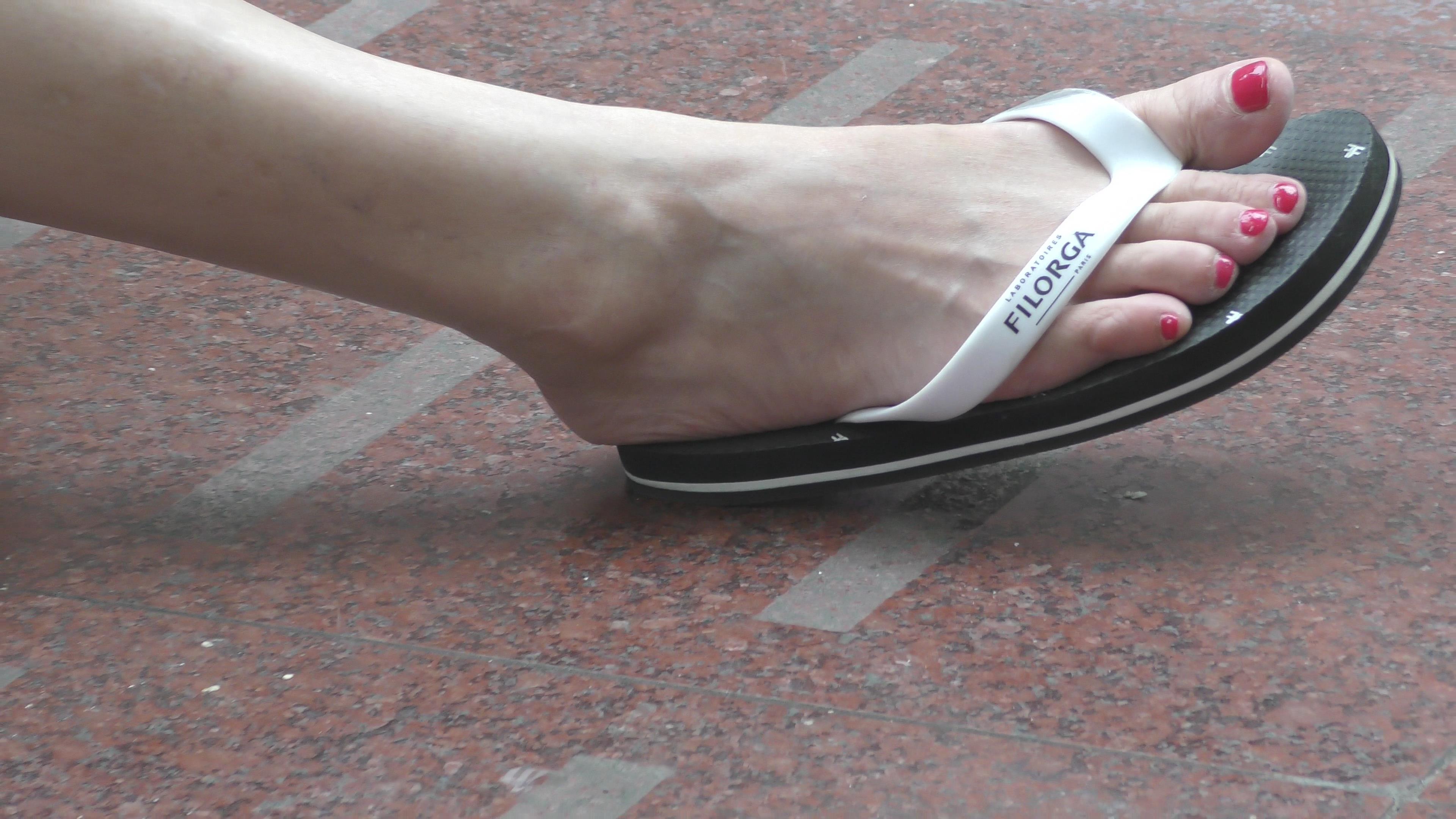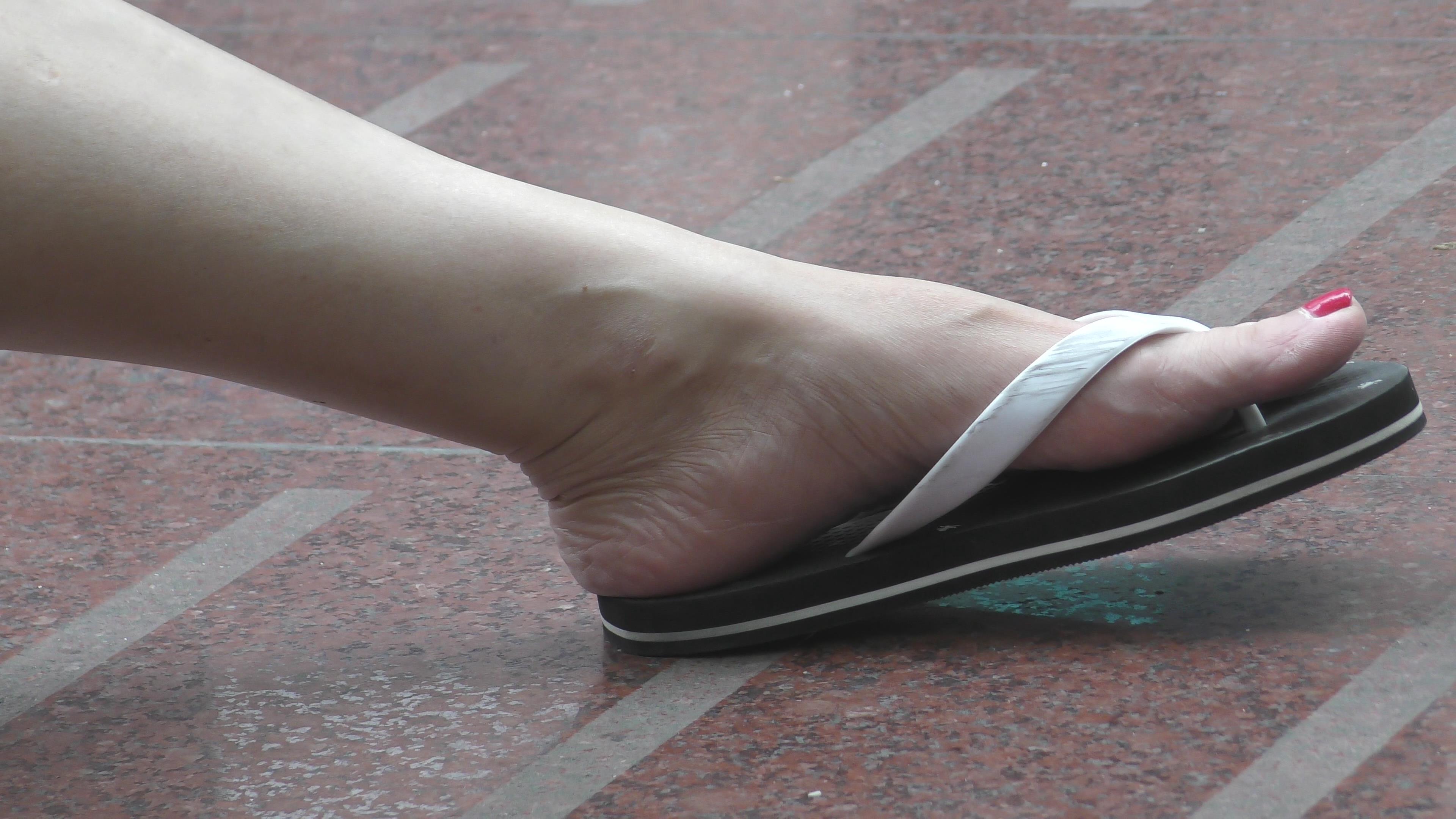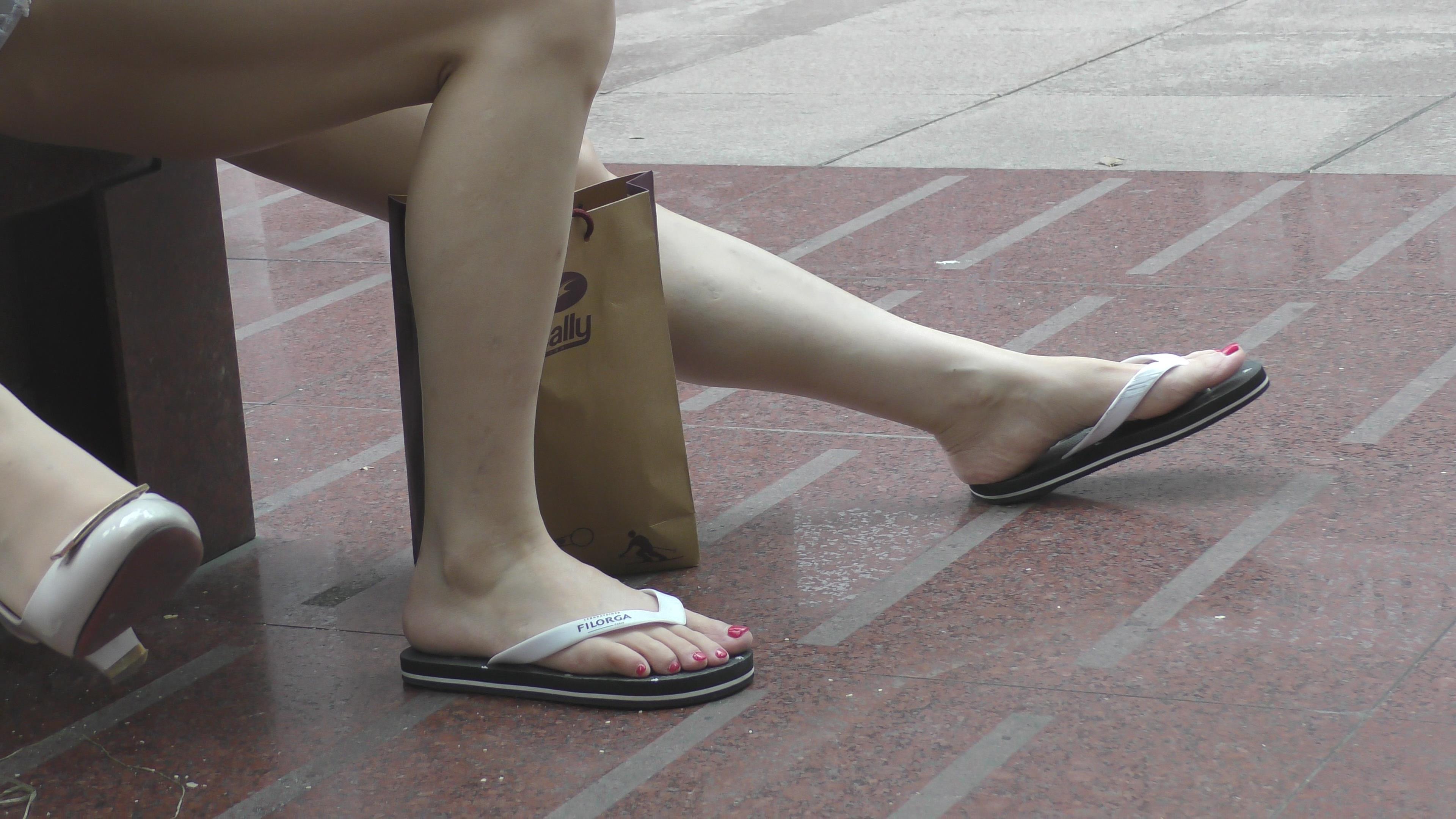 4k-广场边跟小男友休息的人字拖玉足少女 编号6579
