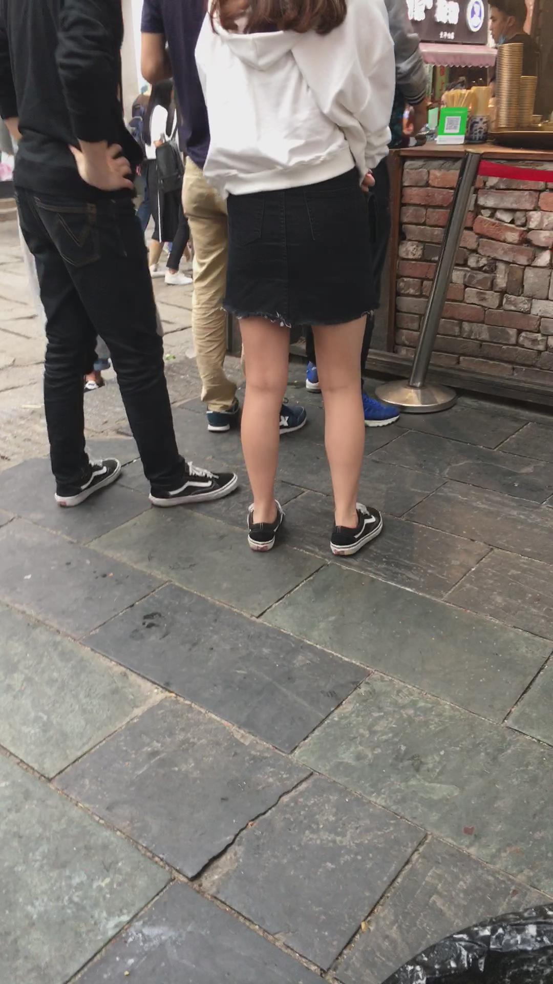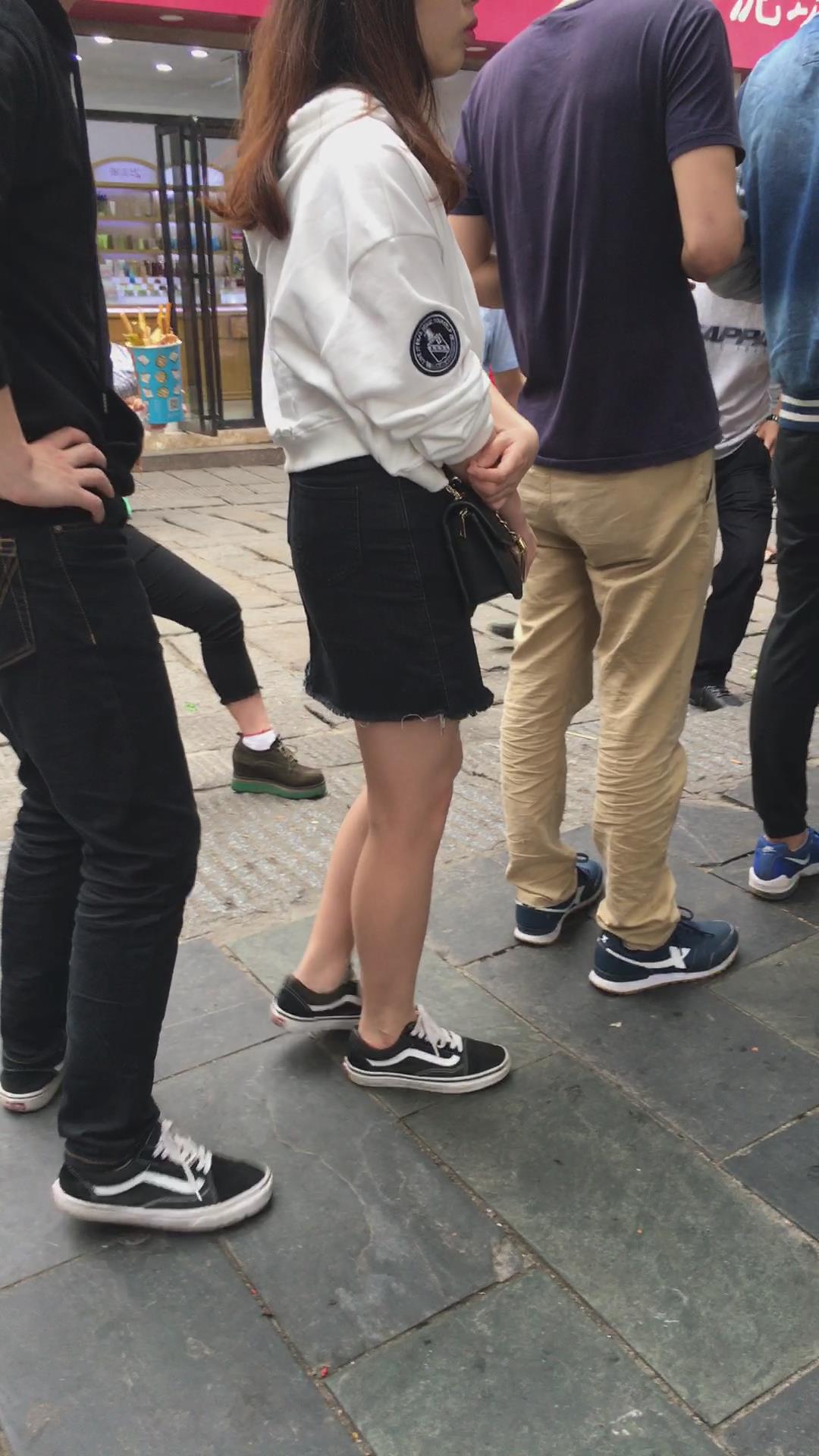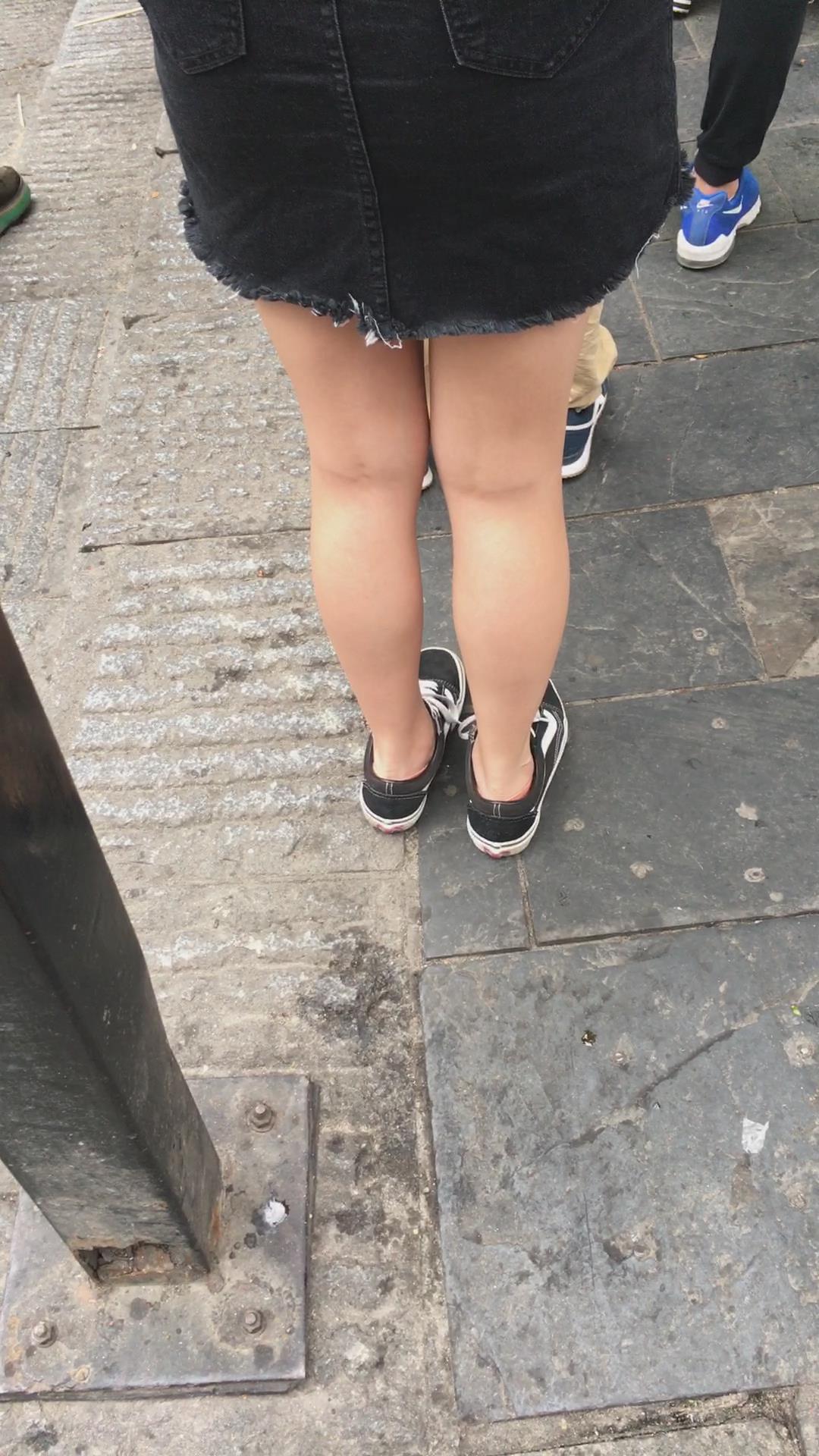 黑色牛仔裙小妹在排队 编号2038