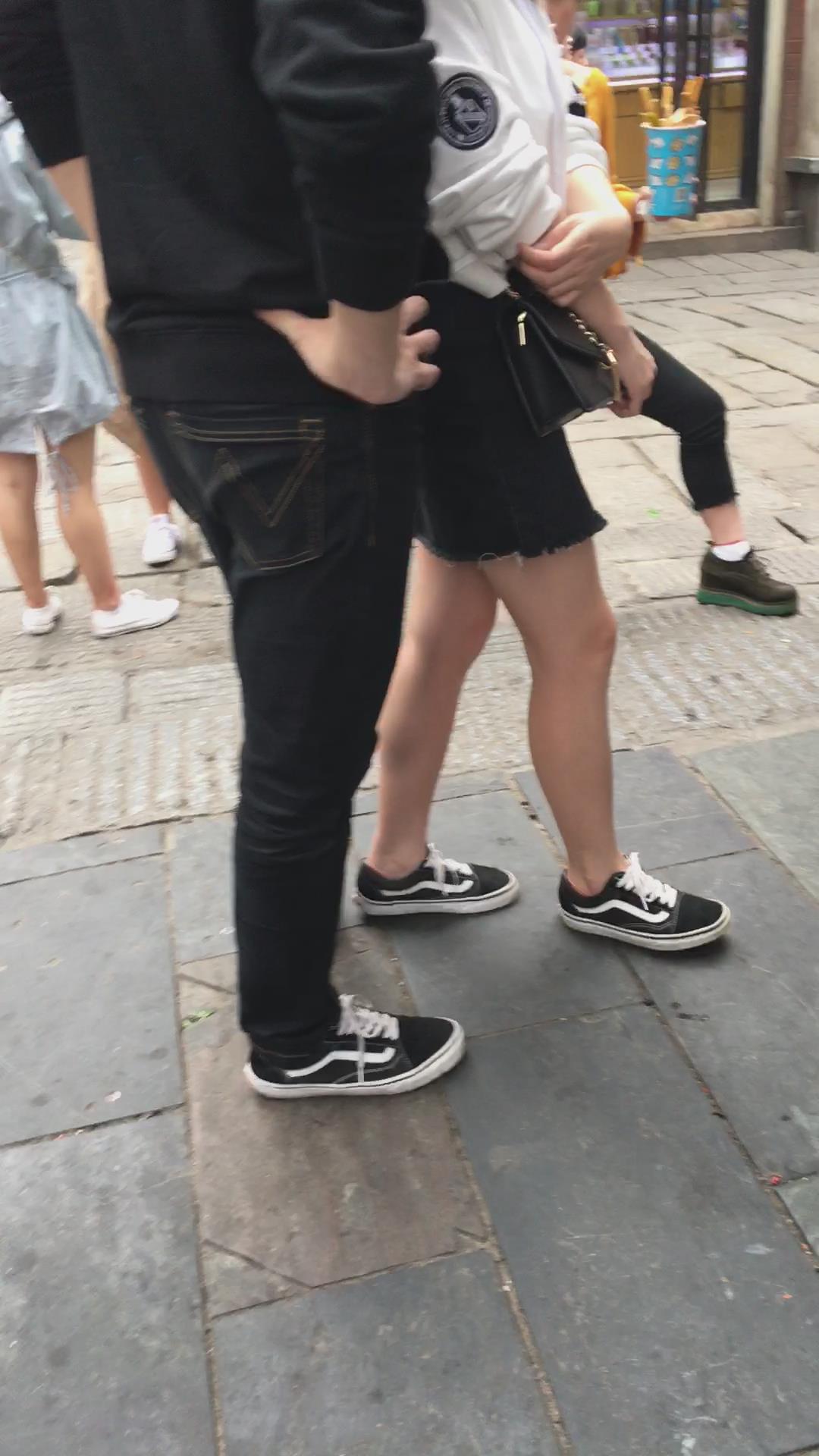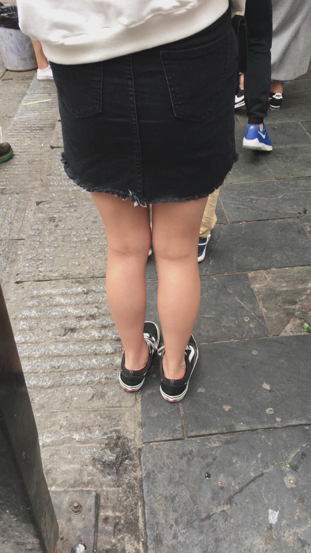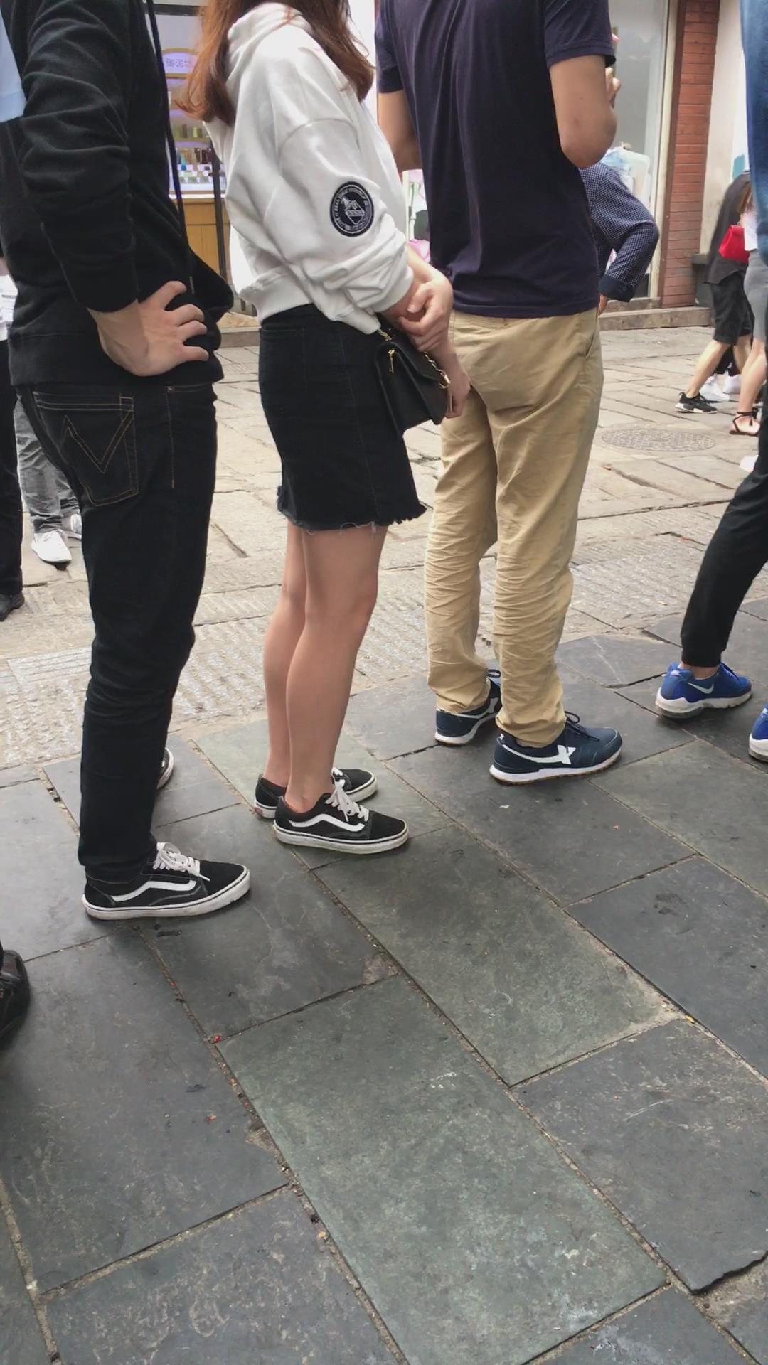 黑色牛仔裙小妹在排队 编号2038