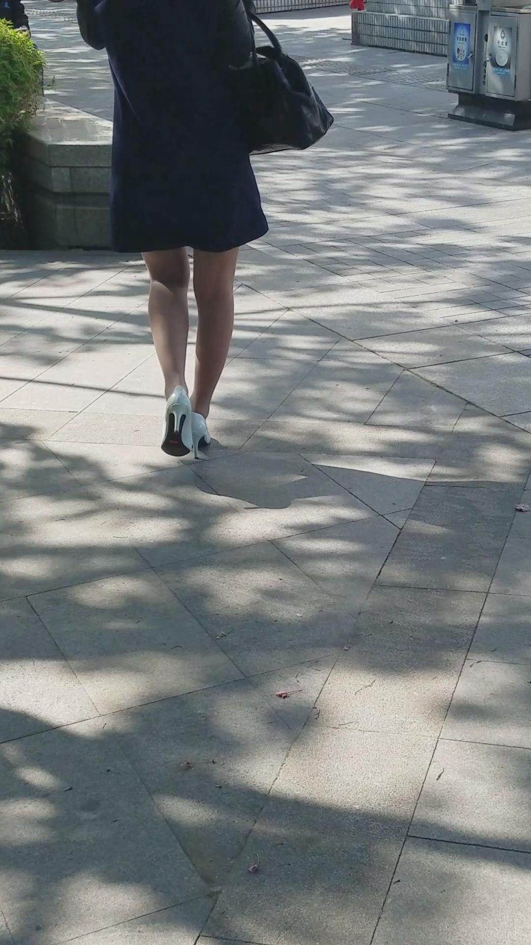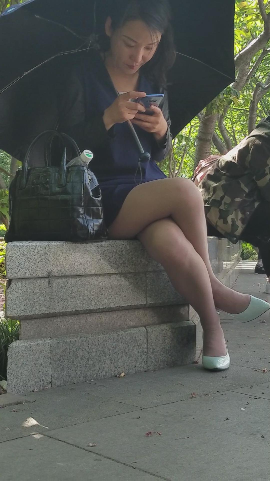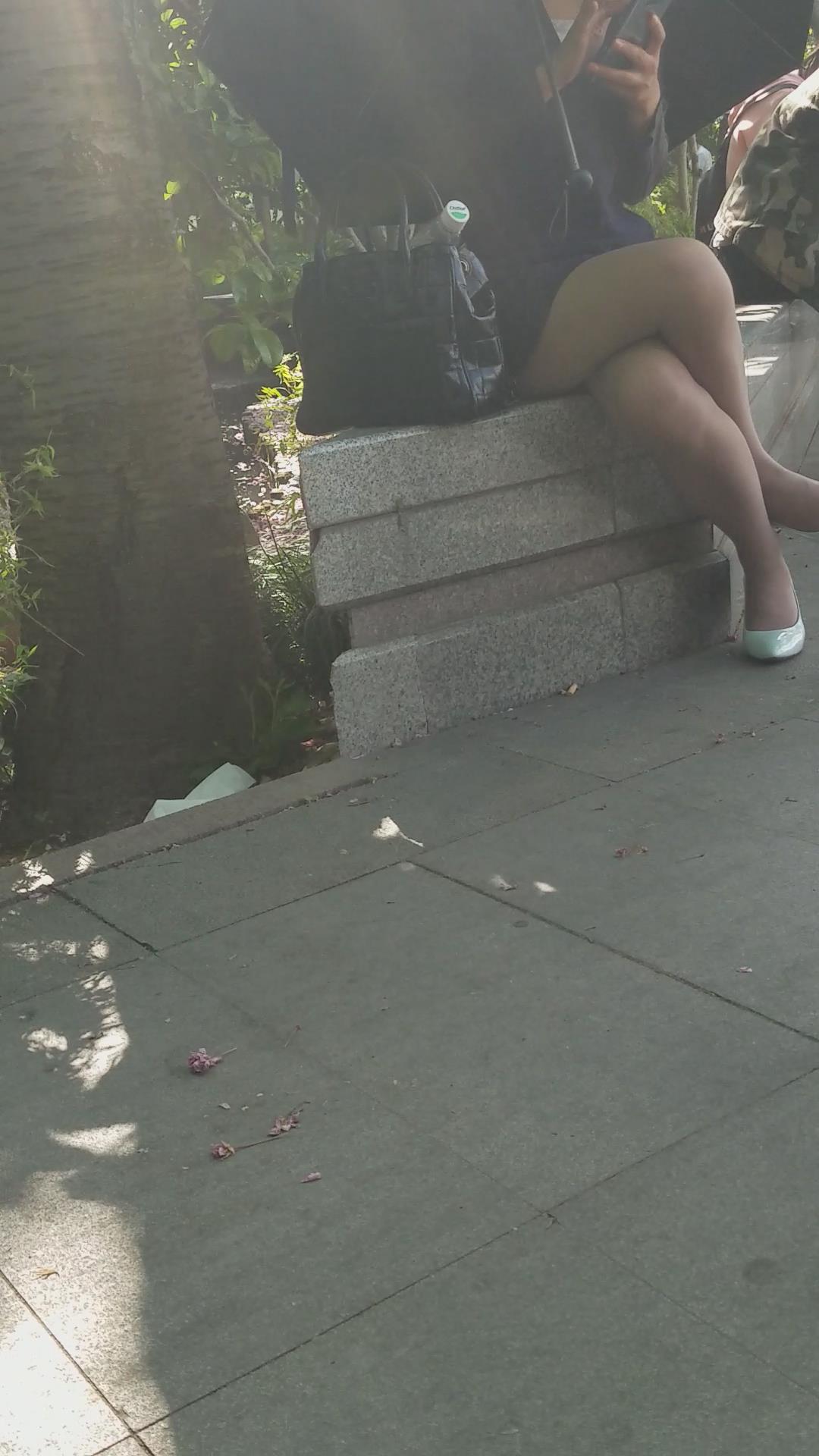 石凳上的黑丝高跟鞋性感美女对着手机傻乐 编号2051