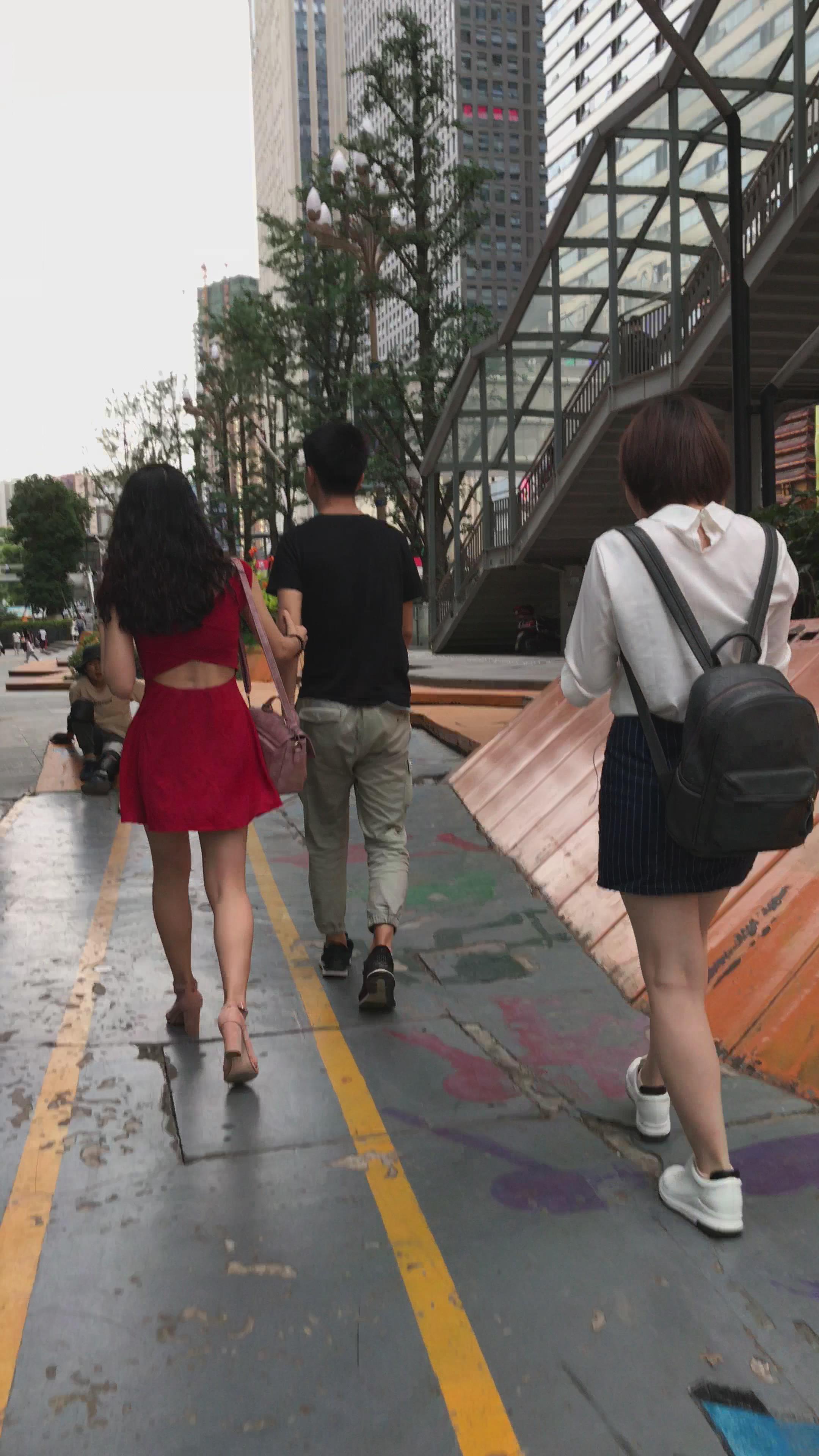 街拍红裙性感凉高跟美腿辣妹 编号2067
