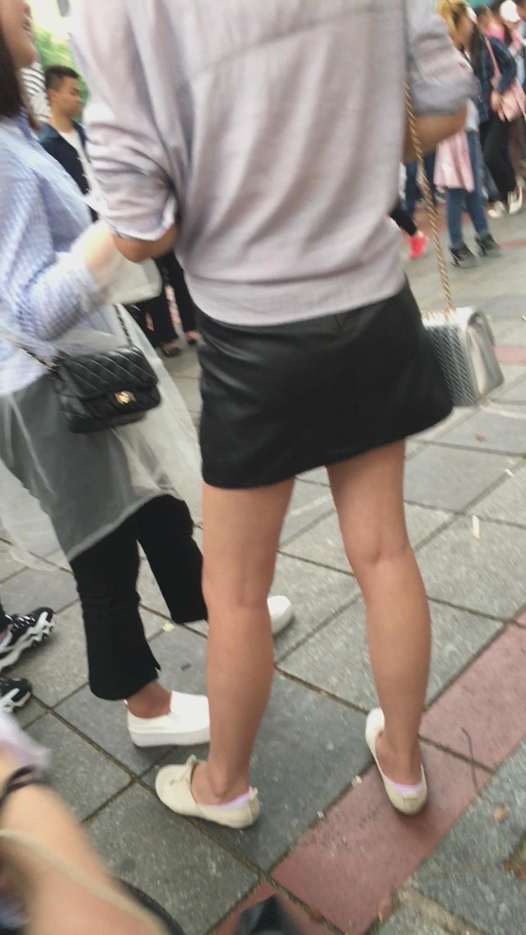 街拍黑色小短裙白鞋裸腿小美女 编号2094