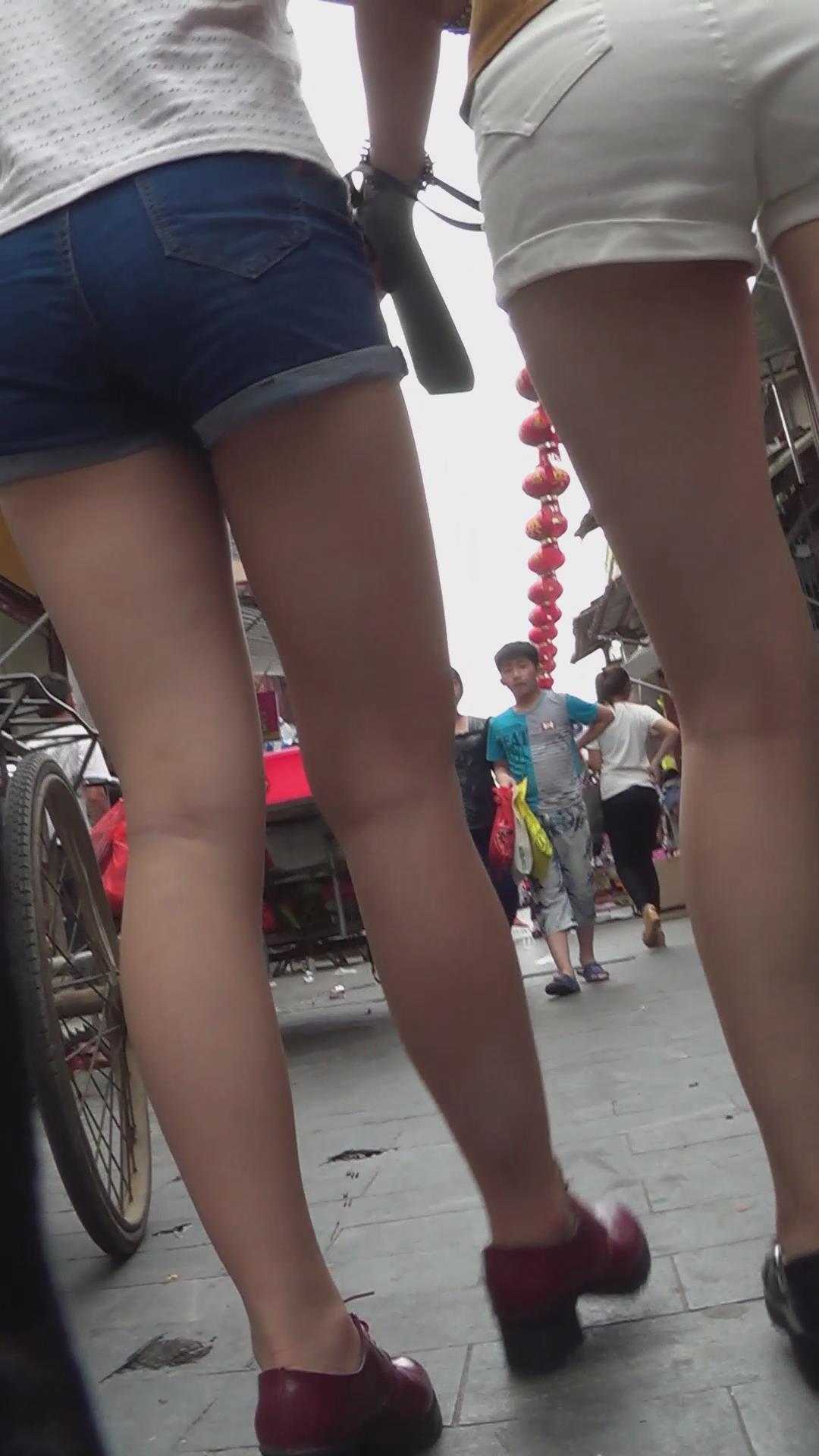 街拍牛仔热裤美臀姐妹花 编号4628