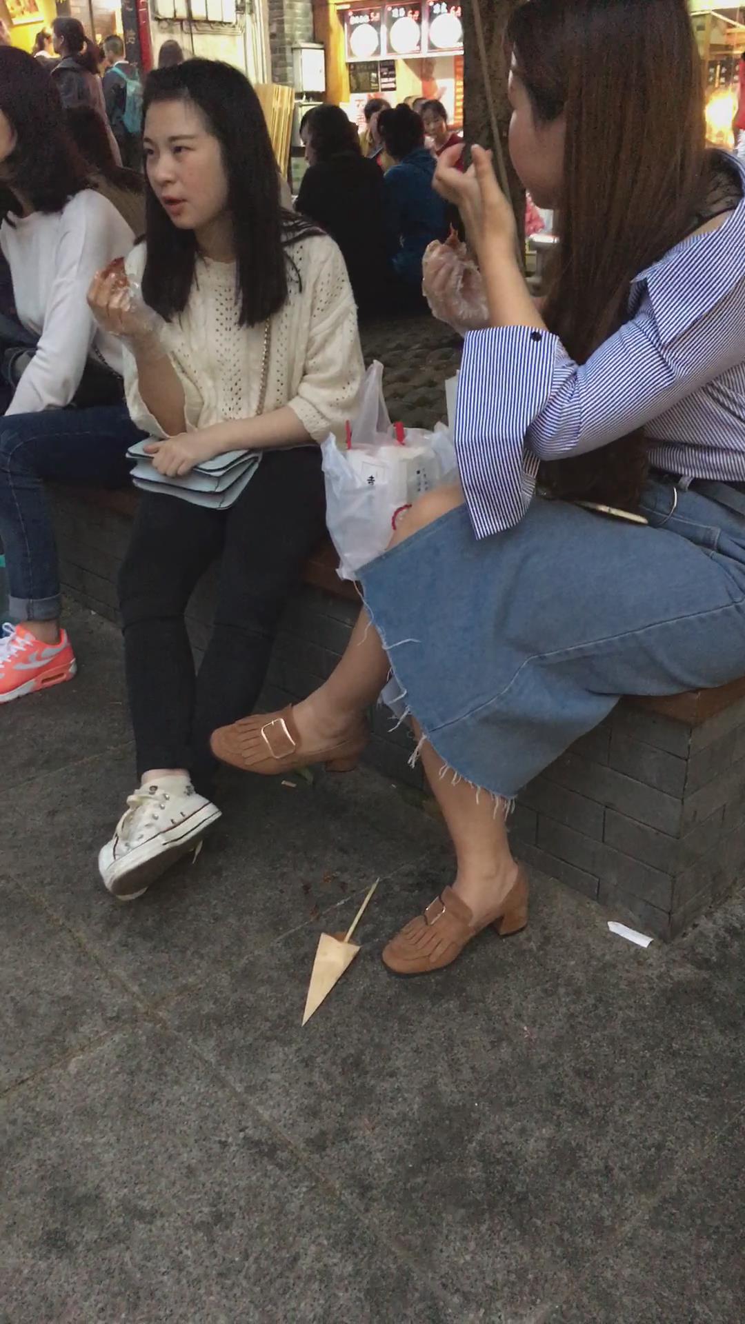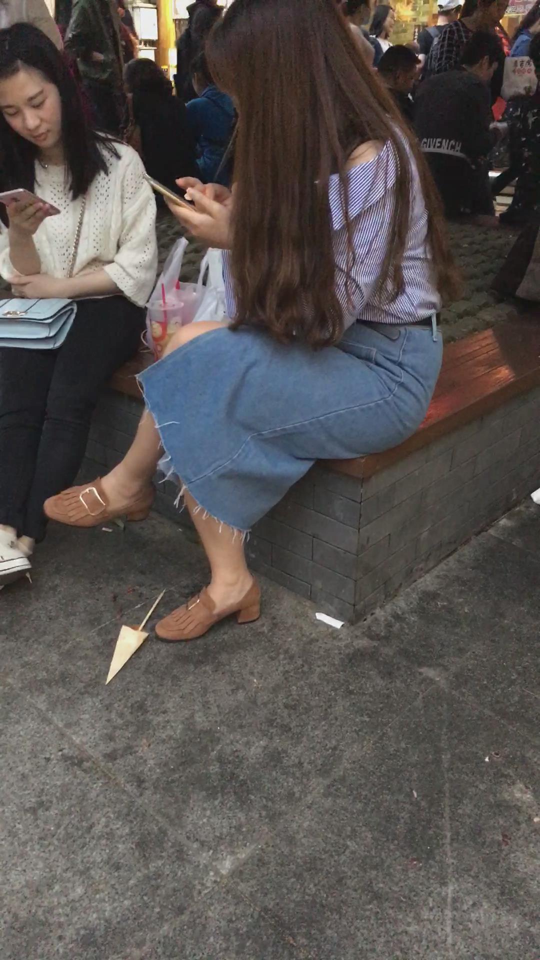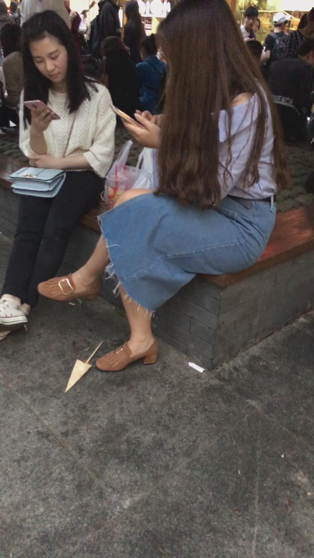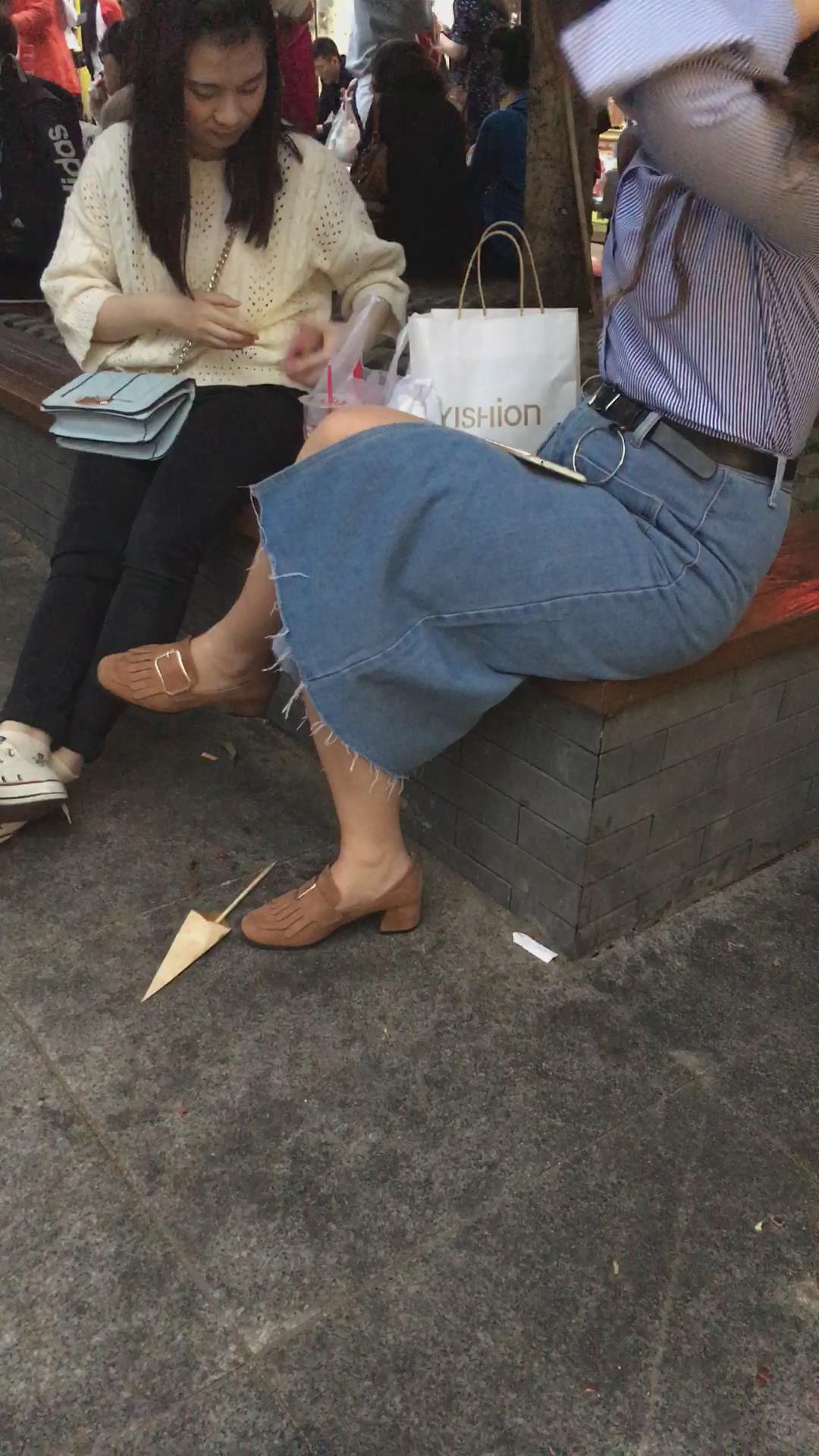 牛仔裙大姐姐跟闺蜜花坛边聊天 编号2110