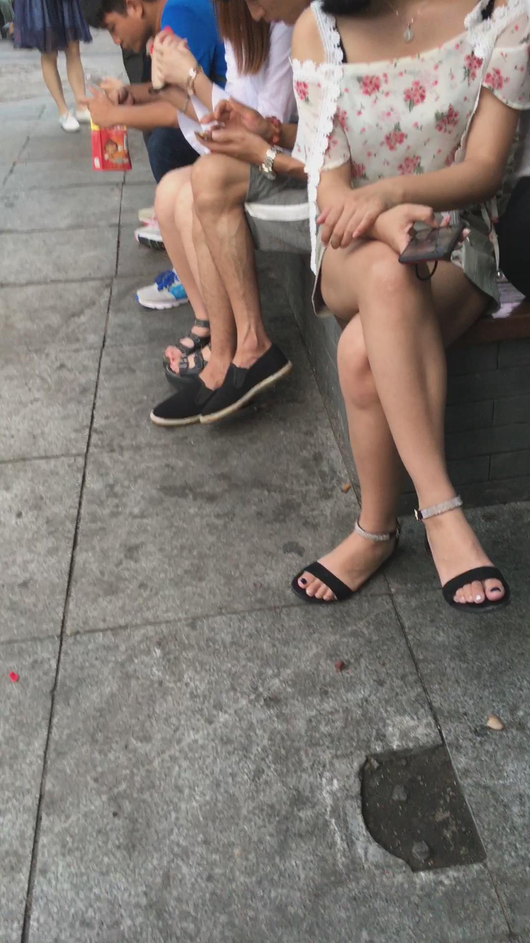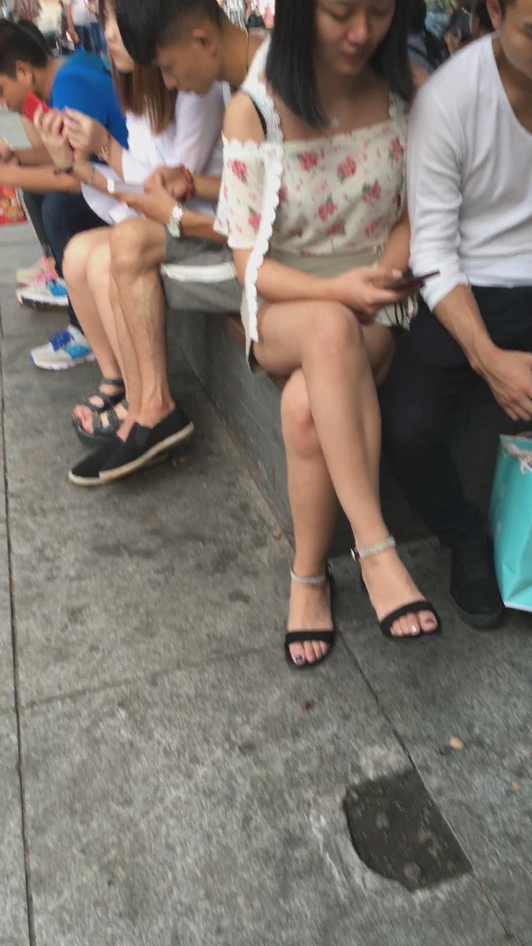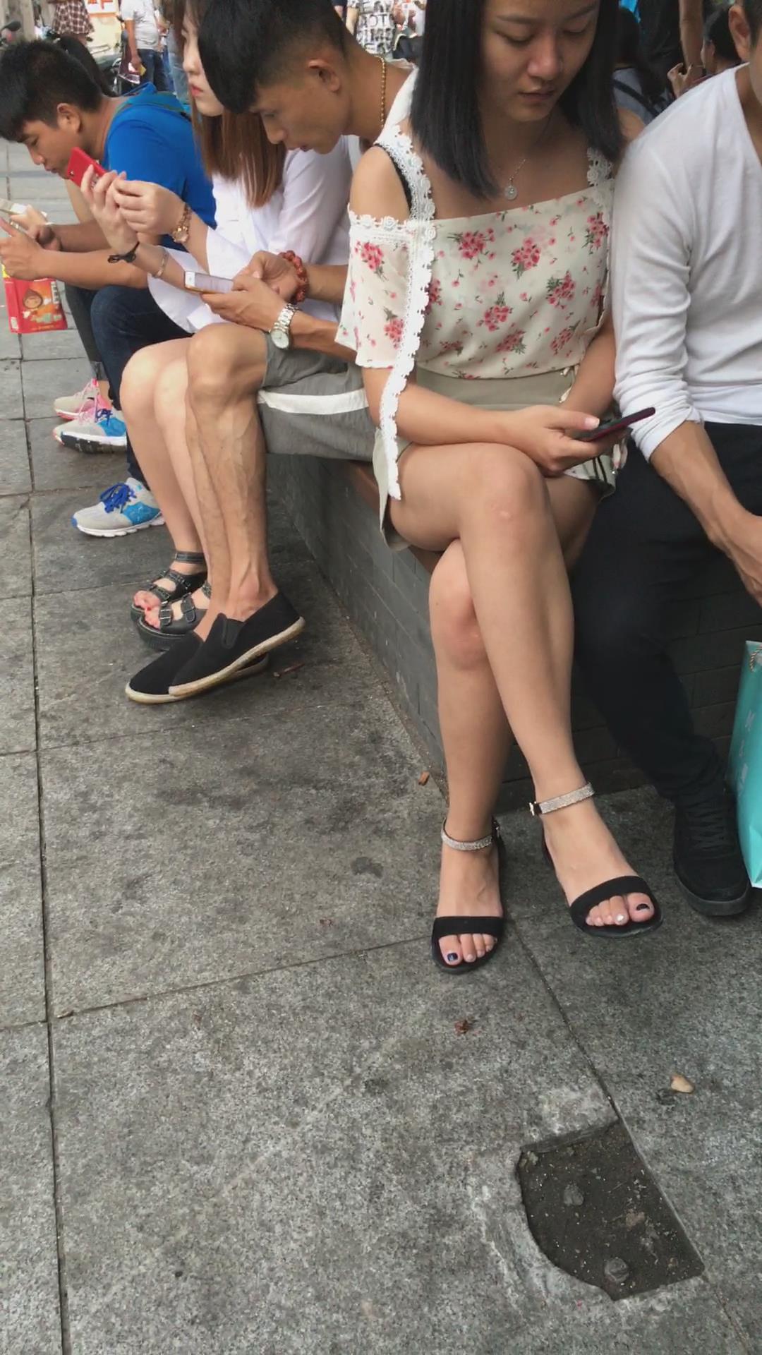 花坛边的美腿花色吊带衫美眉 编号2112