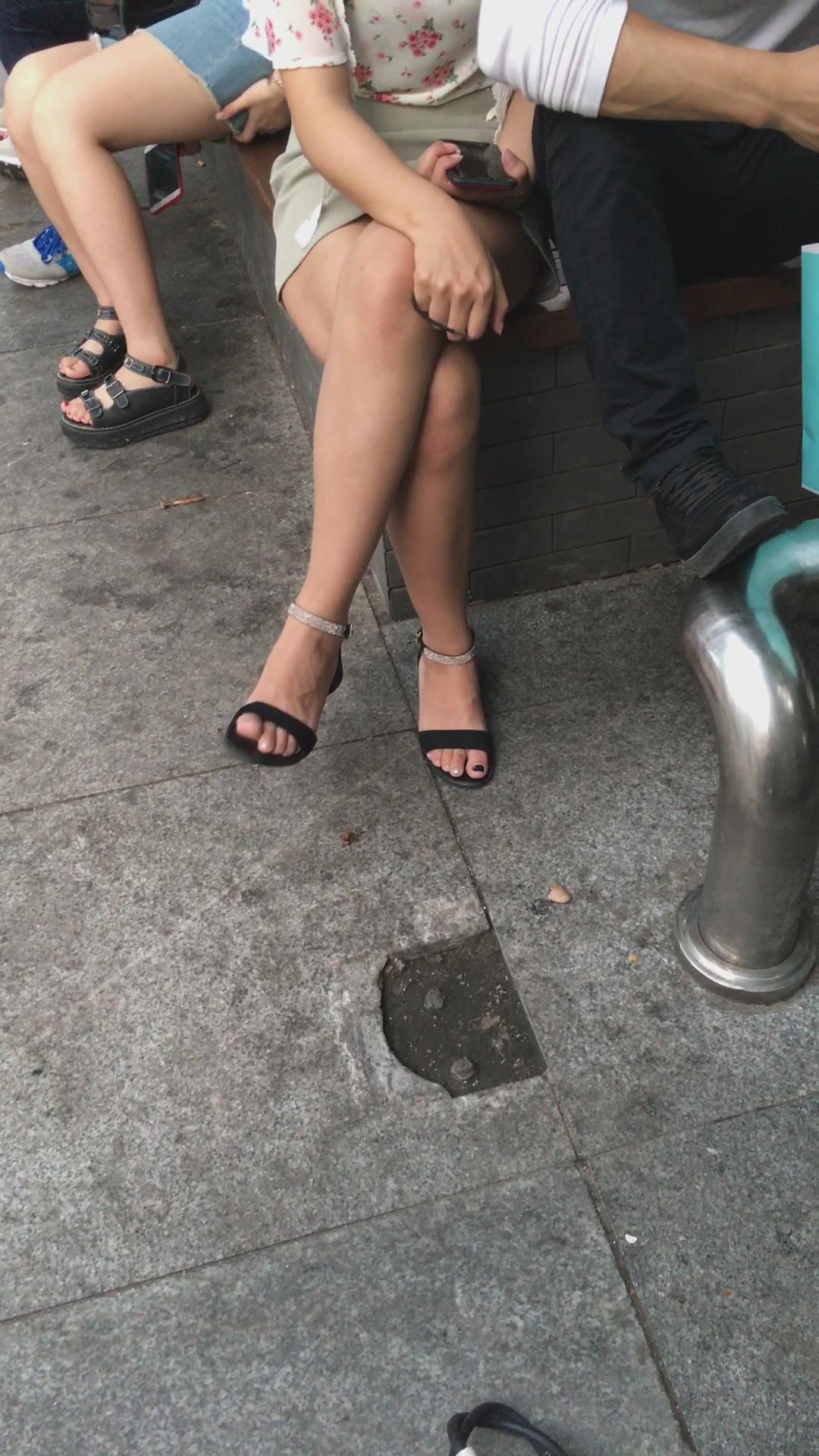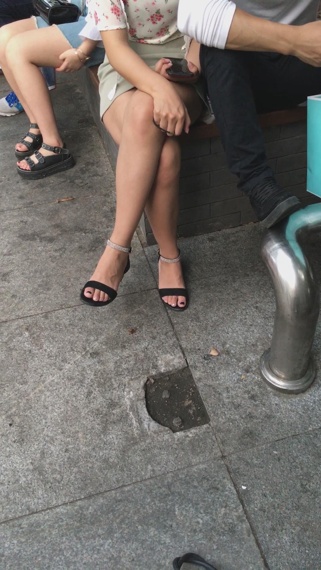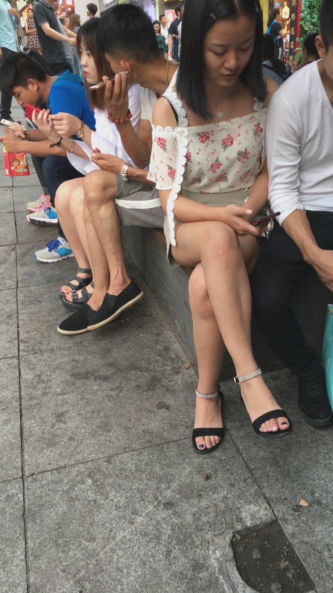 花坛边的美腿花色吊带衫美眉 编号2112