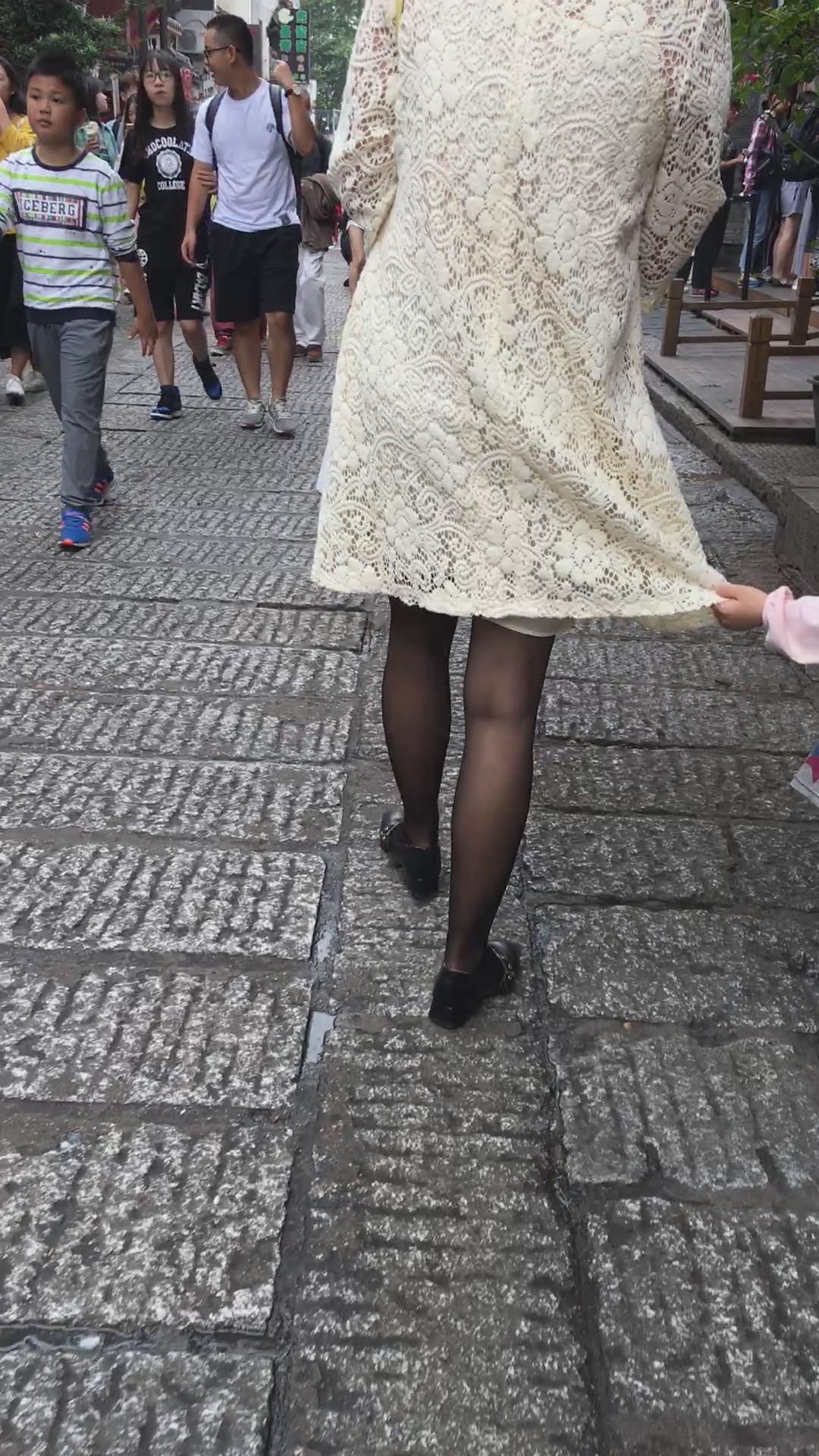 镂空连衣裙街拍黑丝性感美妇 编号2118