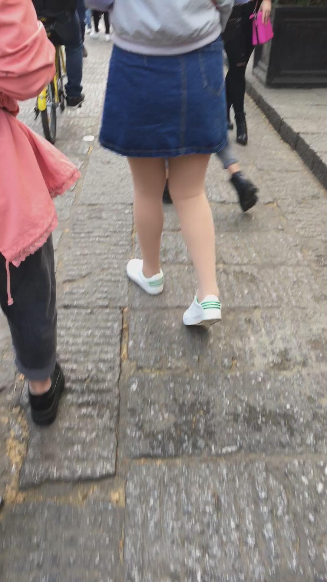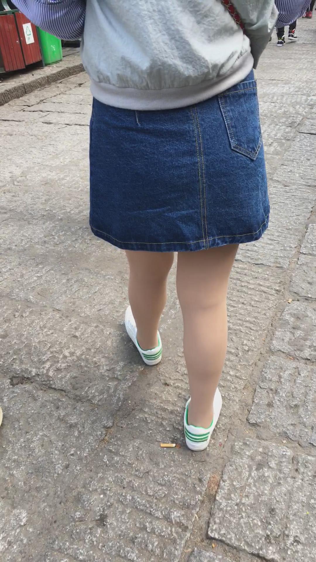 牛仔短裙街拍肉丝学生妹 编号2131