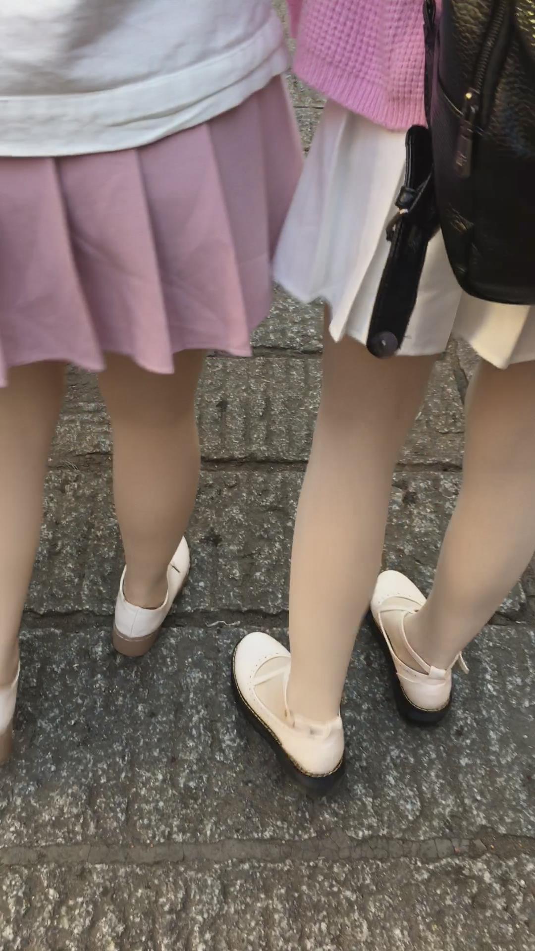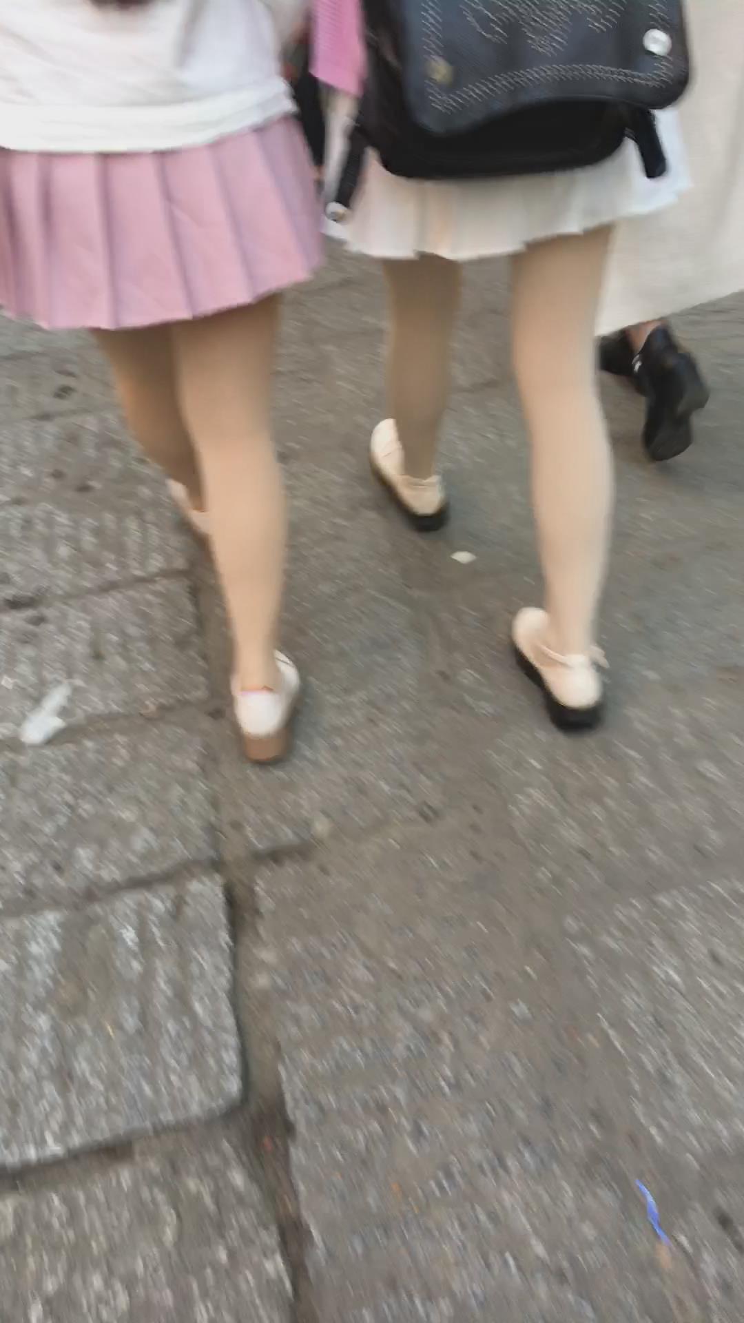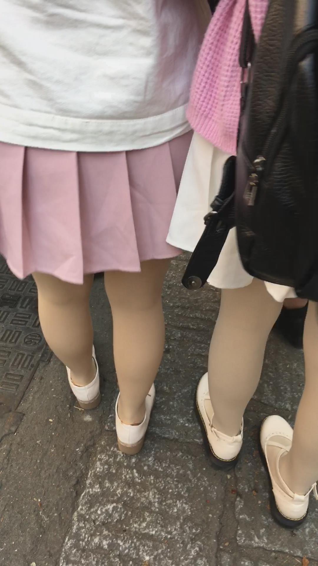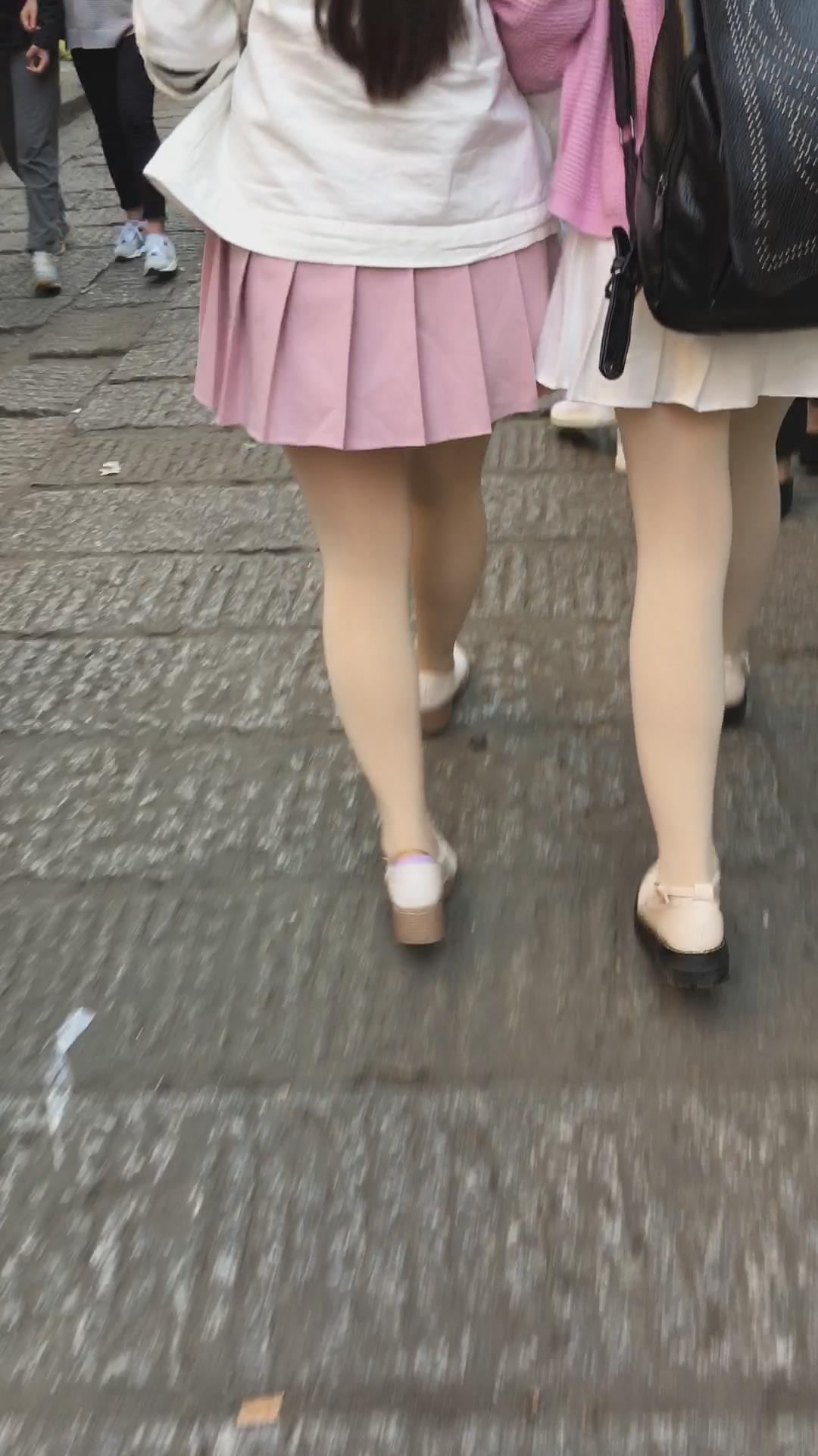 粉色百褶裙肉丝街拍美眉视频 编号2152