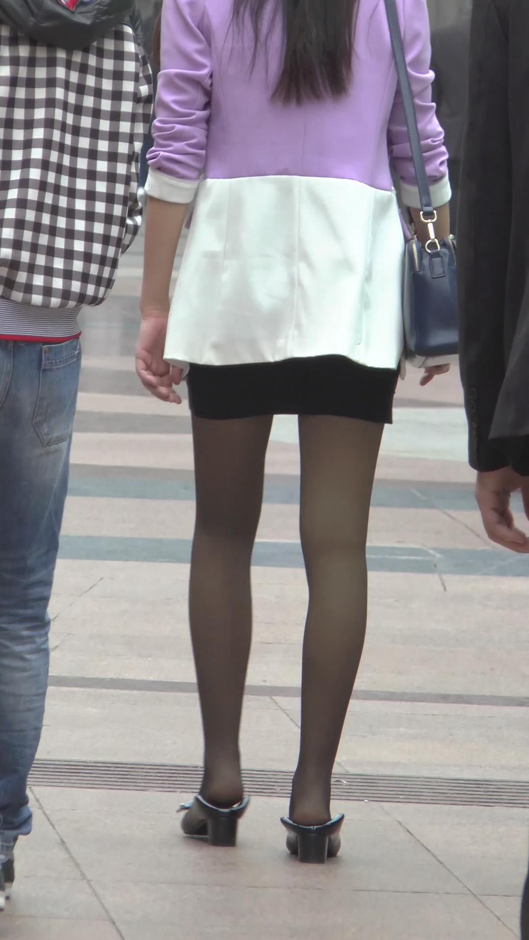 丝袜美腿短裙紫色小西装街拍美女 编号2172