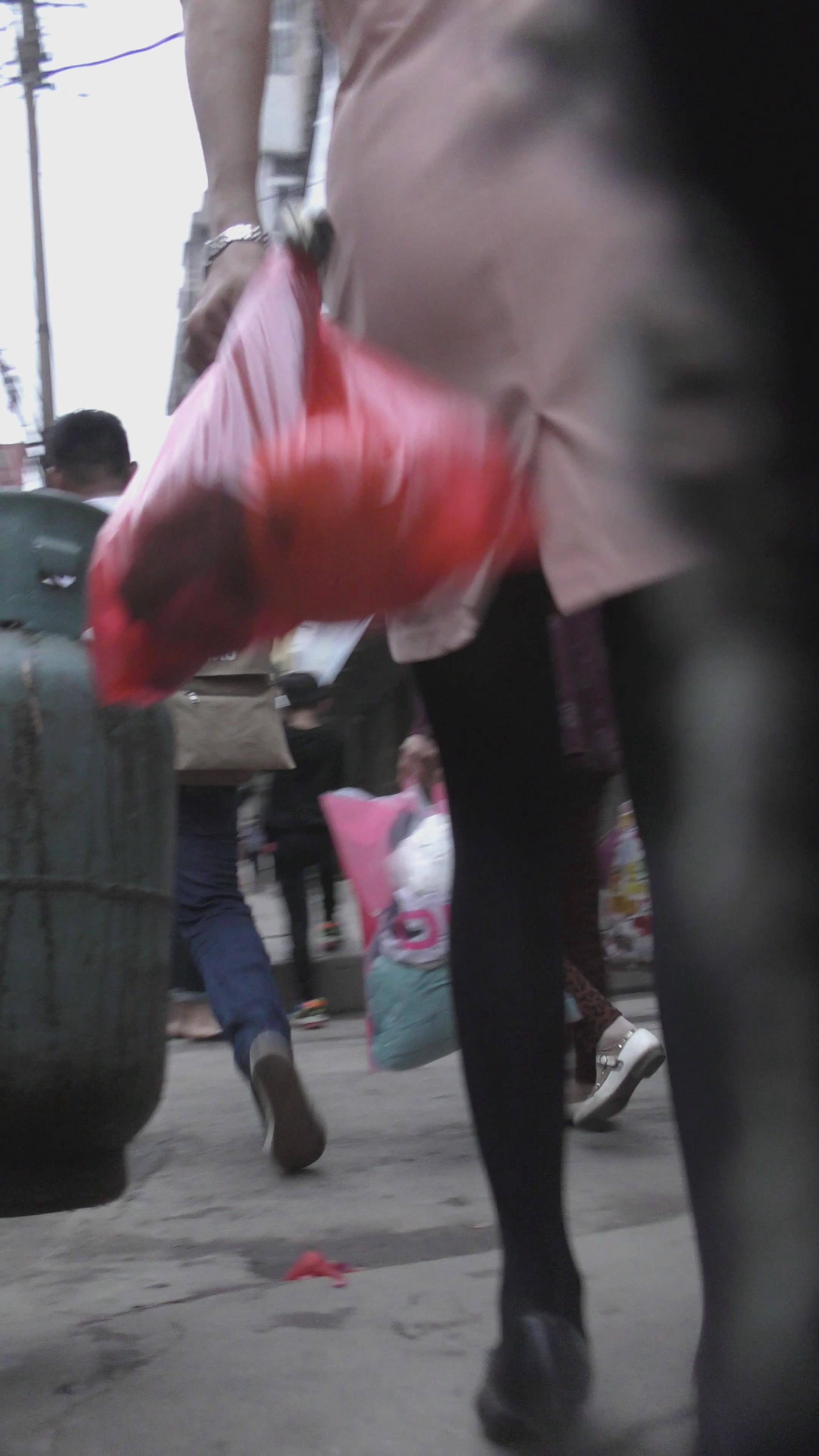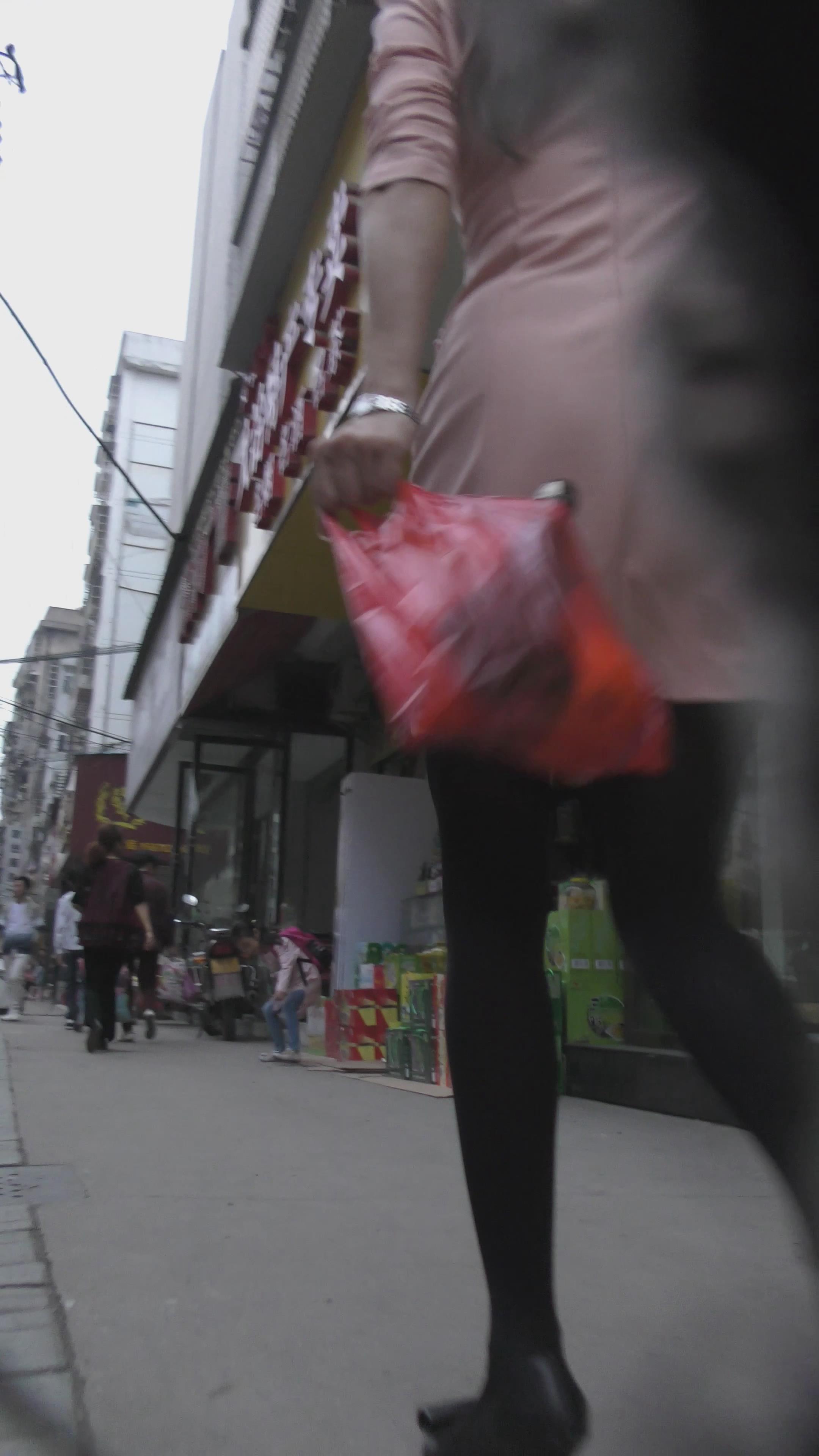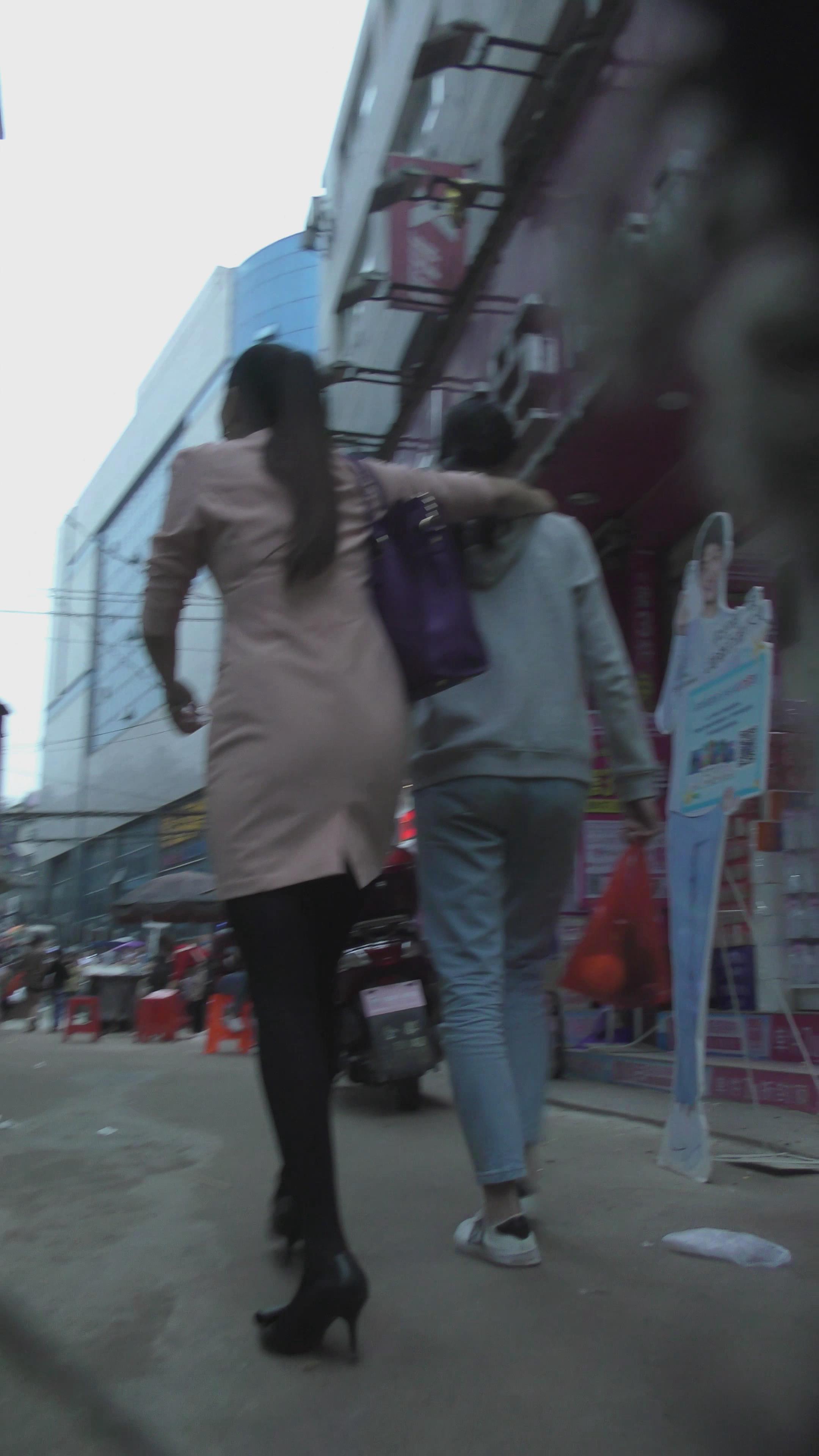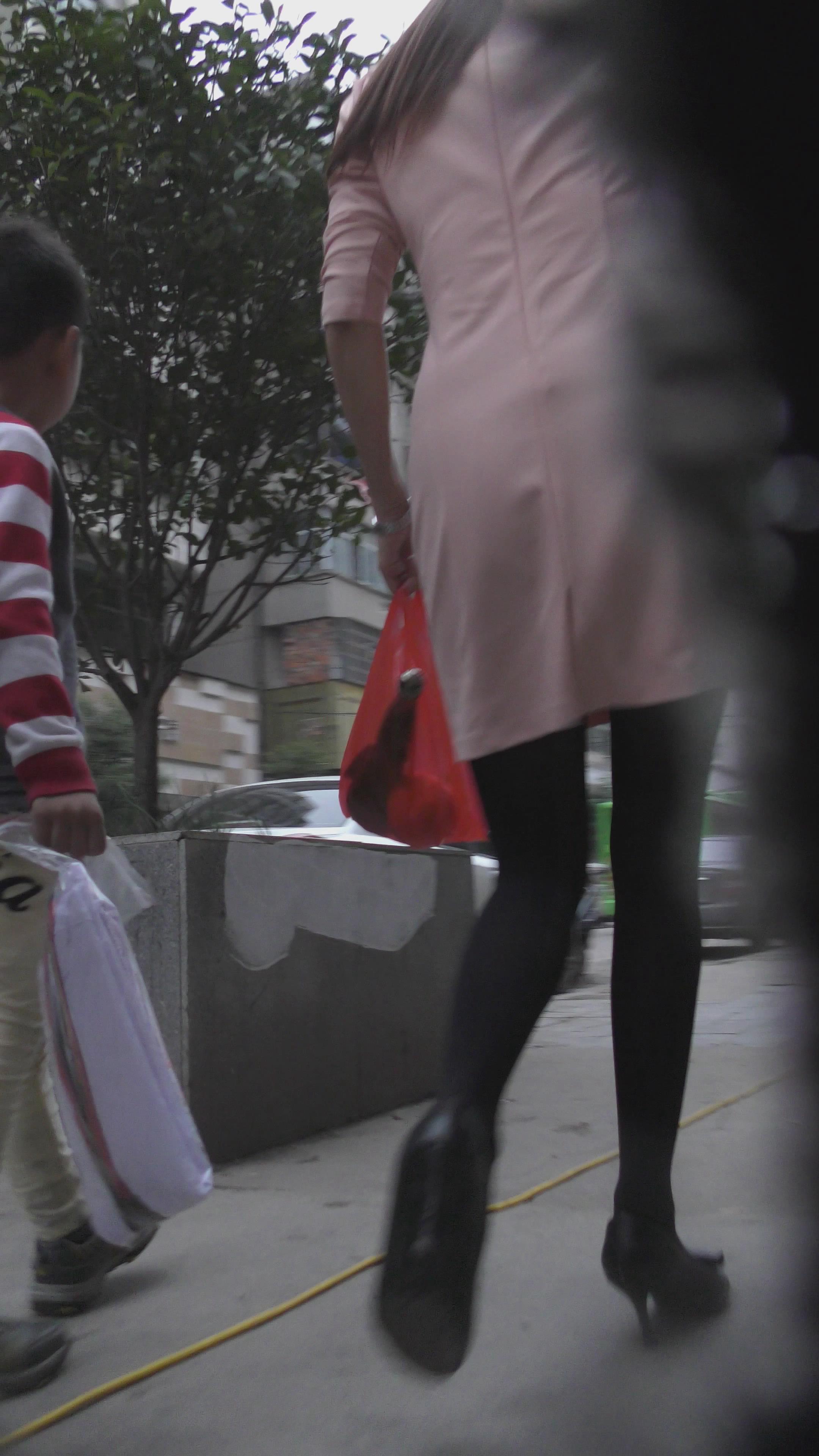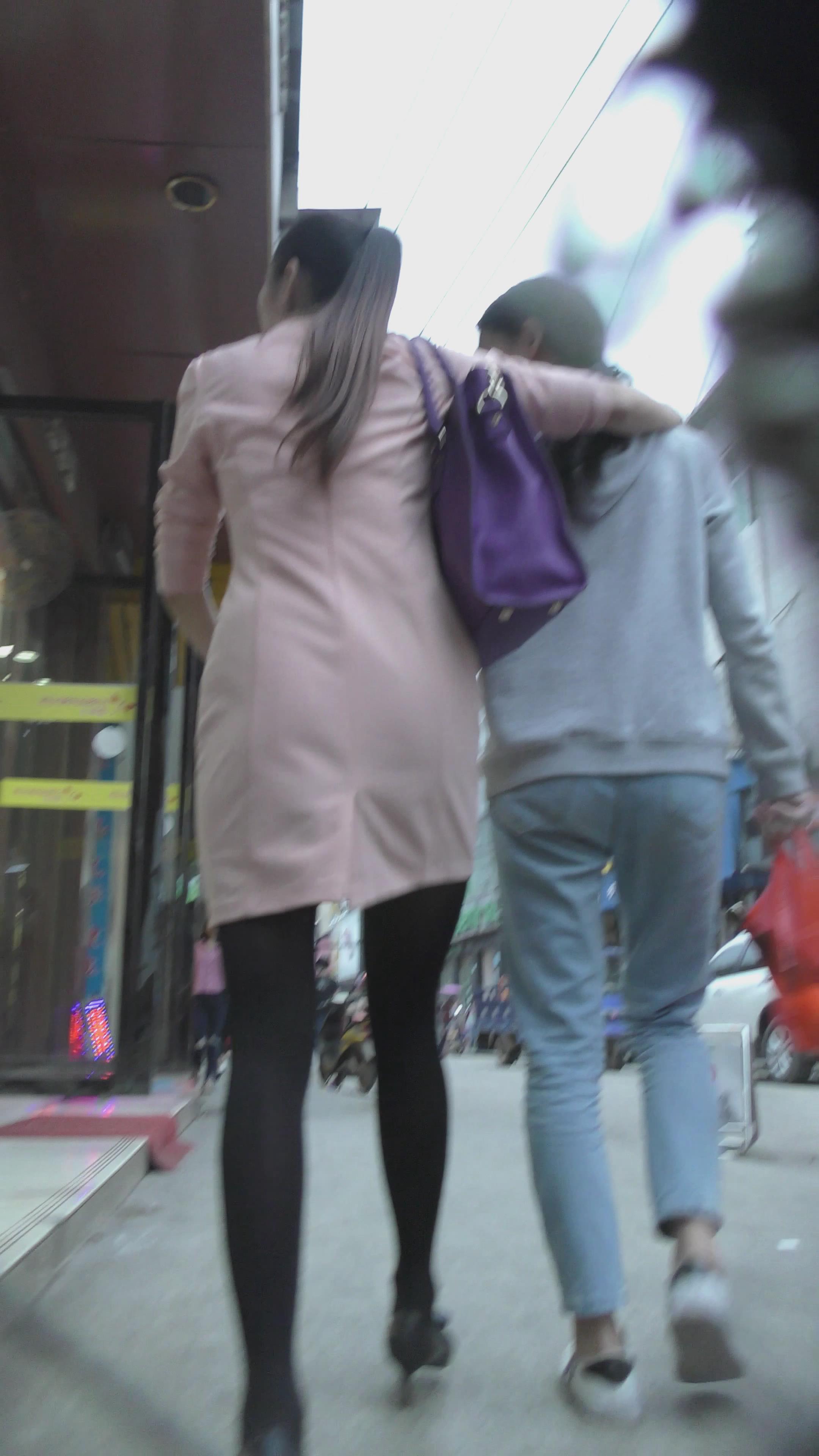 黑色打底裤粉色风衣街拍少妇 编号2174