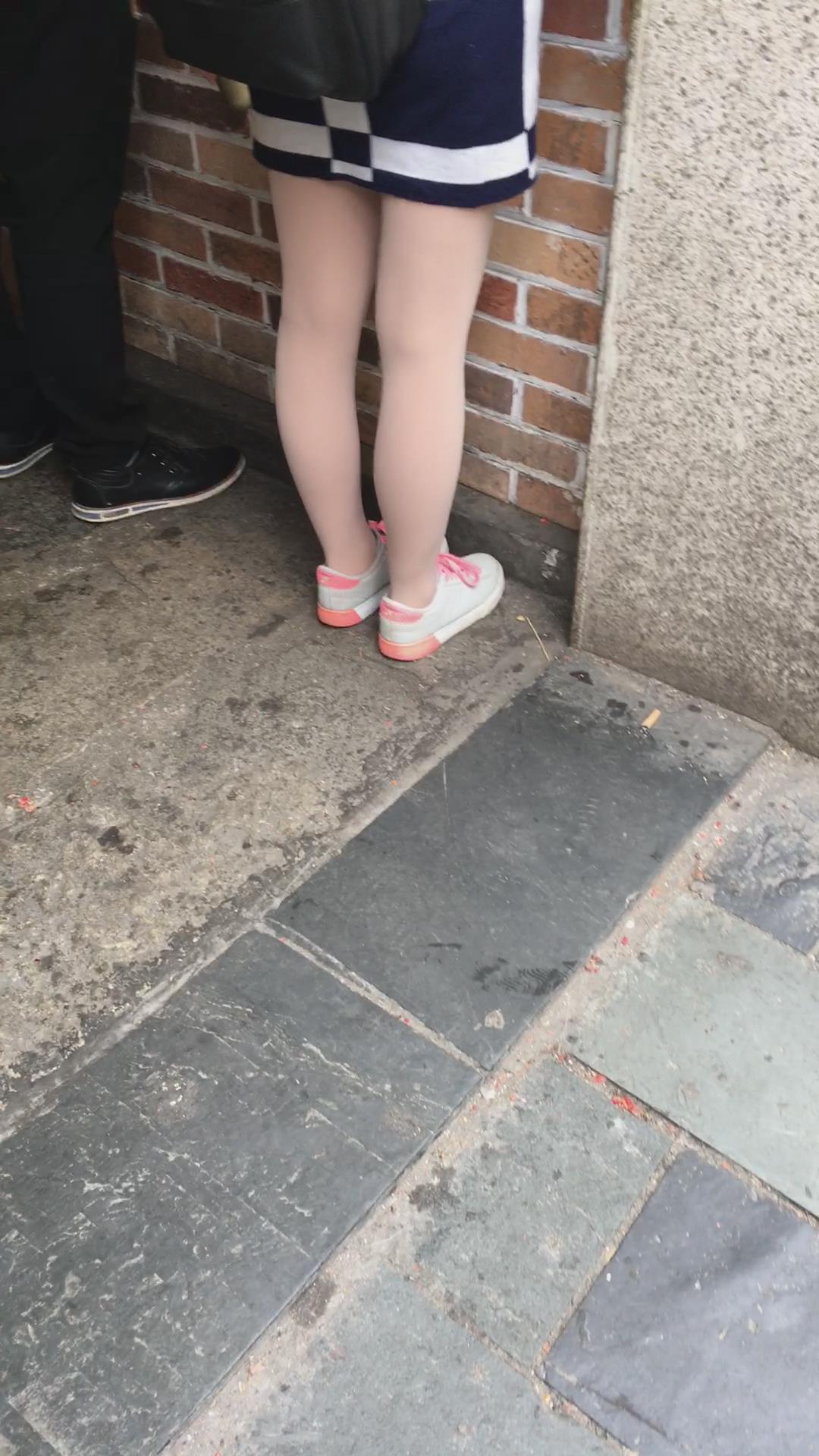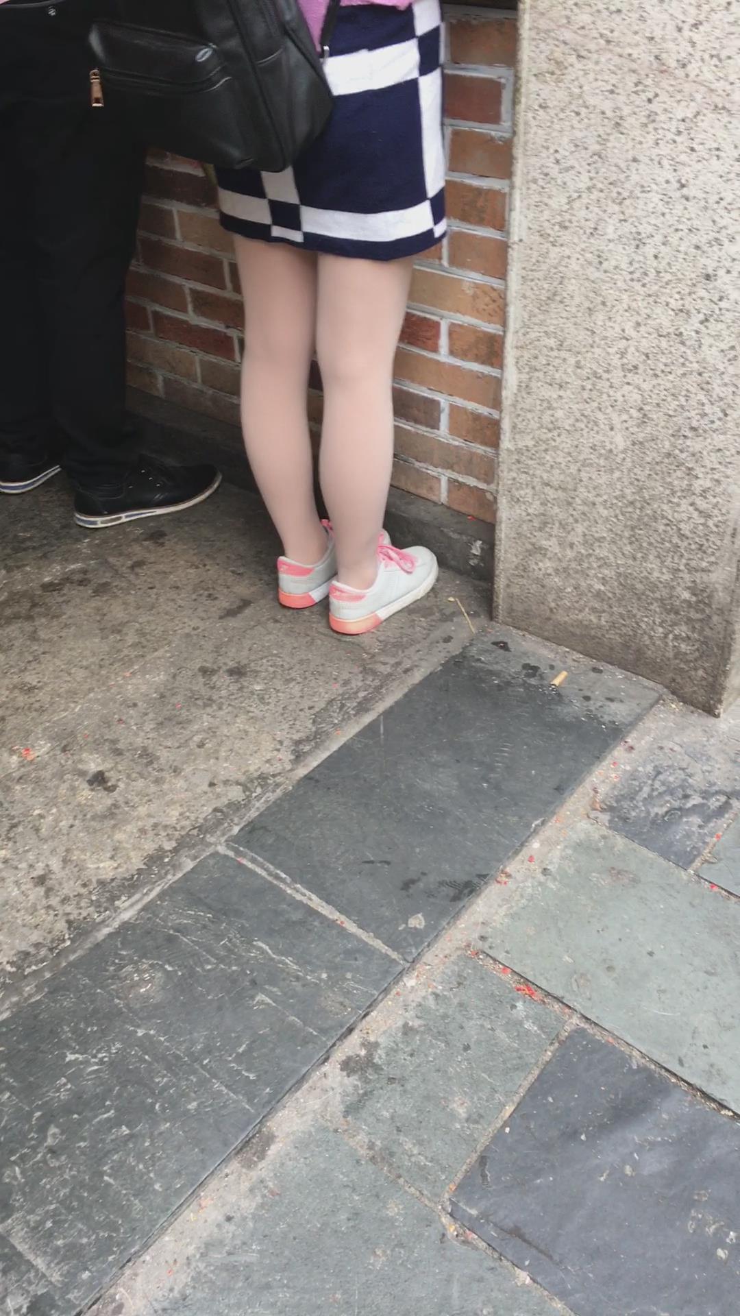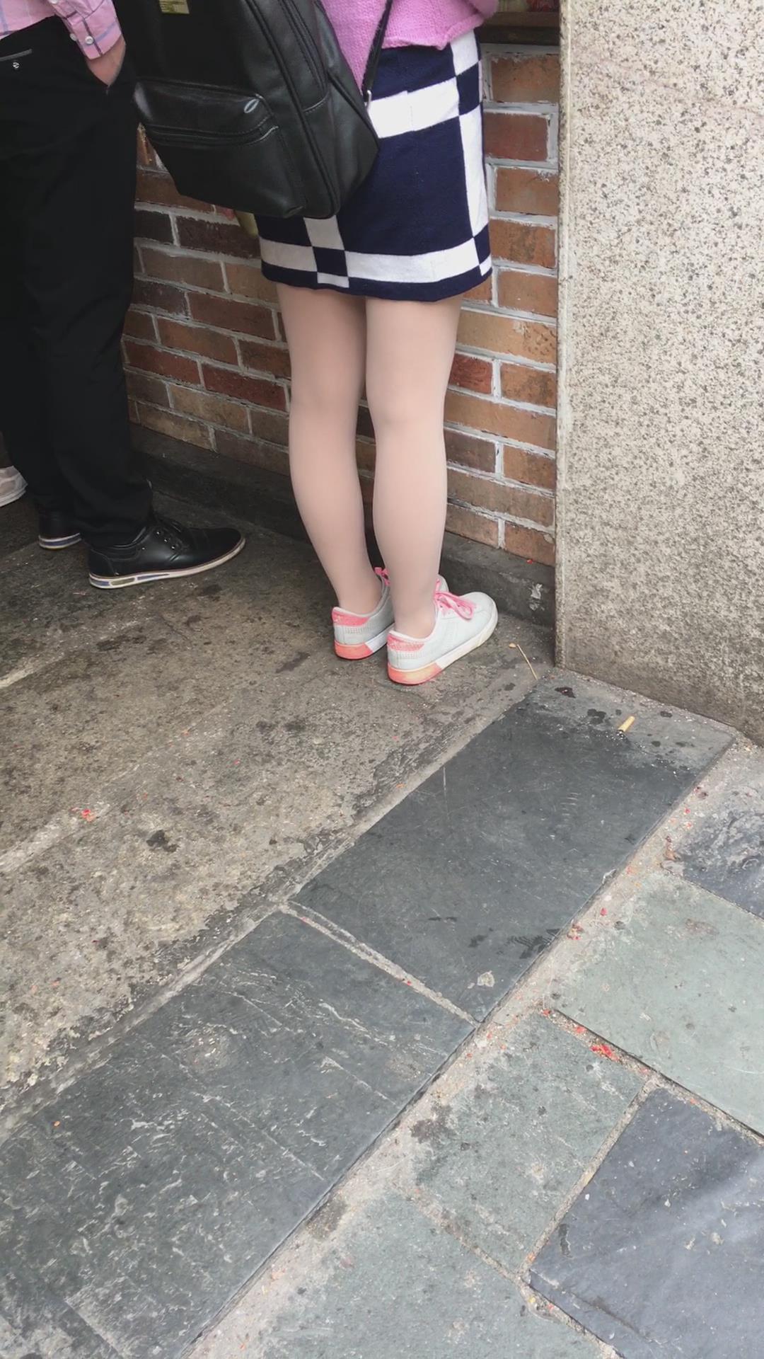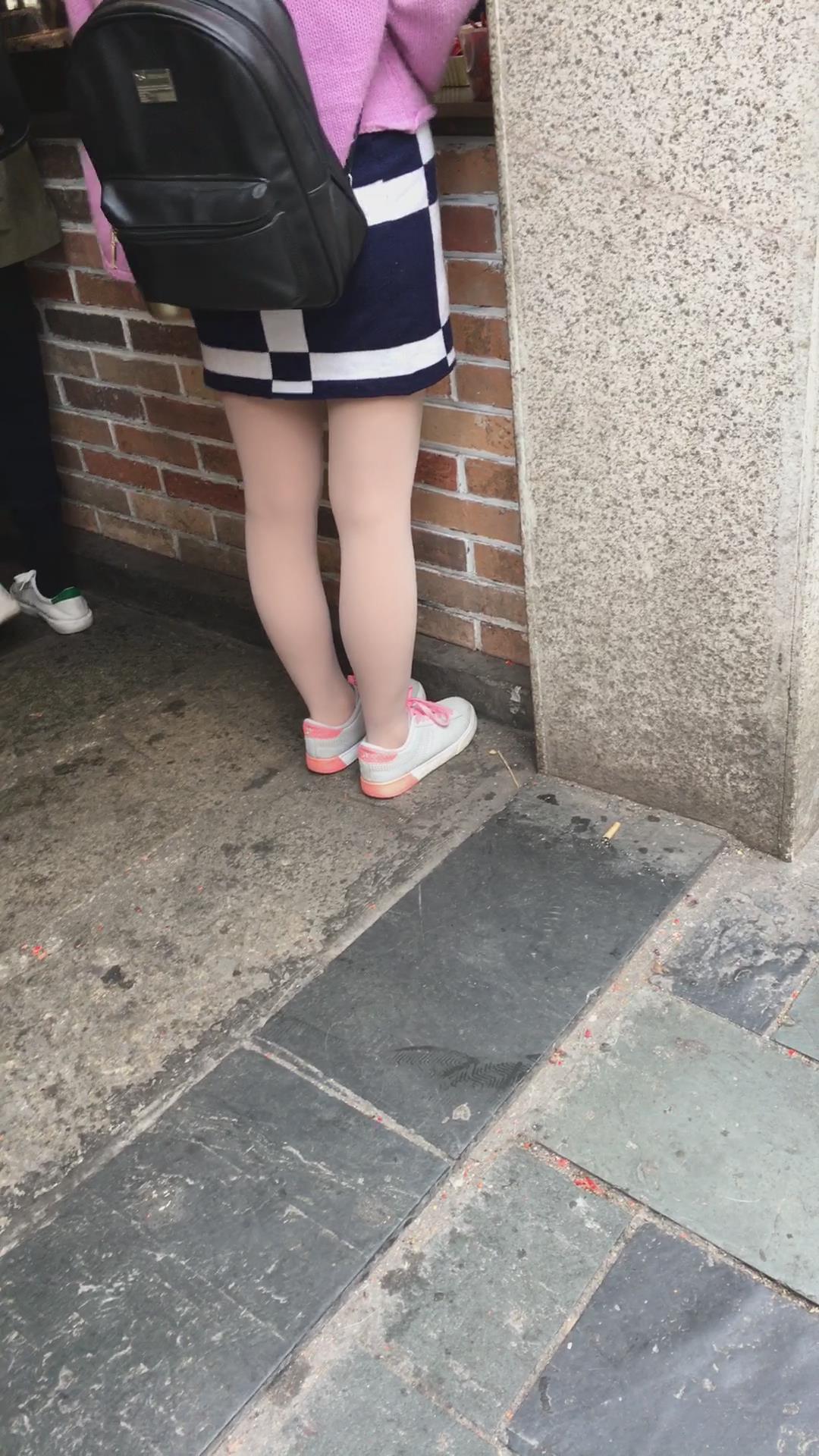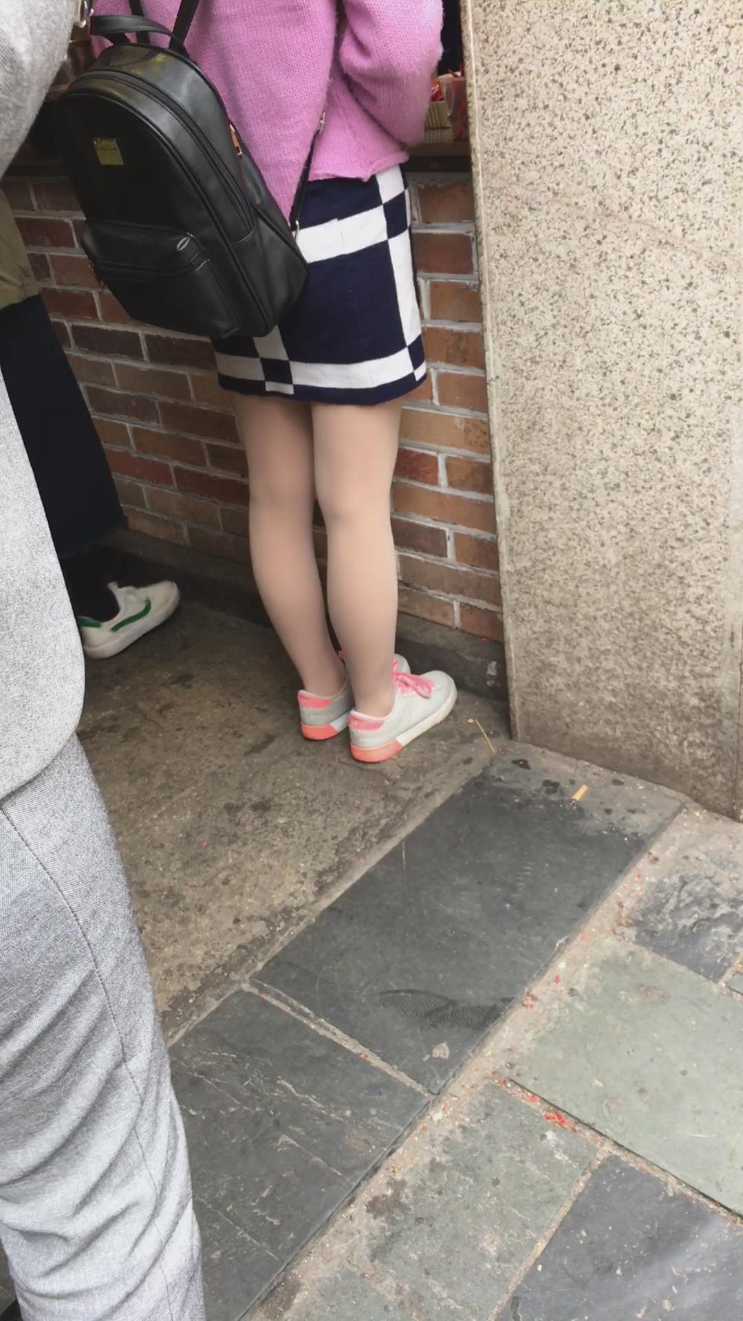 街拍粉衣格子裙丝袜小美女 编号2198