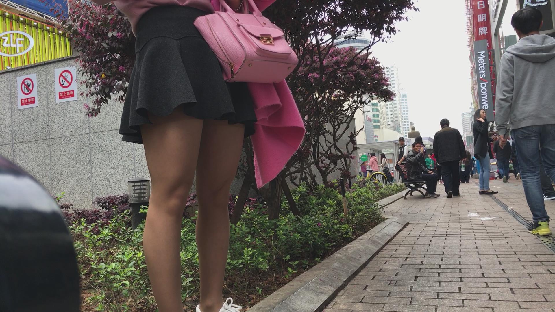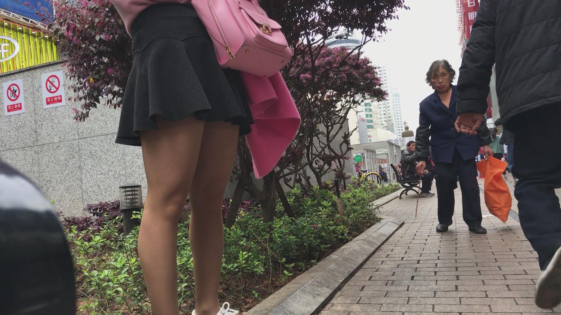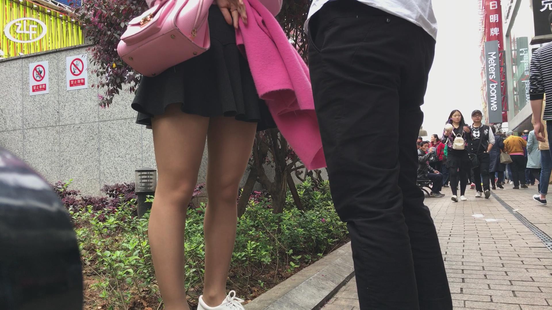 街拍短裙黑丝袜粉衣可爱学生妹 编号2201