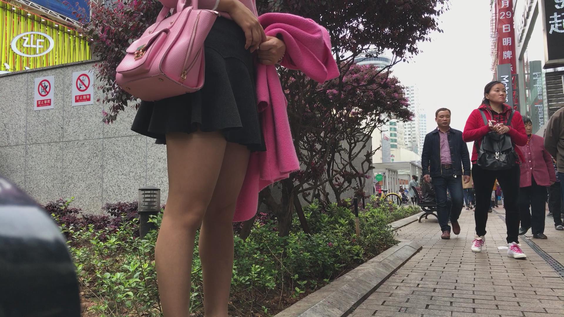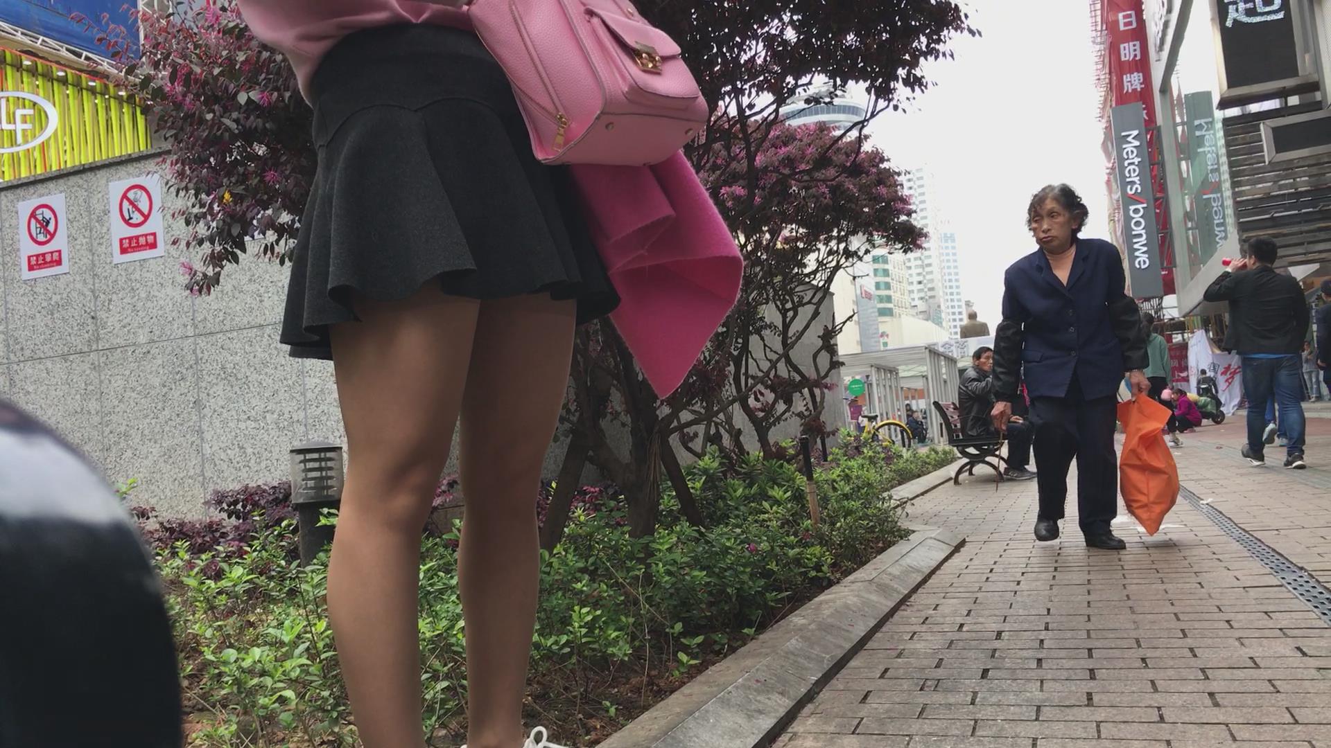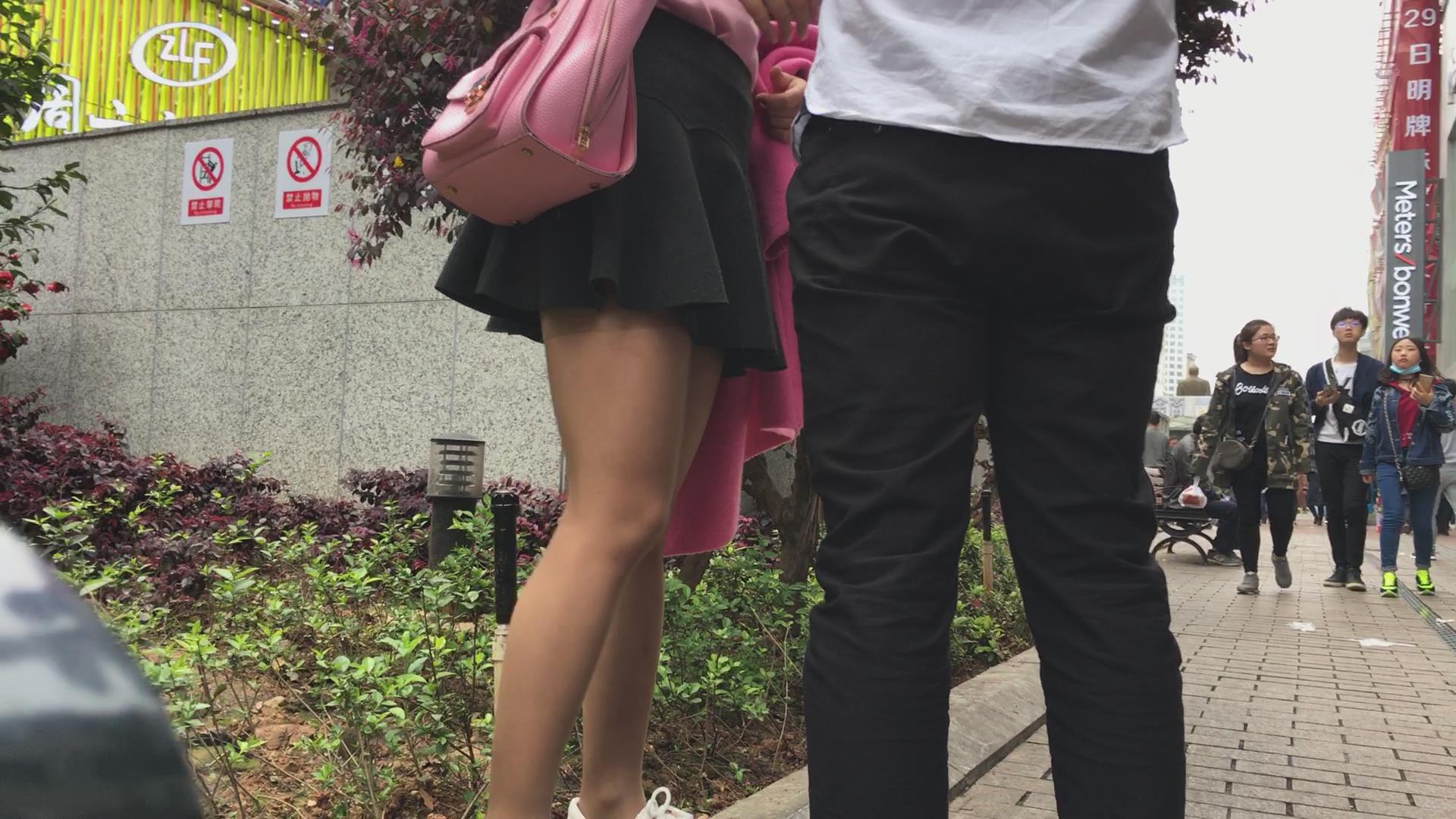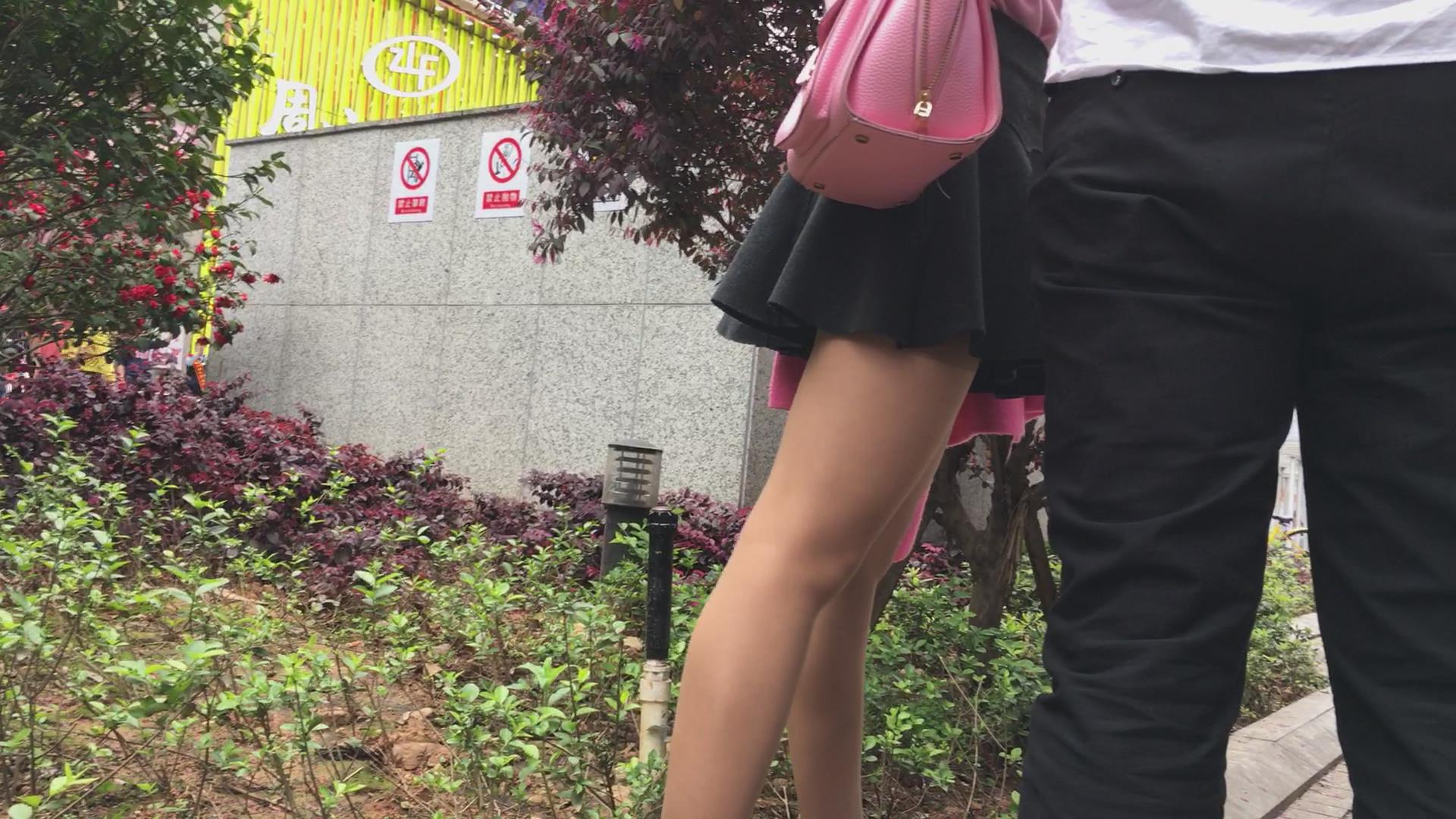 街拍短裙黑丝袜粉衣可爱学生妹 编号2201