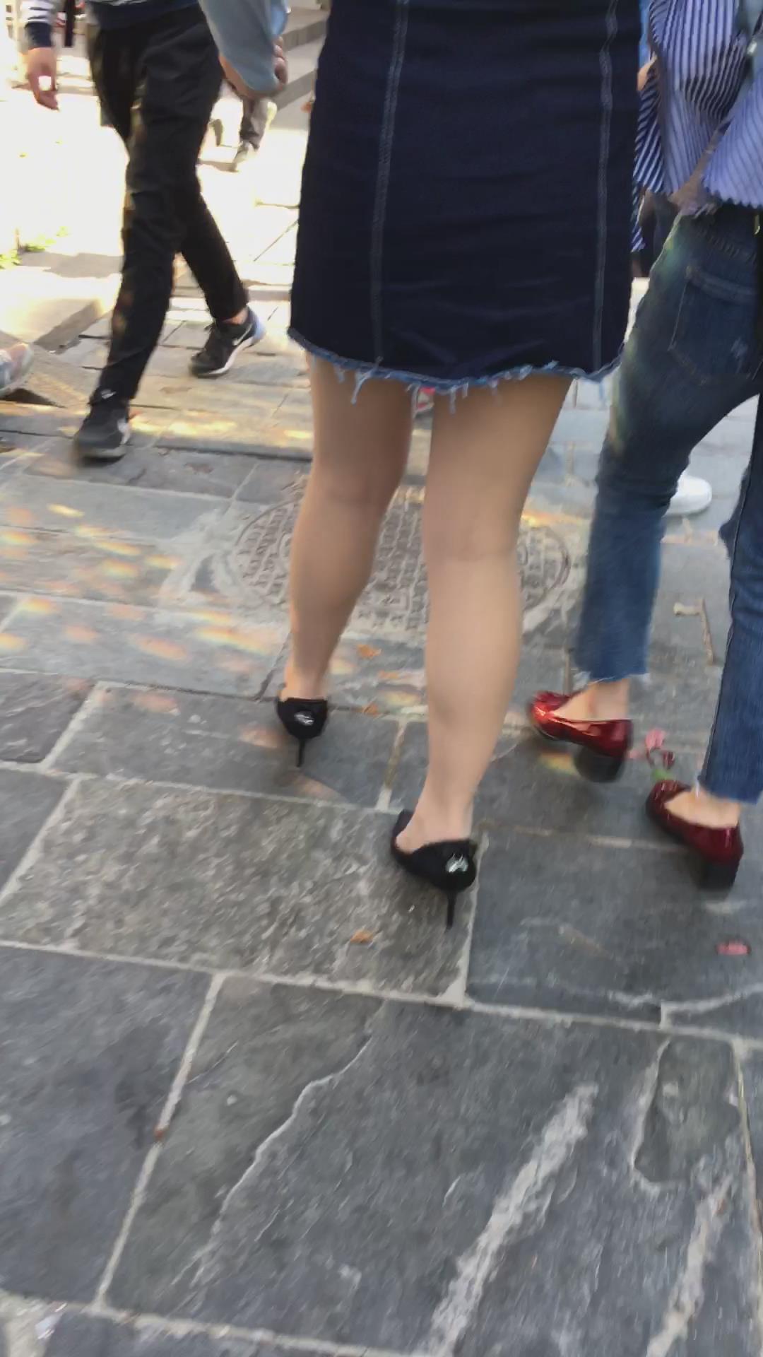 跟拍高跟鞋牛仔裙美眉 编号2209