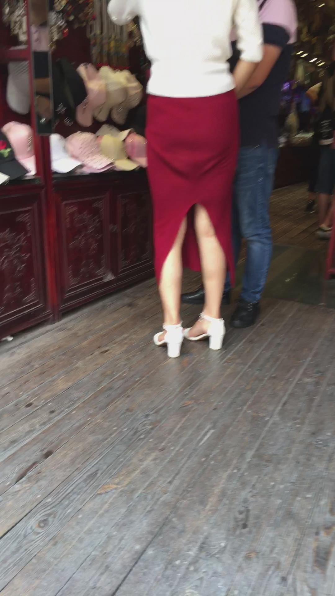 极品气质大红色开叉包臀裙性感姐姐 编号2218