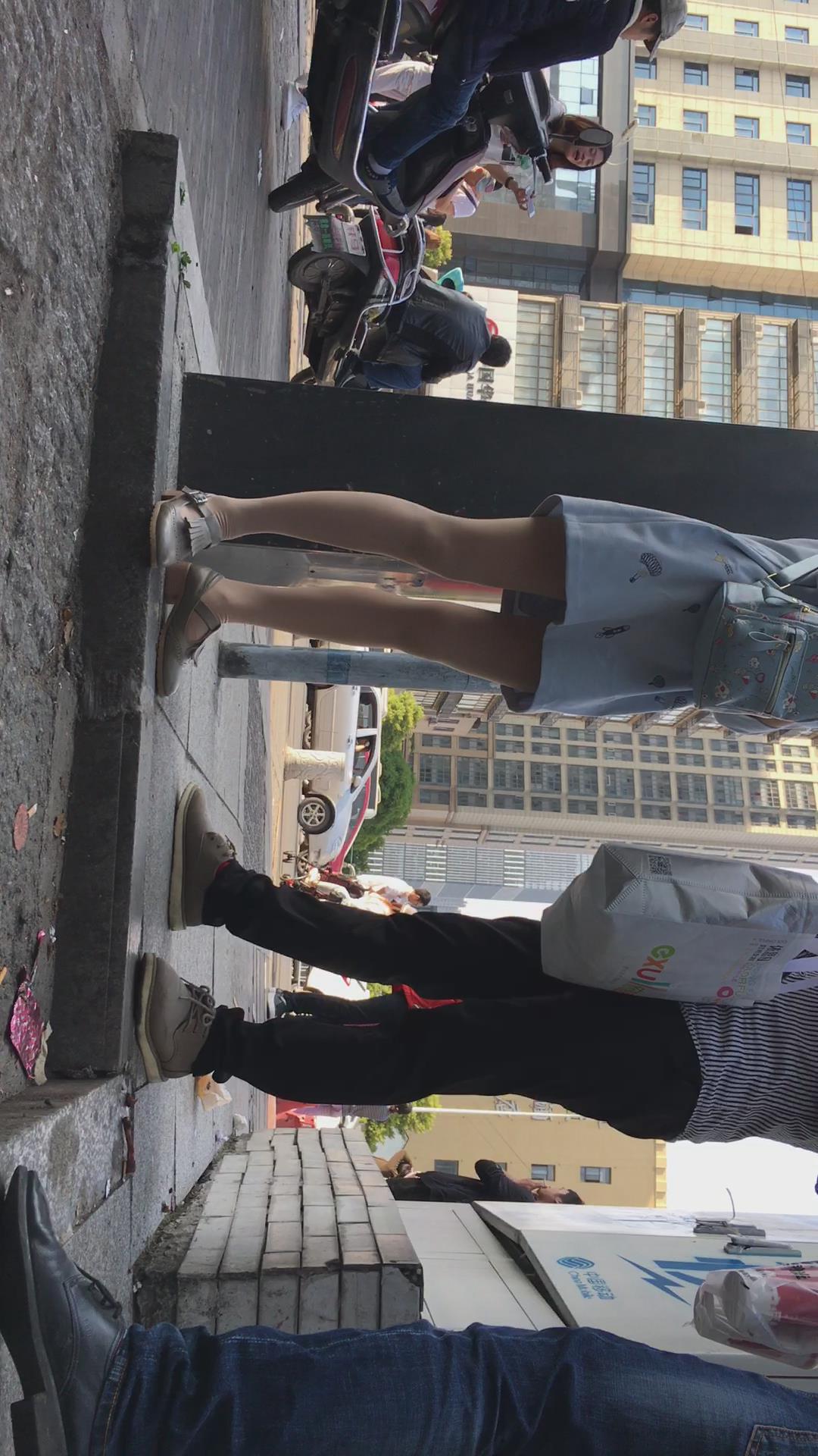 街拍美腿连衣裙清纯气质小姐姐路边吃雪糕 编号2220