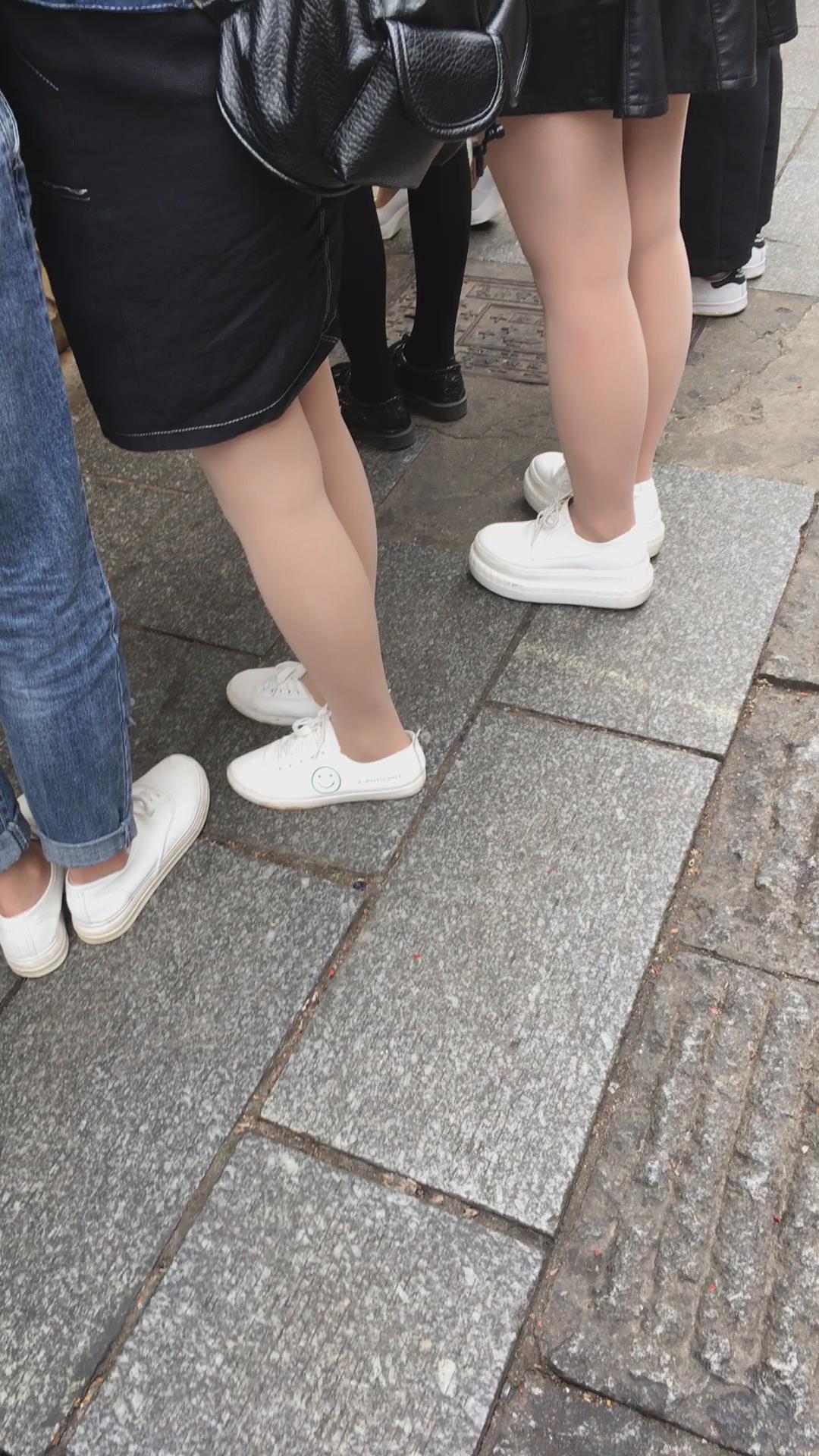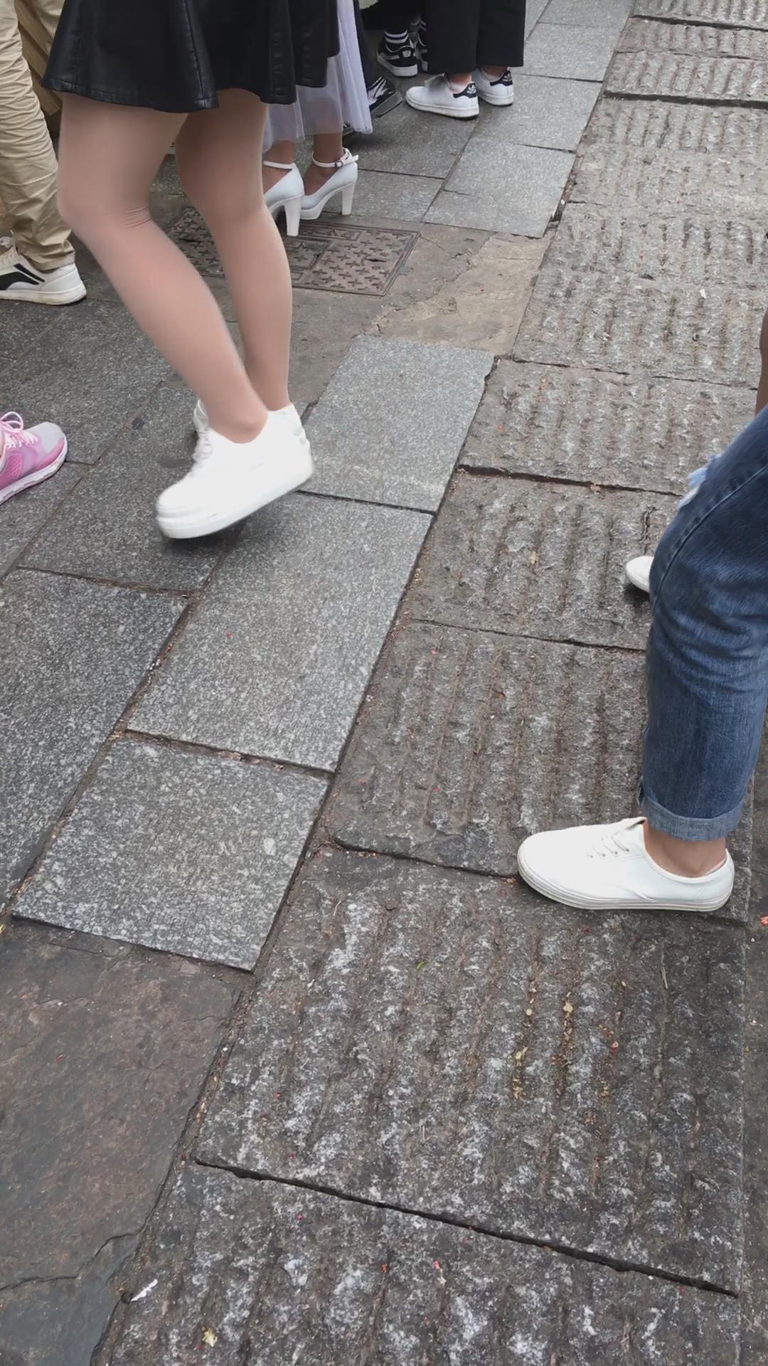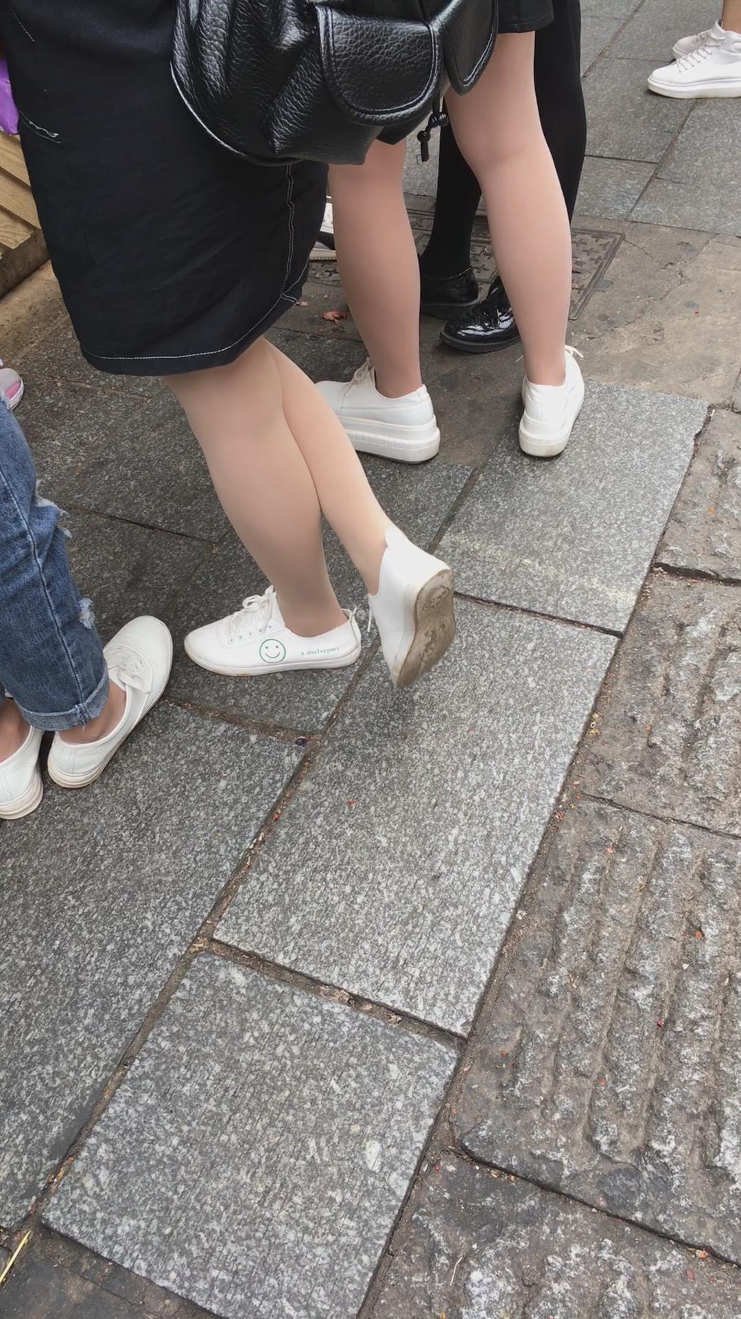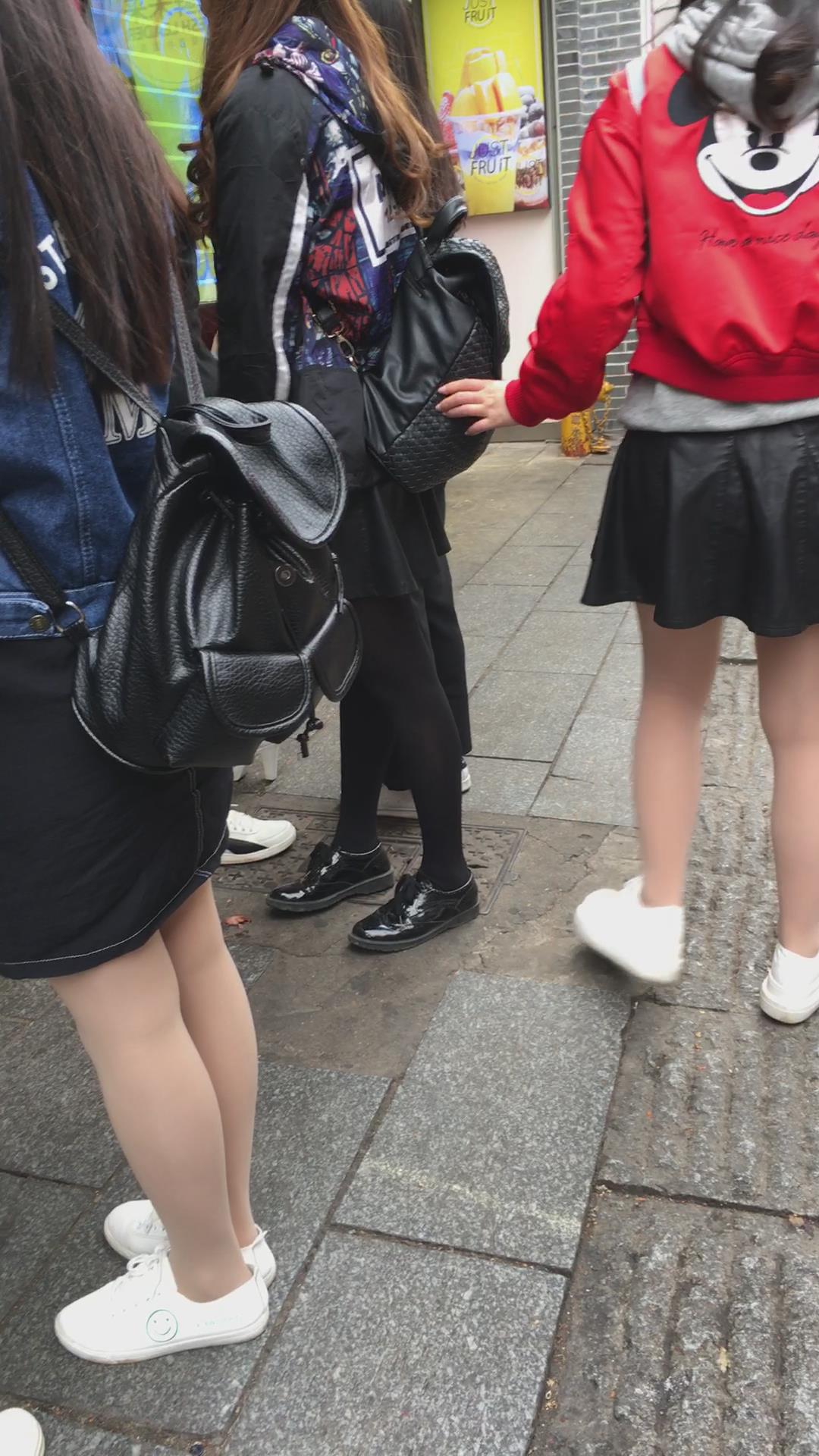 街拍红衣短裙丝袜美腿小清新妹子 编号2228
