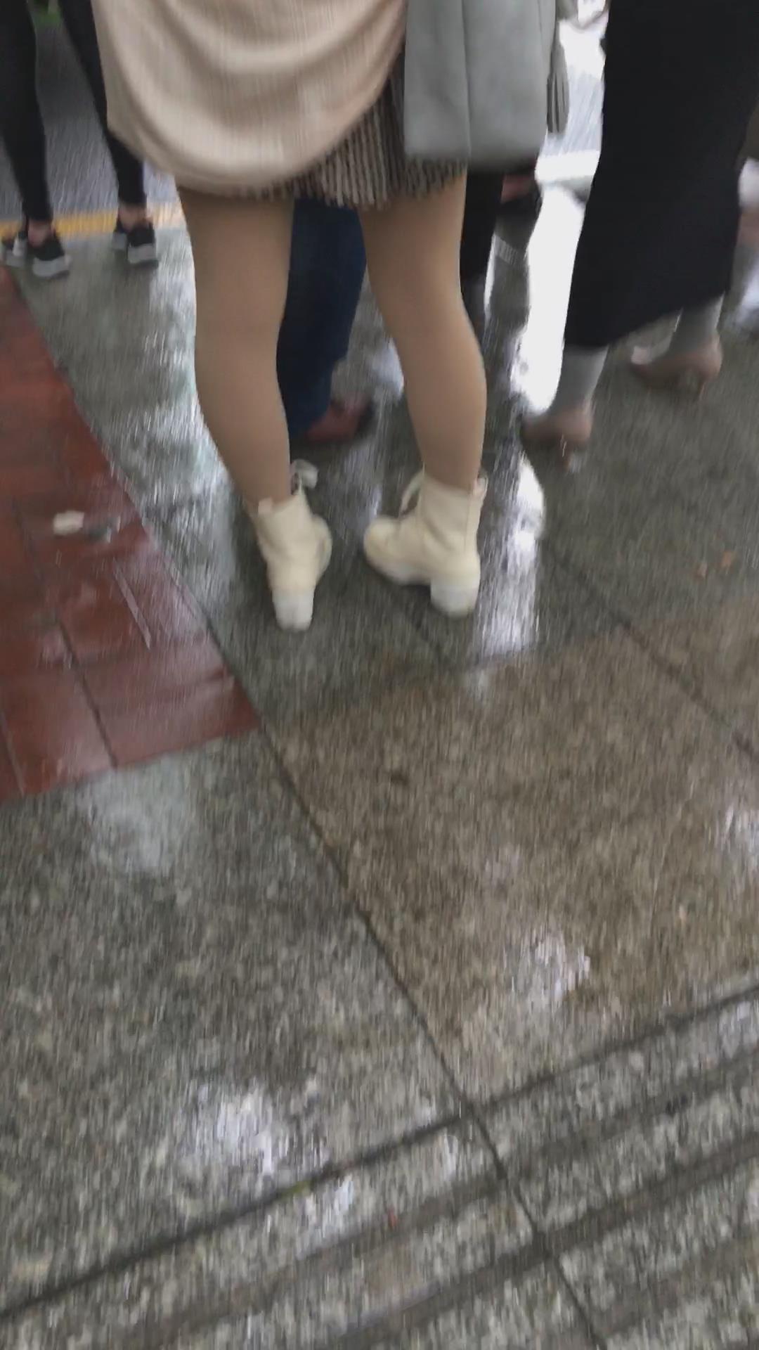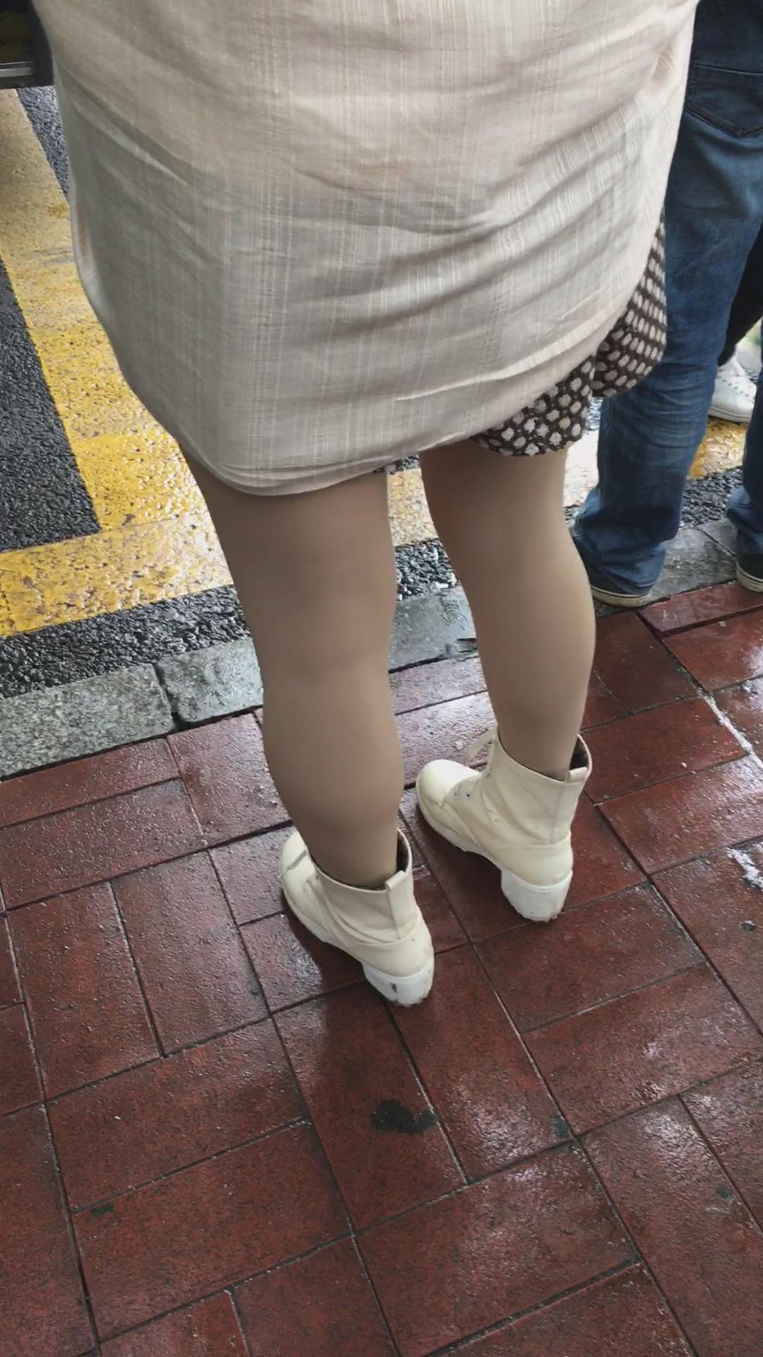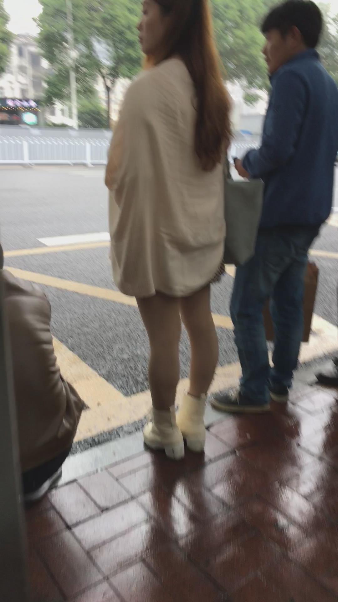 等车的气质肉丝袜连衣裙美颜美女 编号2284