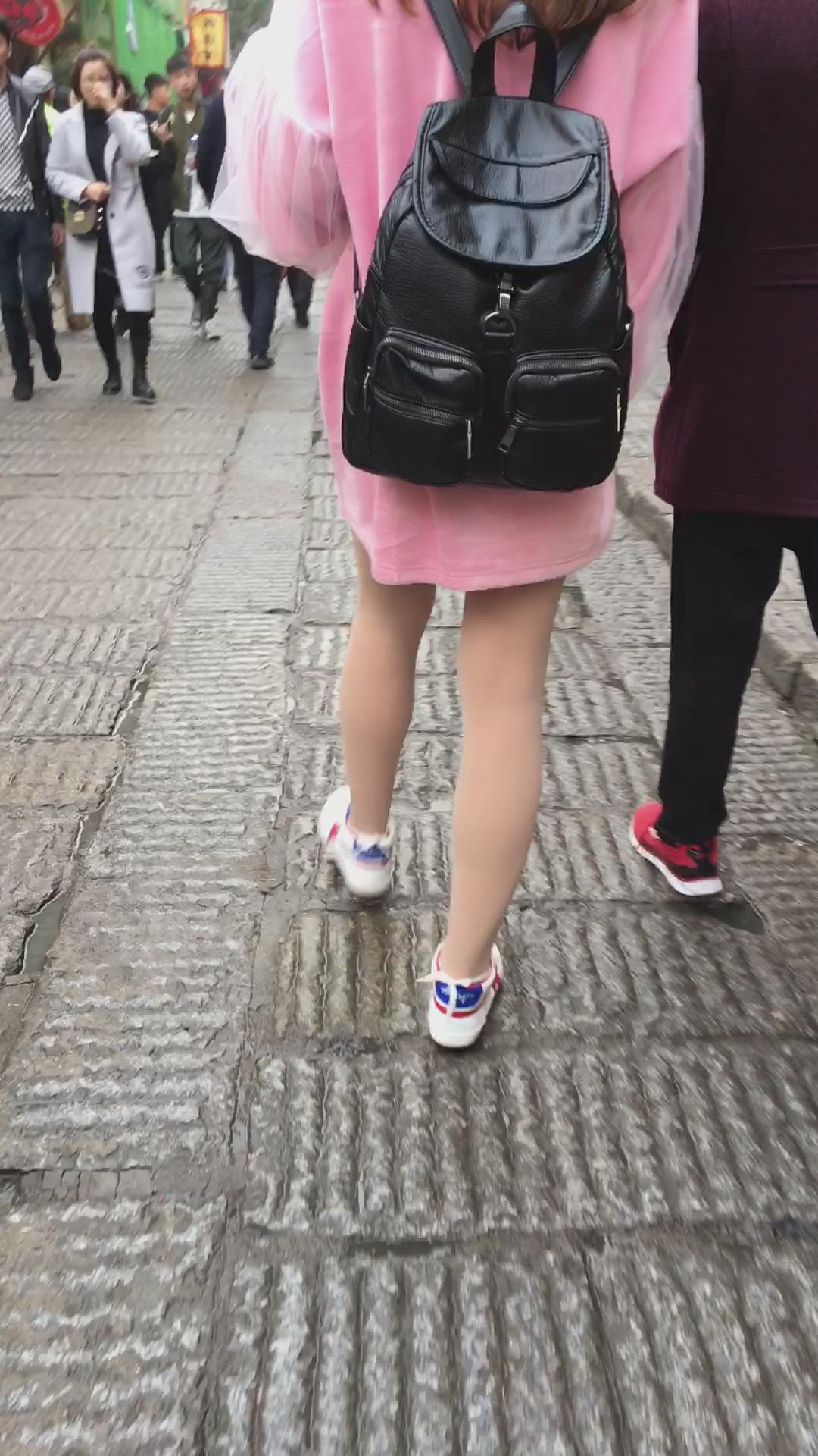 跟拍气质粉粉连衣裙可爱萌妹子 编号2285