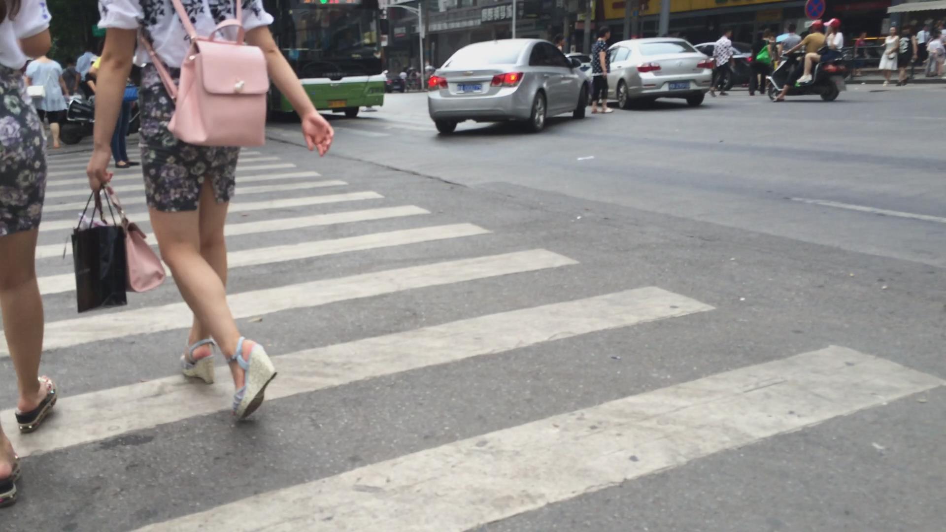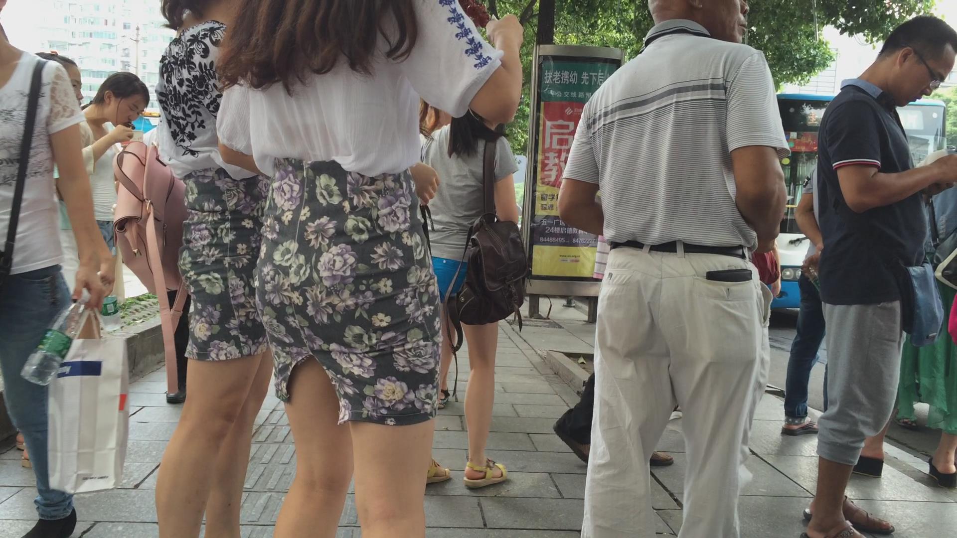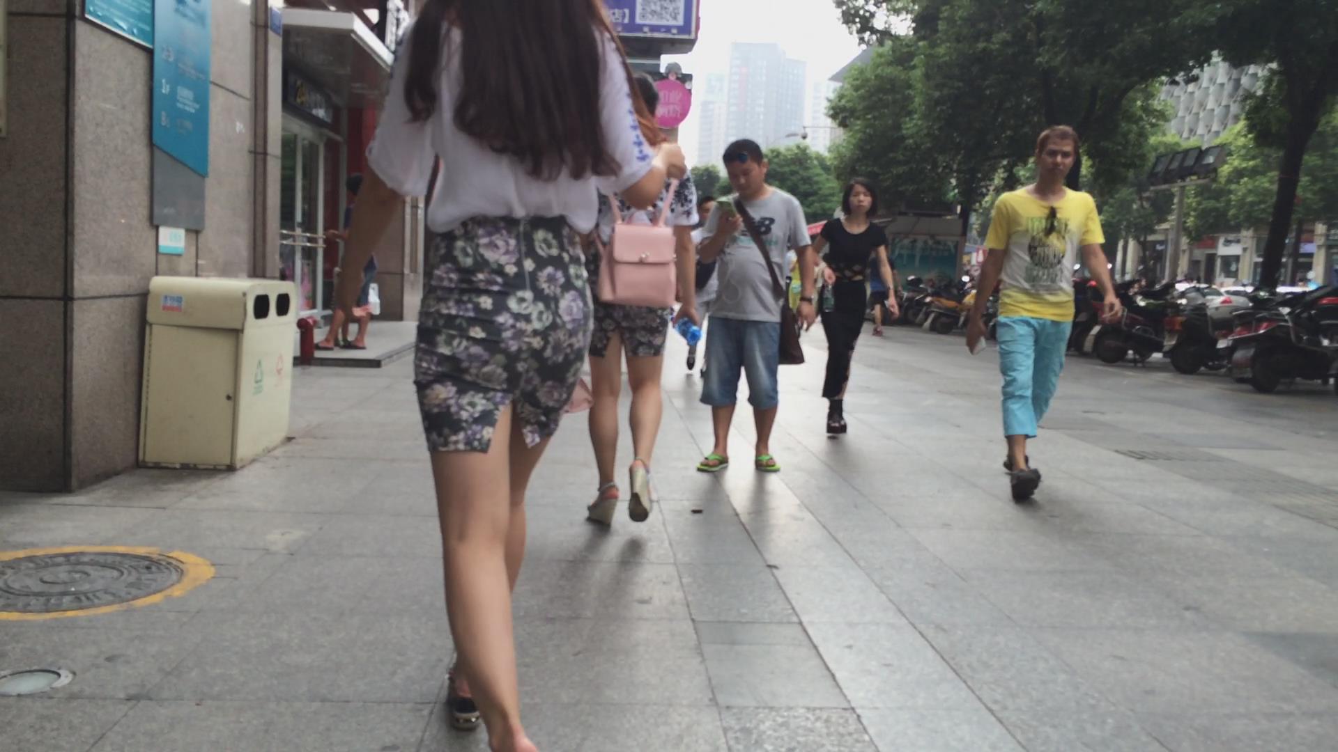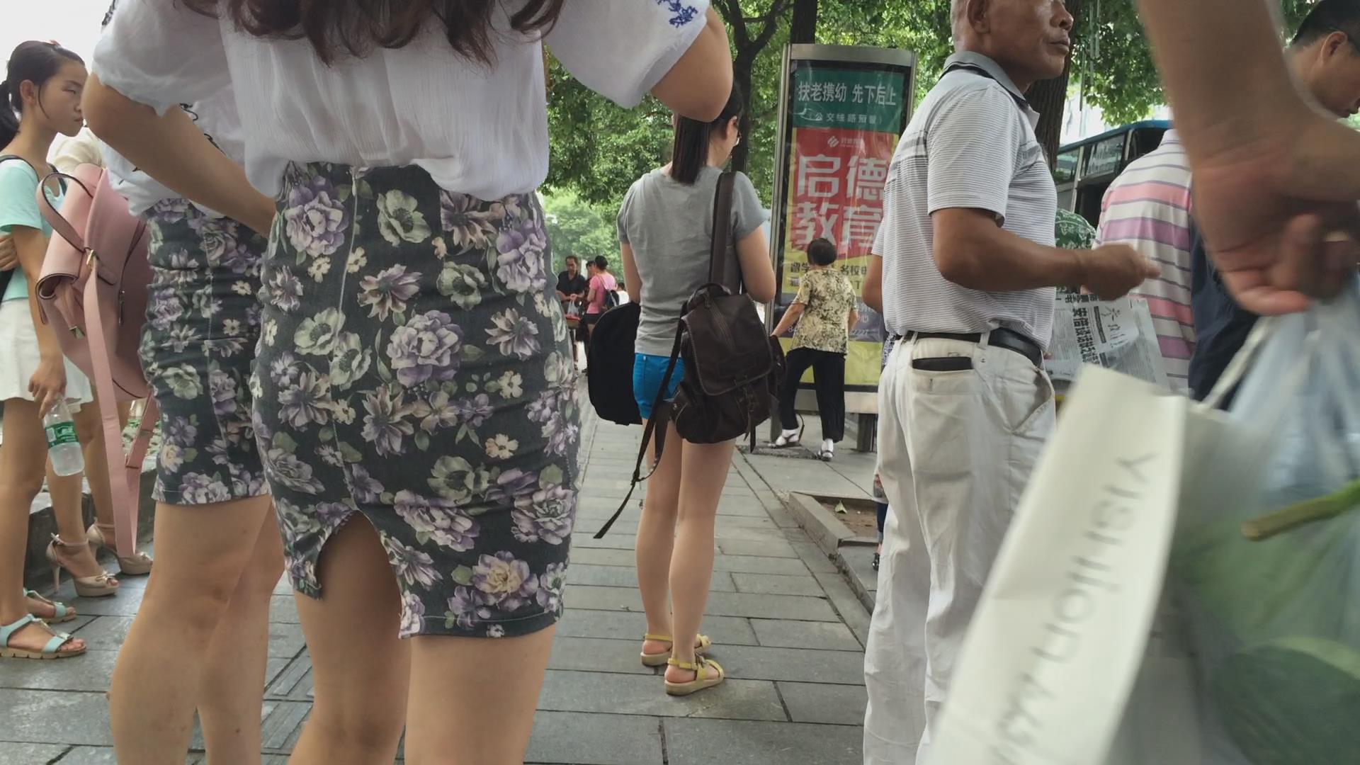 街拍碎花包臀裙颜值美女小姐姐 编号2324