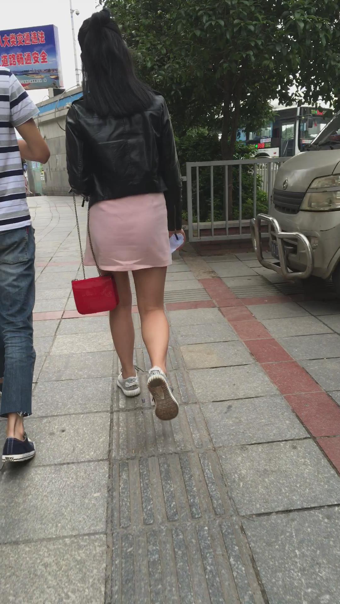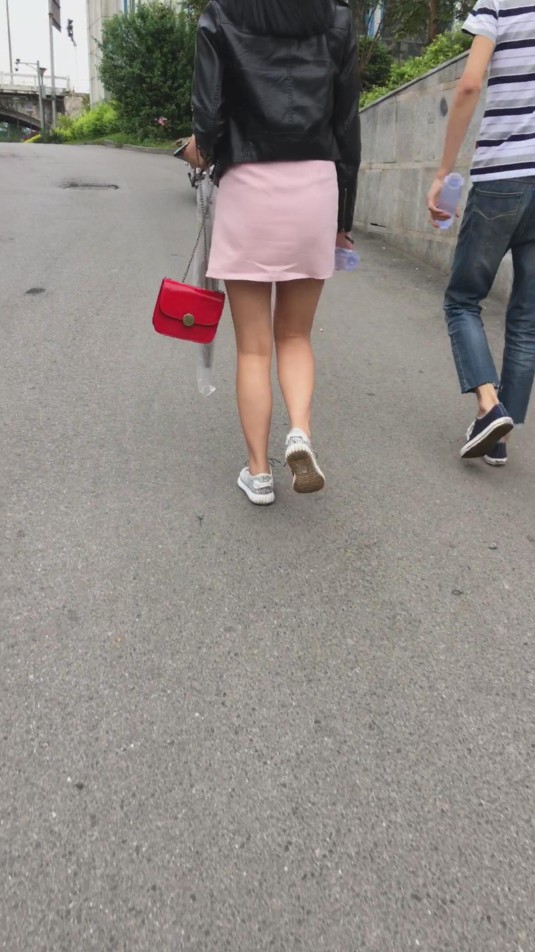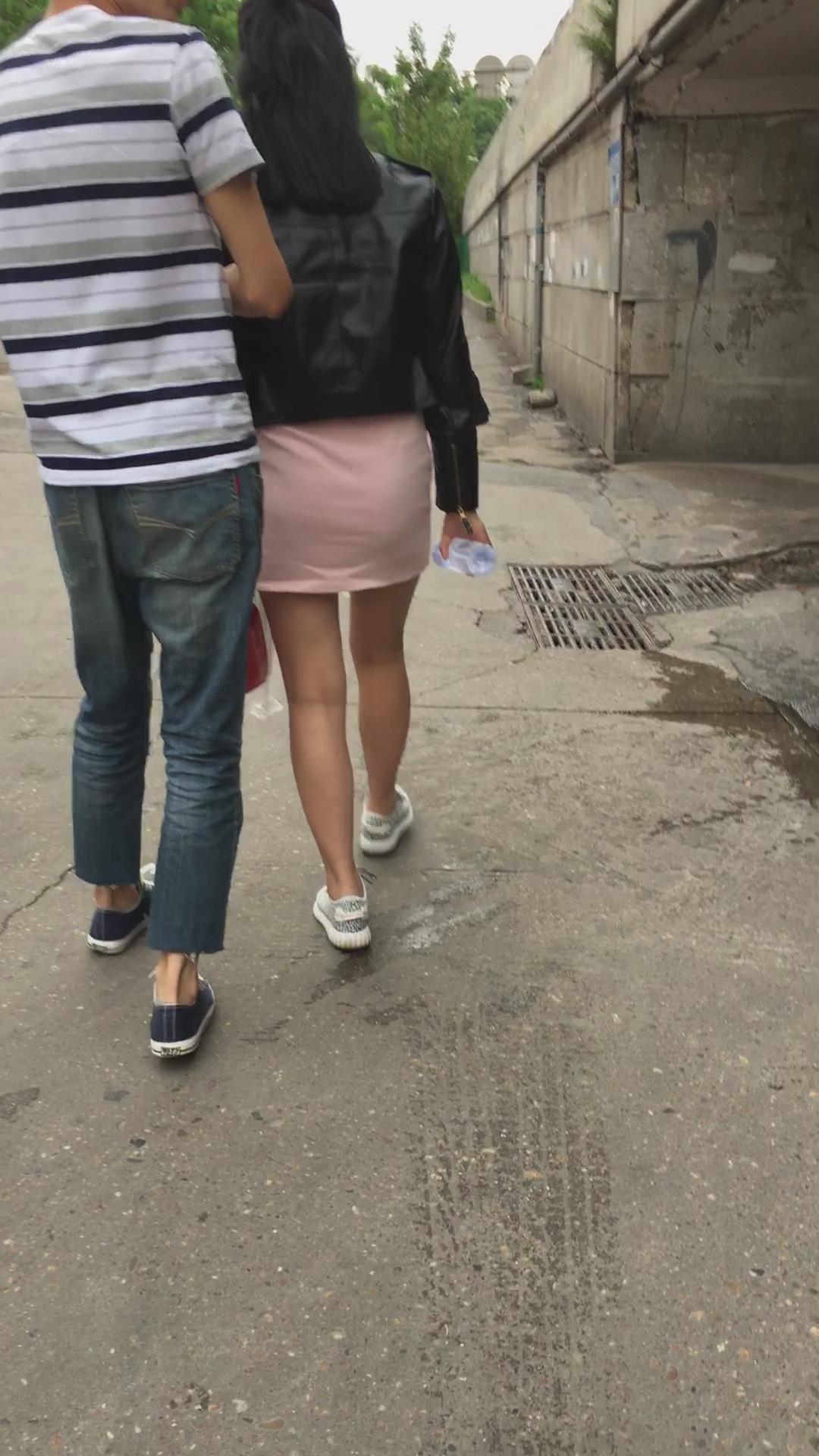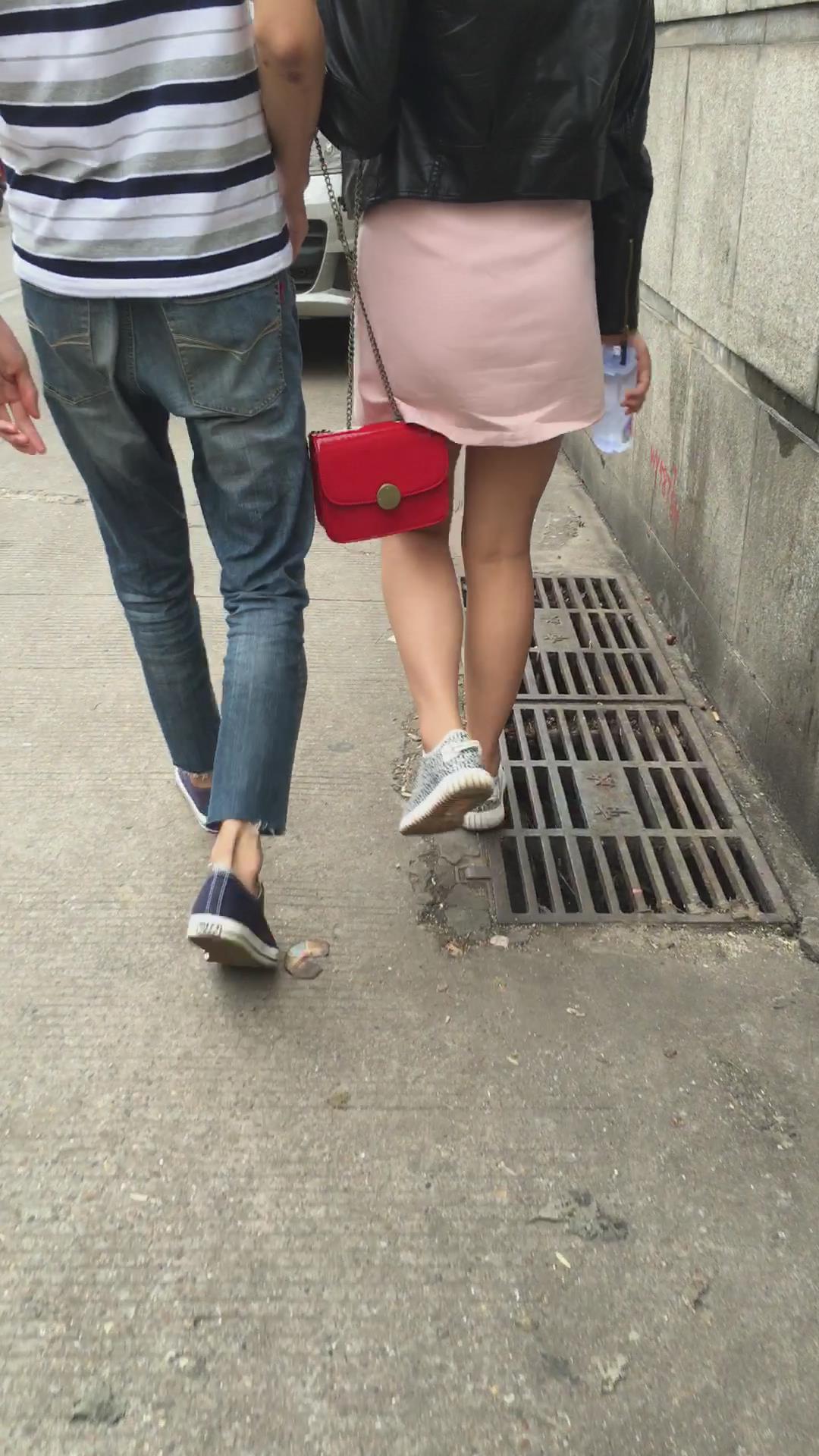 跟拍粉色短裙美眉,跟小男友逛街一脸甜蜜 编号2349