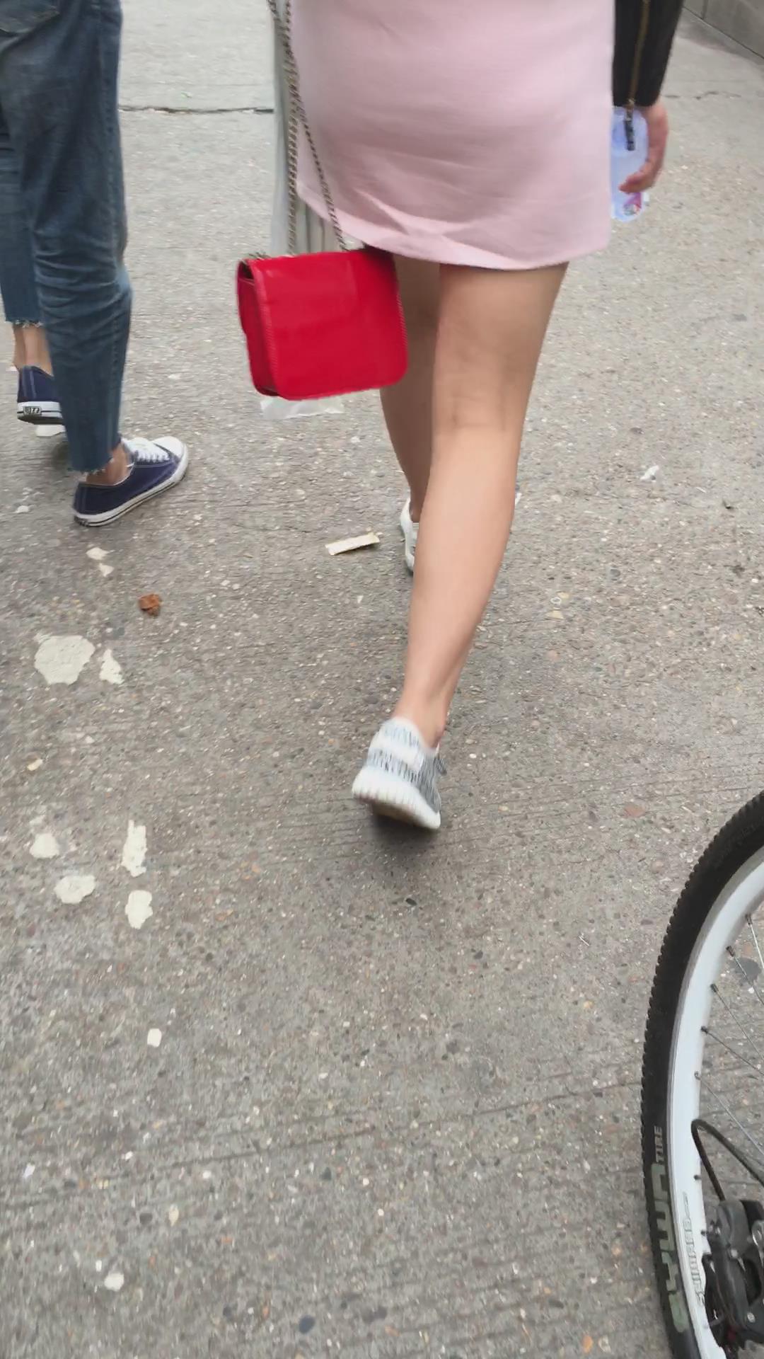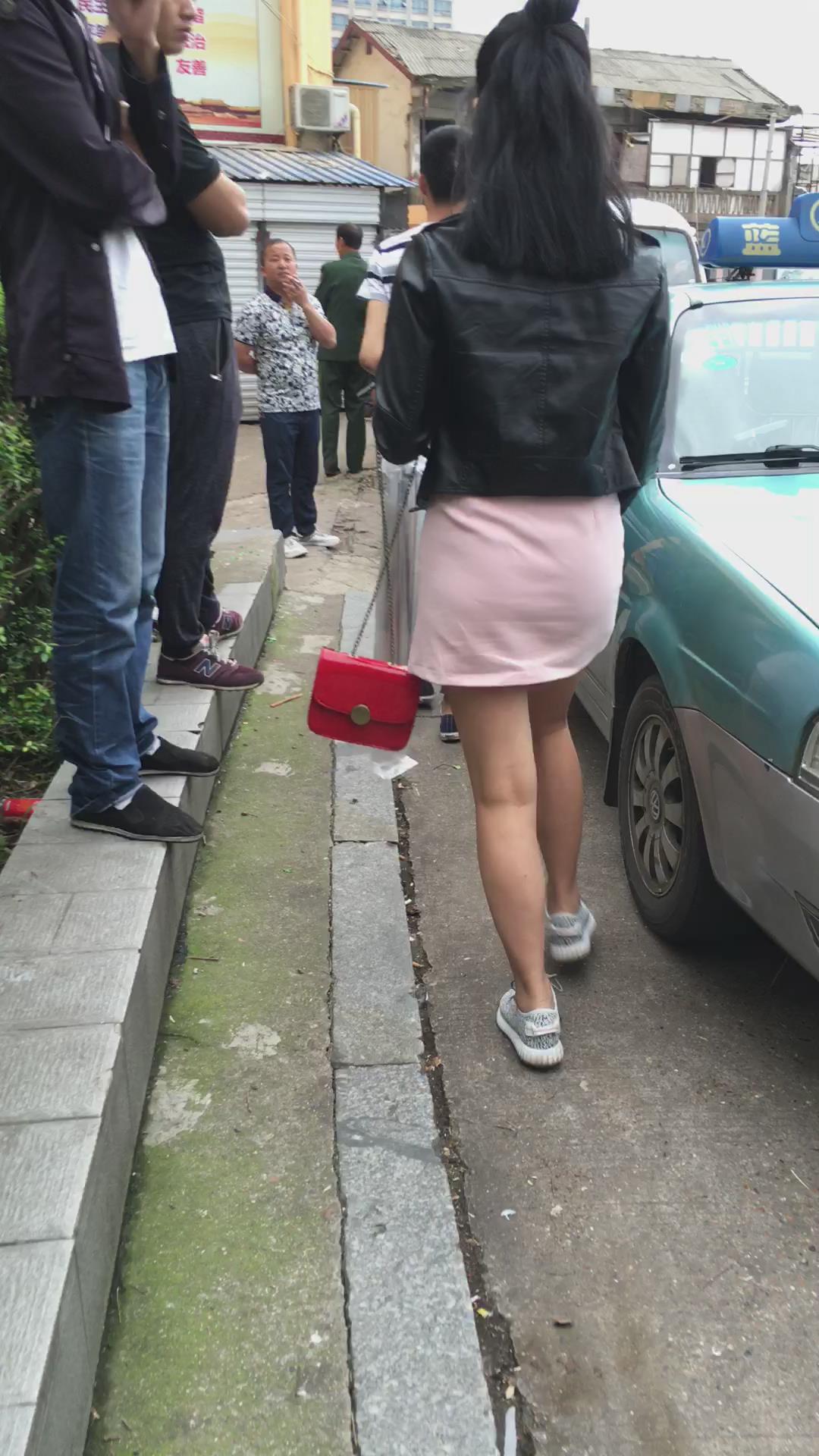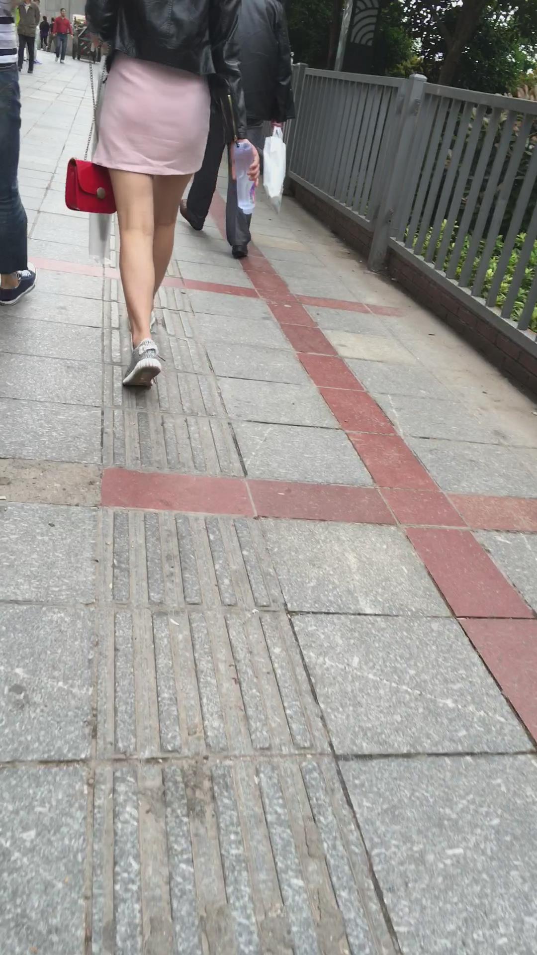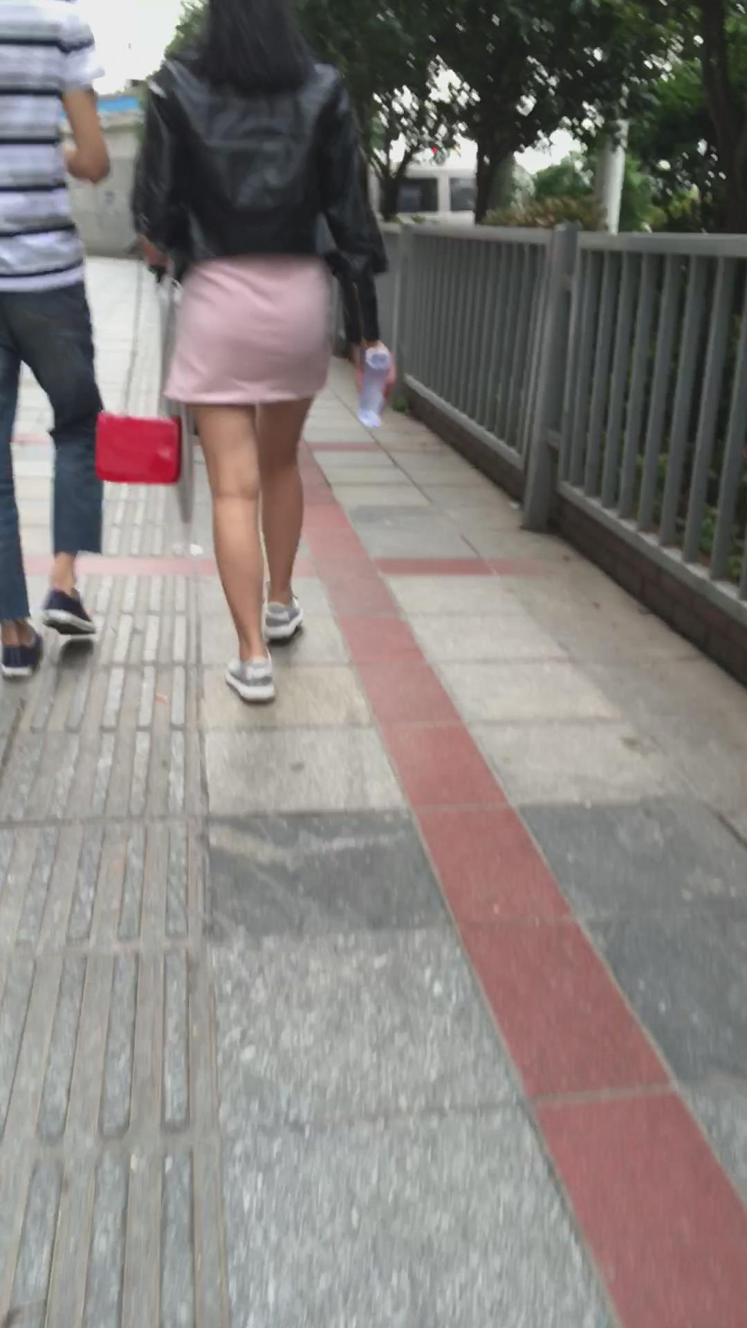 跟拍粉色短裙美眉,跟小男友逛街一脸甜蜜 编号2349