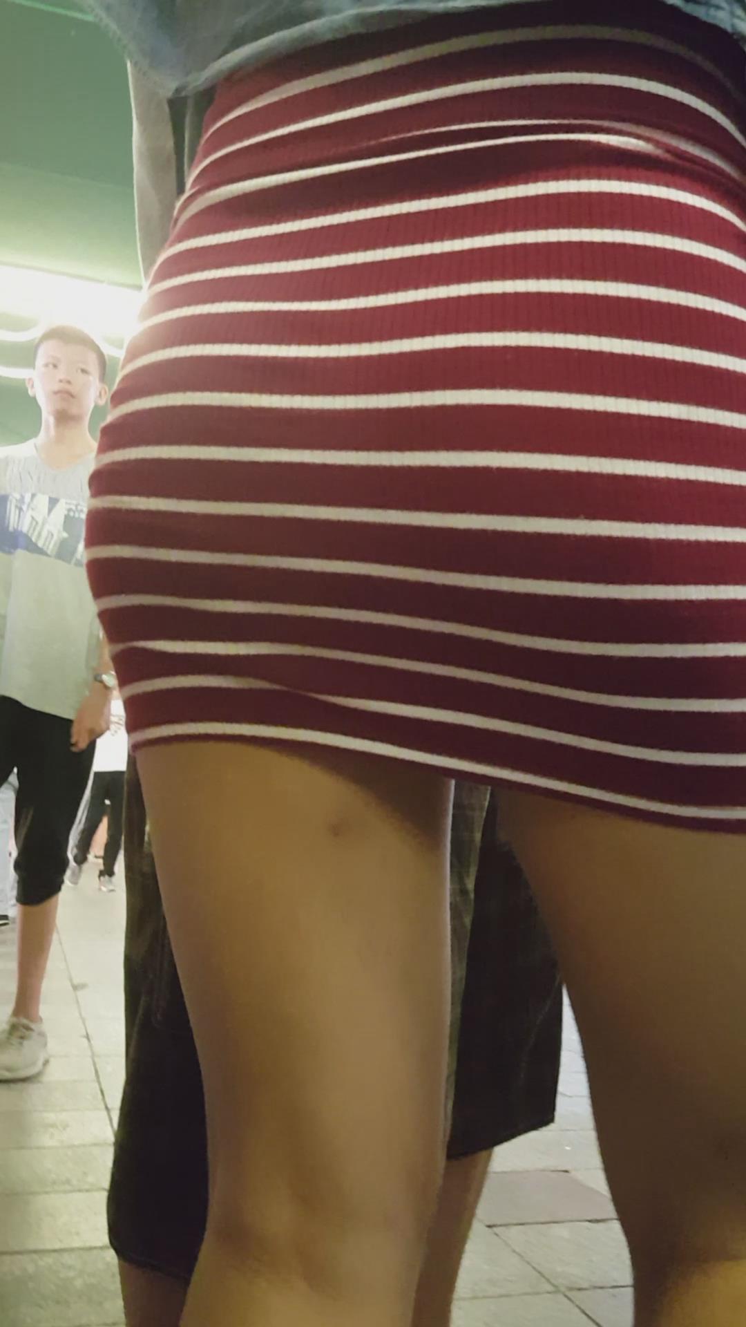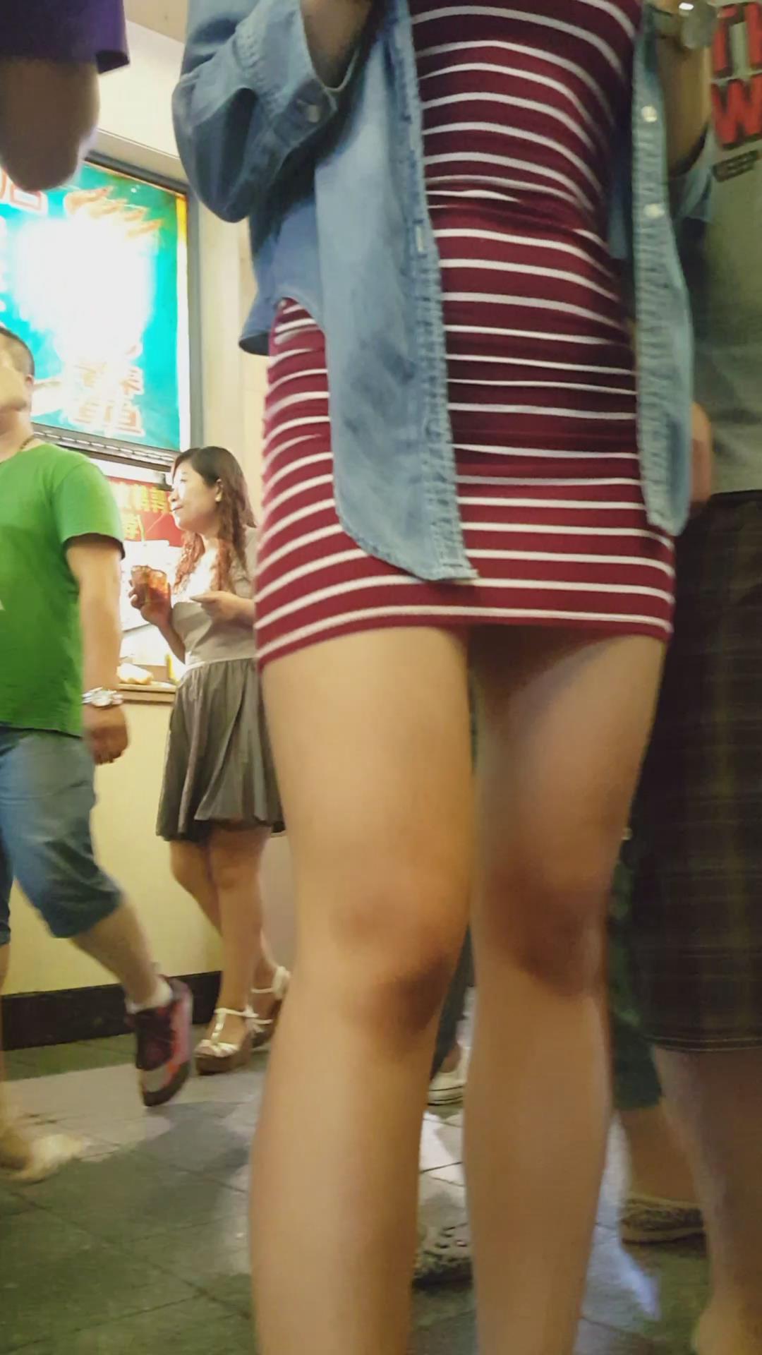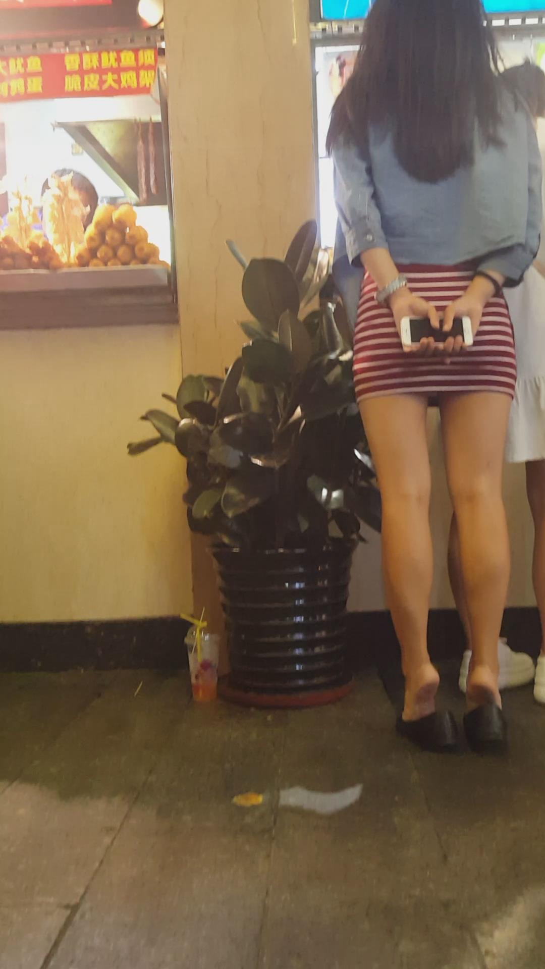 街拍大PP翘臀条纹短裙美眉 编号2370