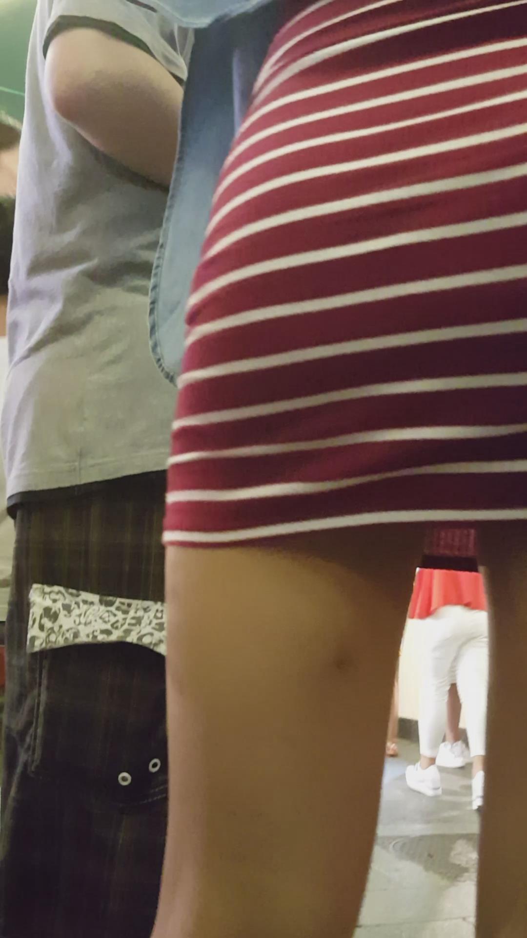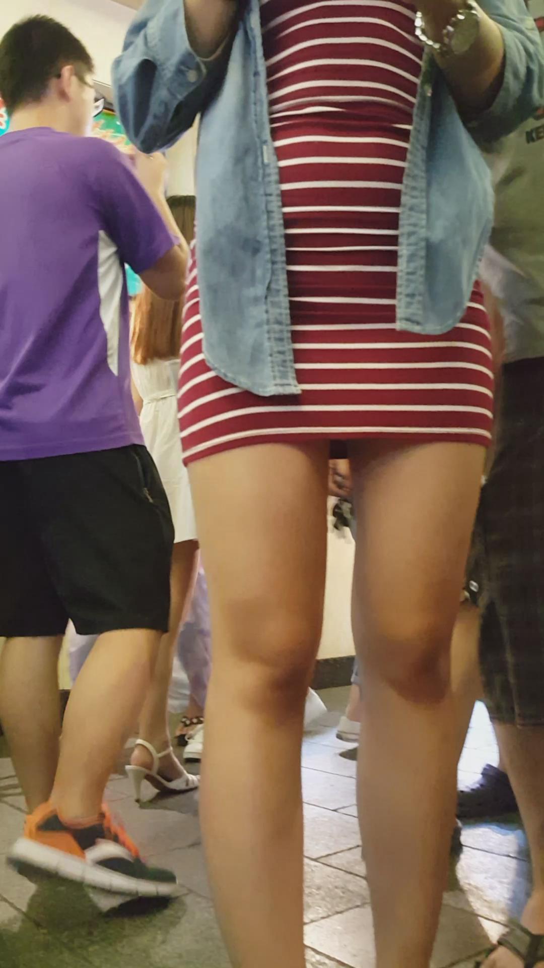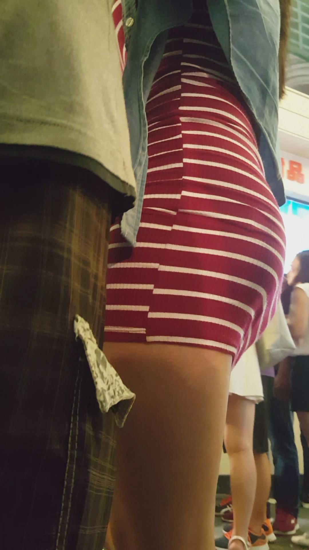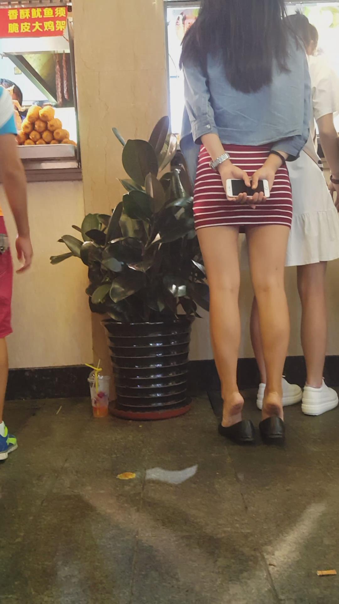街拍大PP翘臀条纹短裙美眉 编号2370