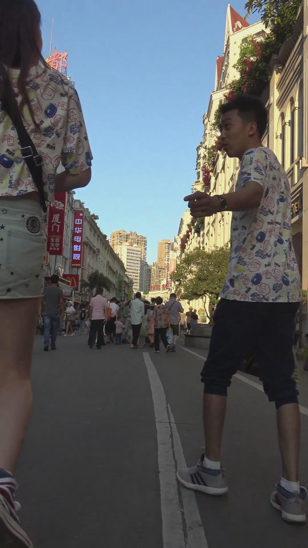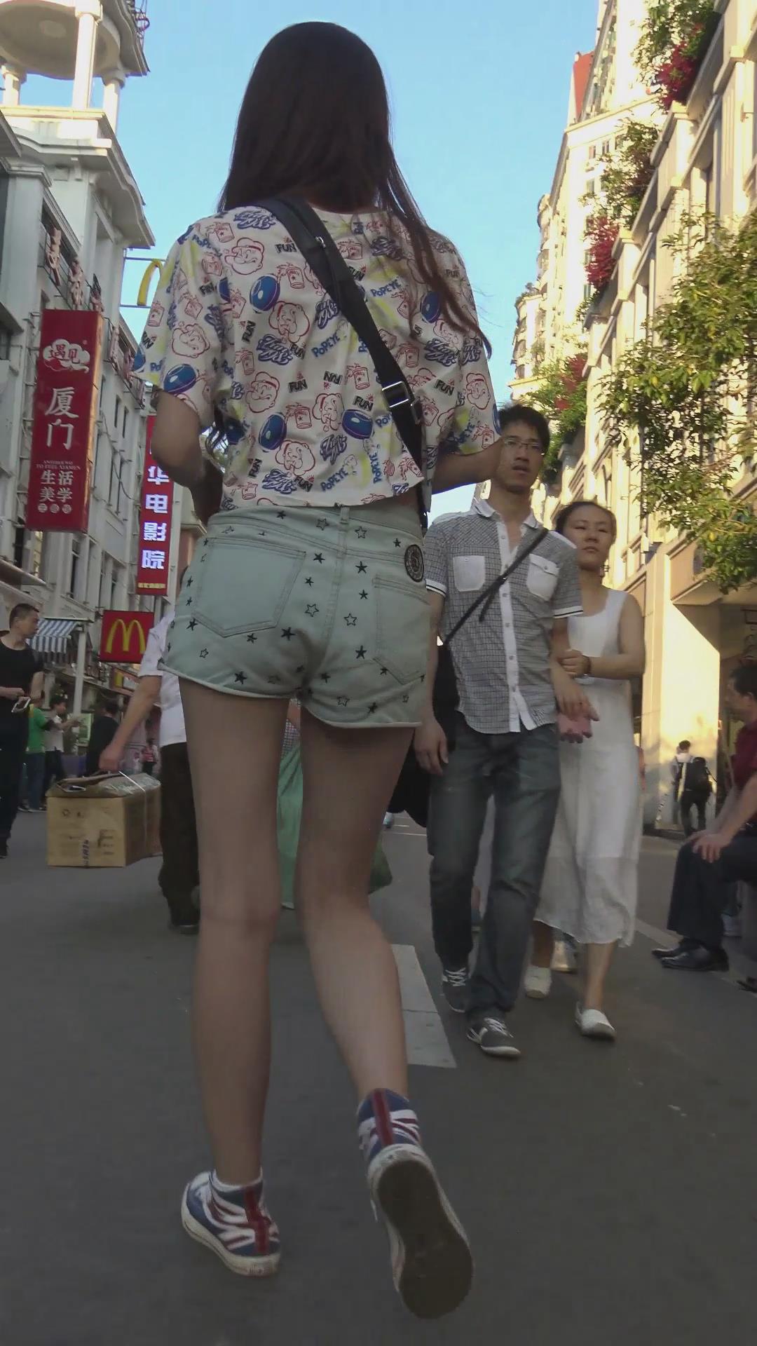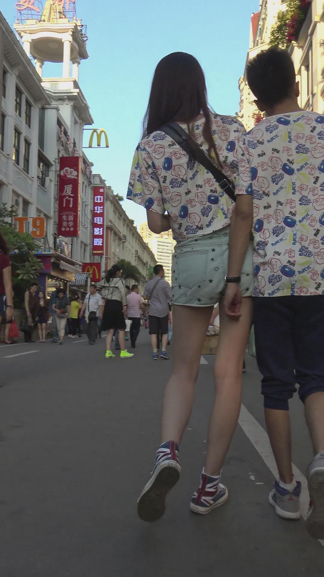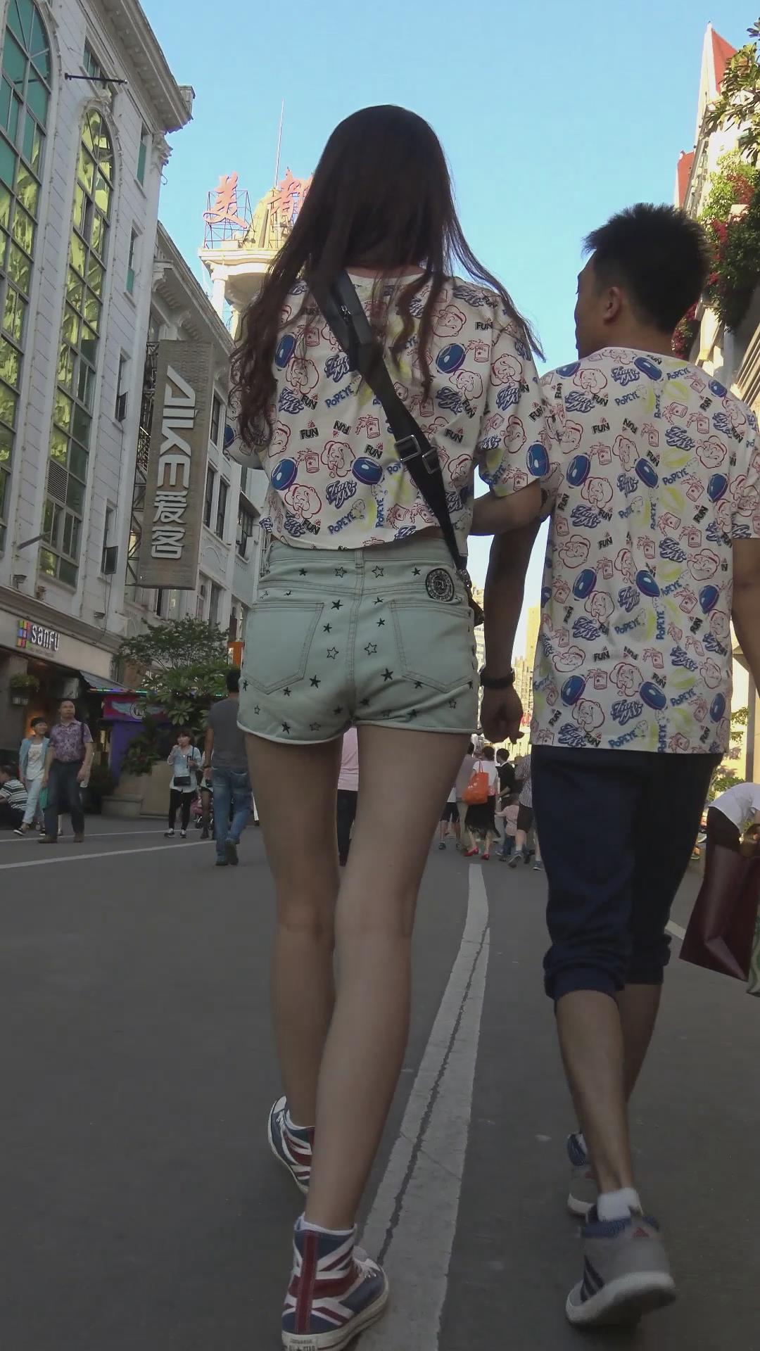 街拍跟男友穿情侣衫的热裤小美女 编号4655