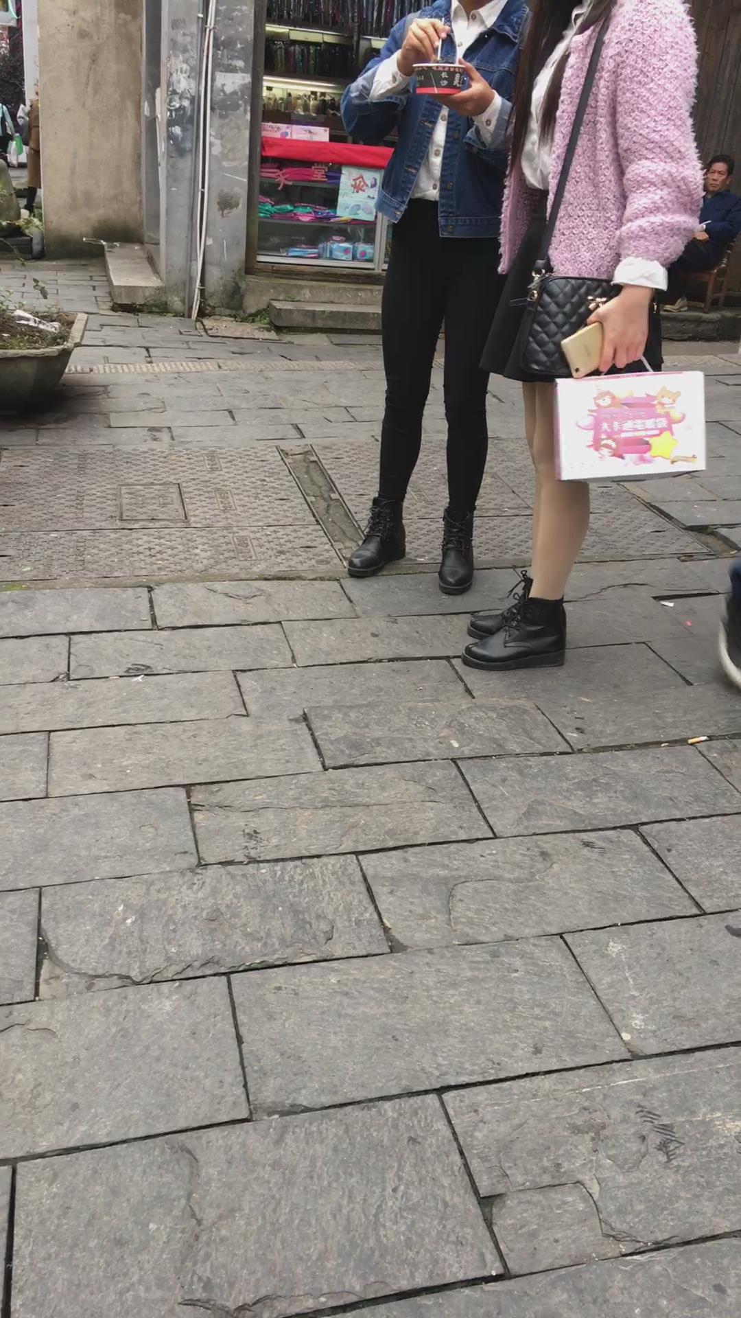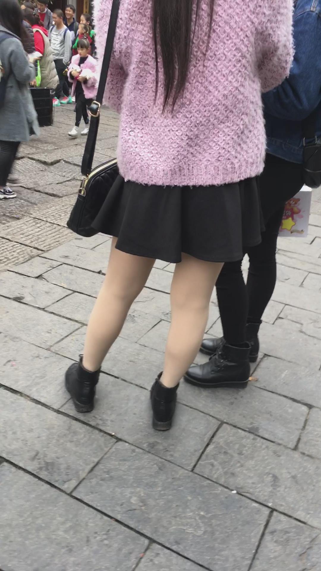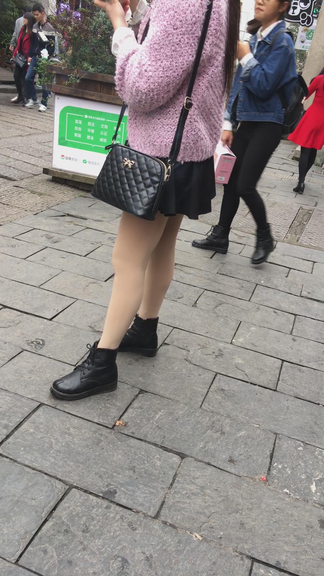 街拍粉色毛衣短裙肉丝袜清纯小妹 编号2375