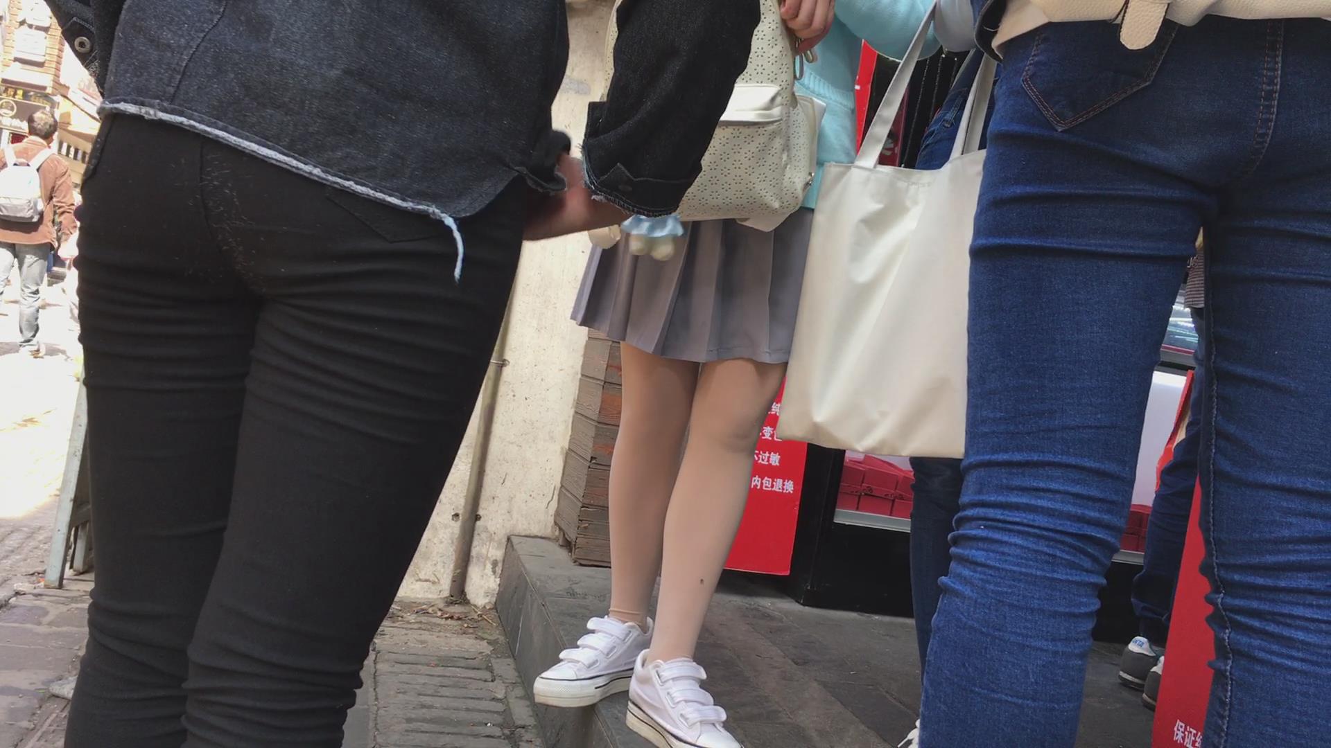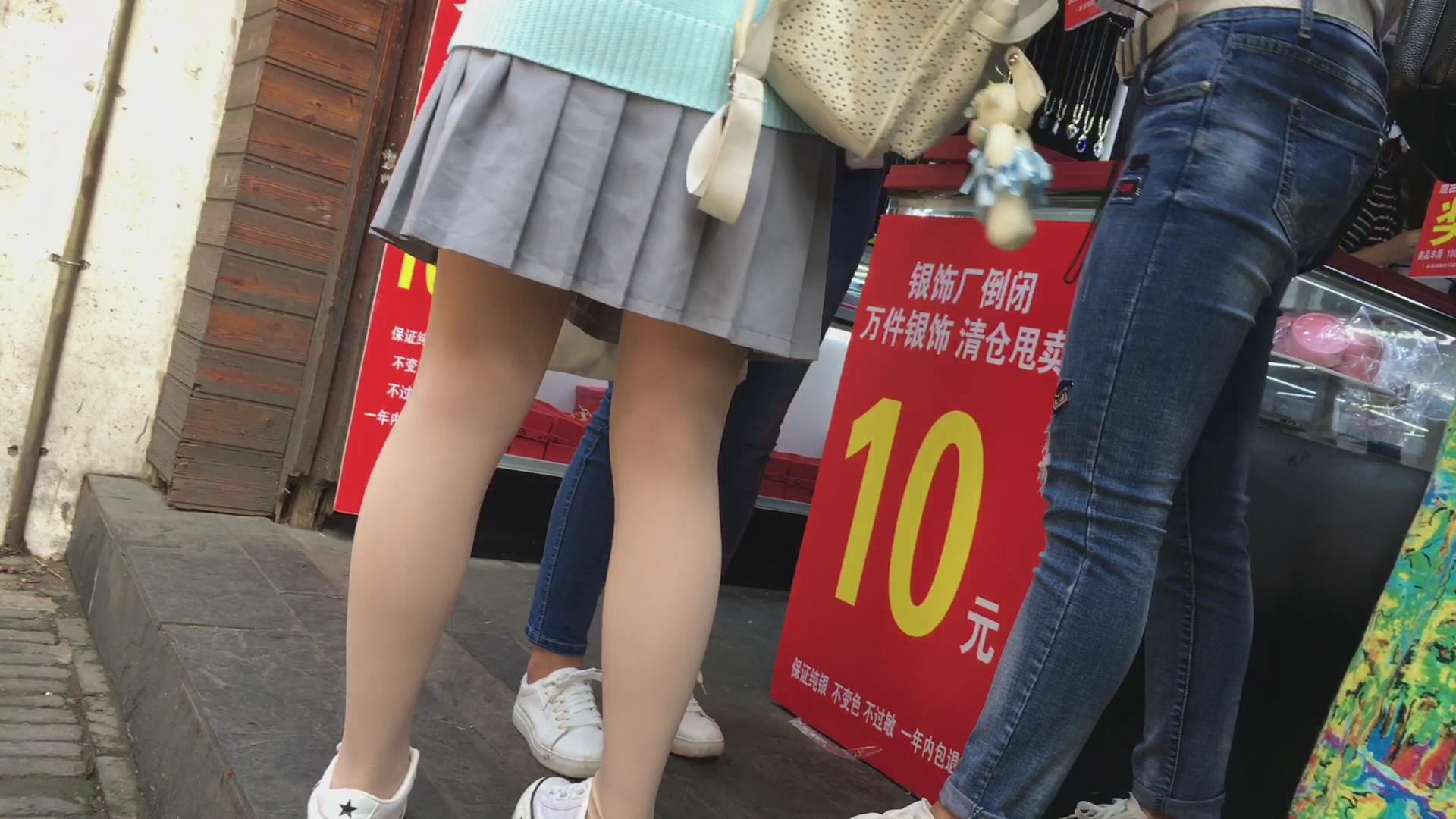 街拍短裙短腿肉丝袜帆布鞋清纯美眉 编号2383