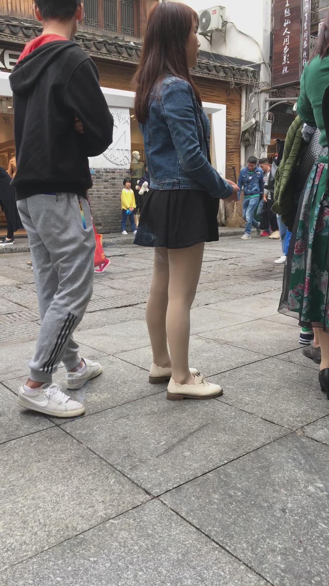 街拍短裙肉丝美腿牛仔小外套美眉 编号2396
