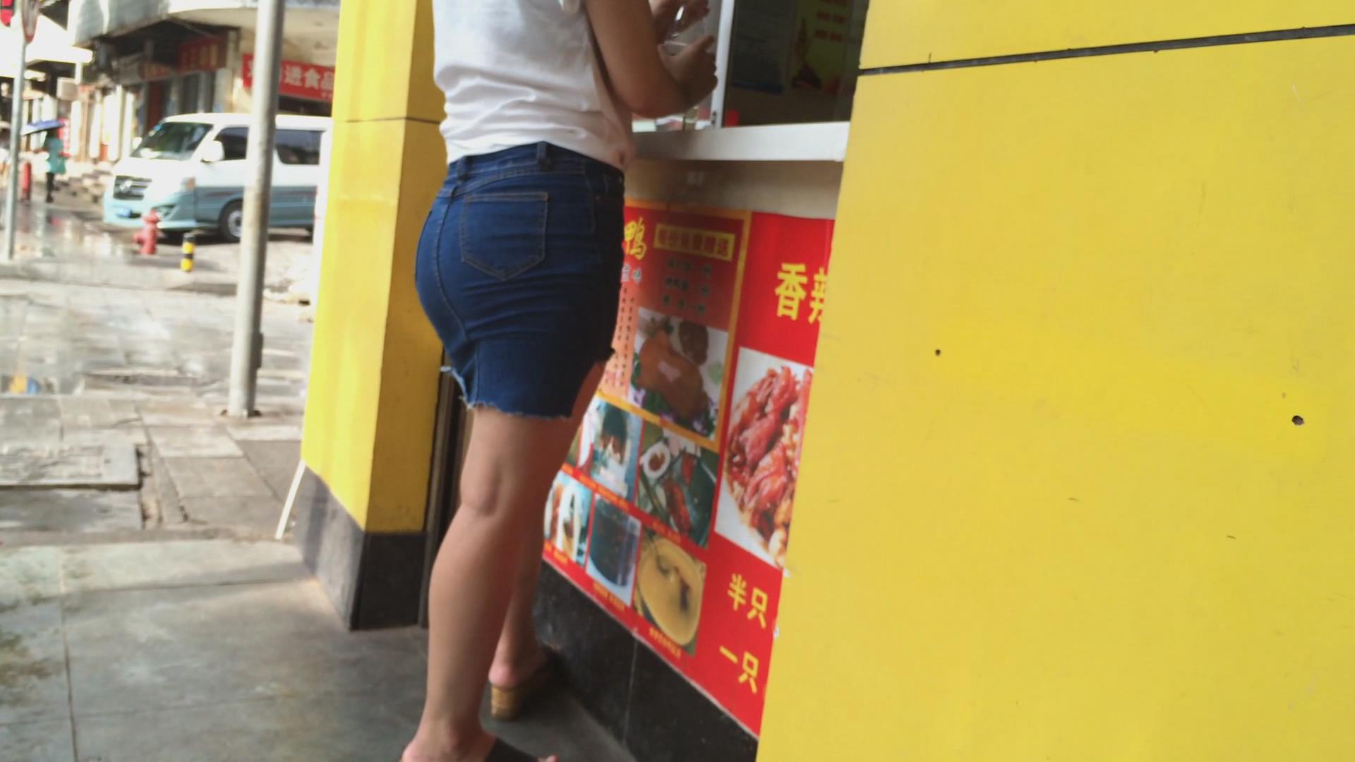 买绝味鸭脖的极品圆臀牛仔裙美女 编号2397