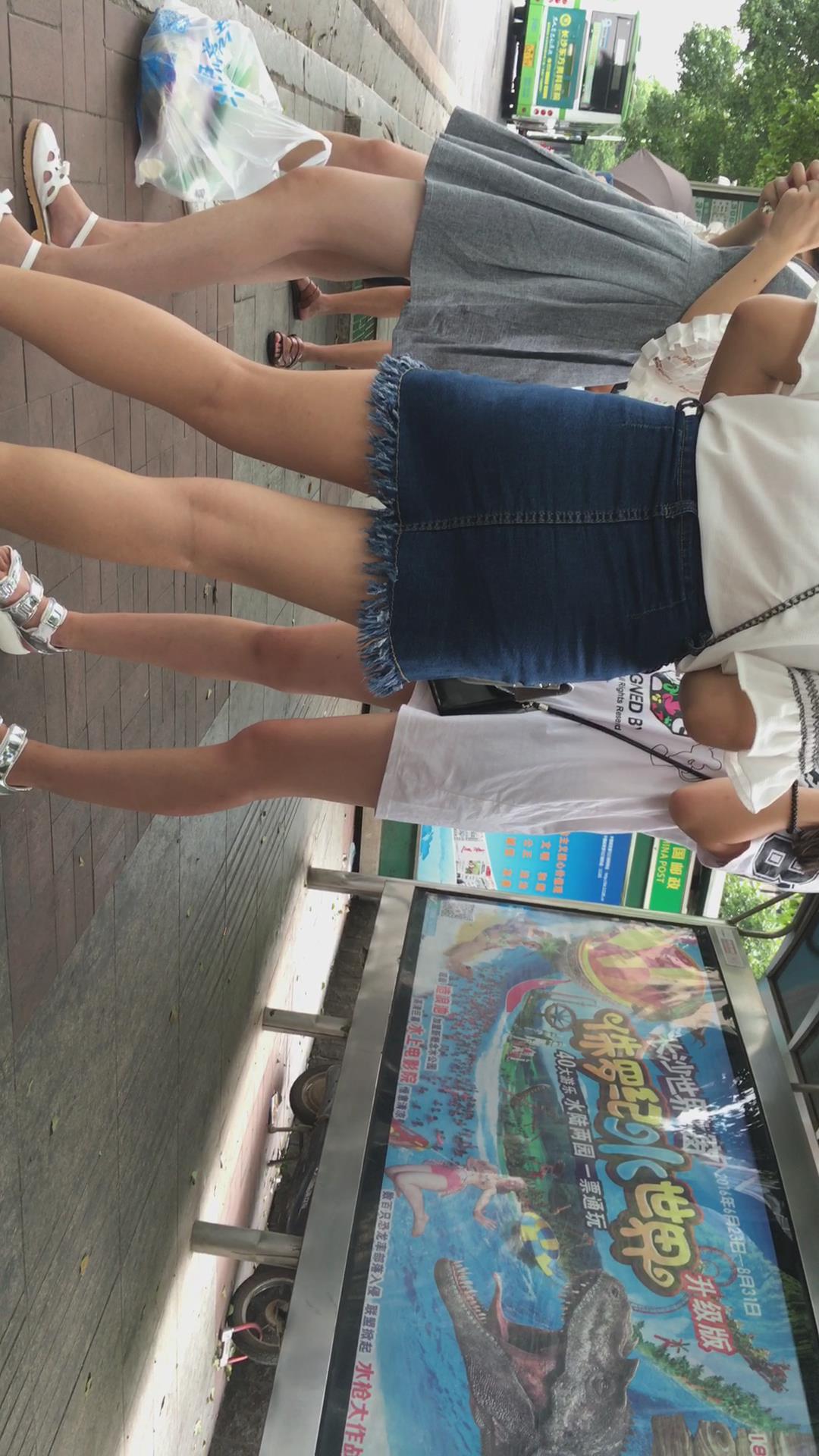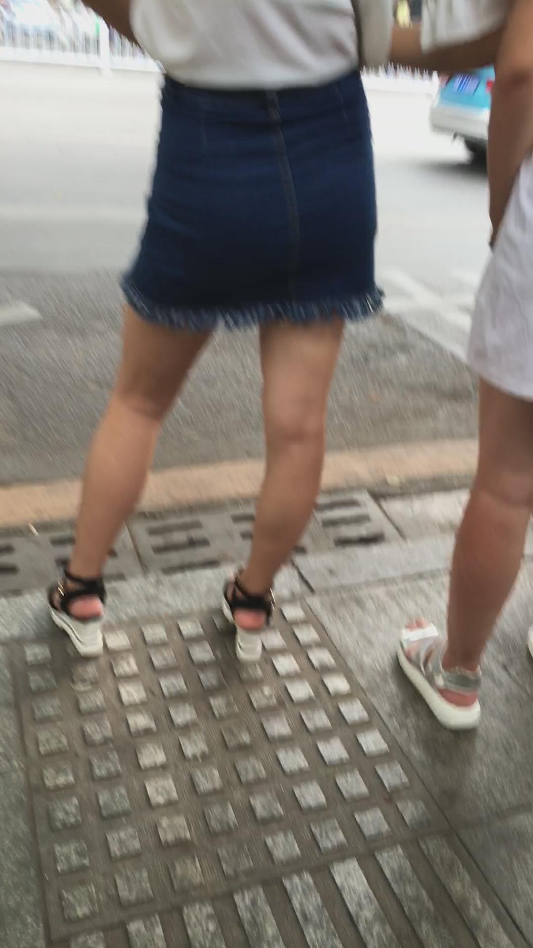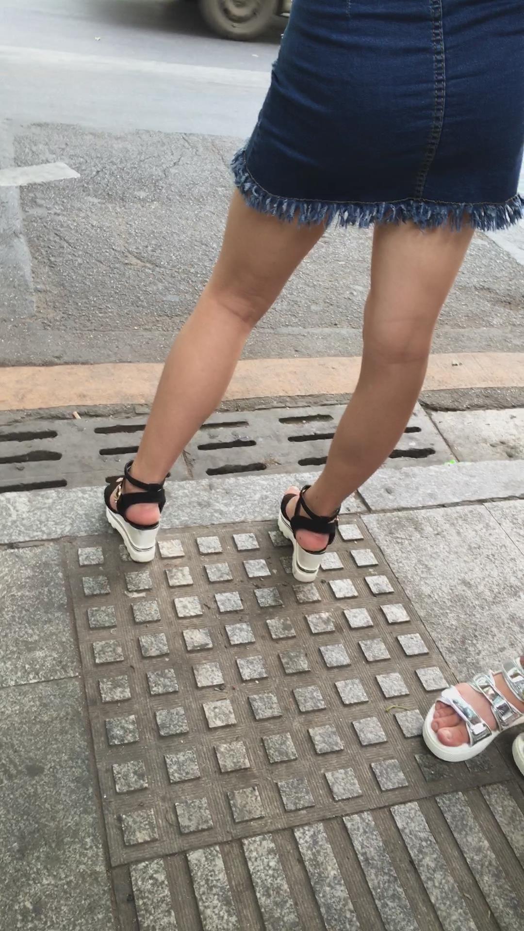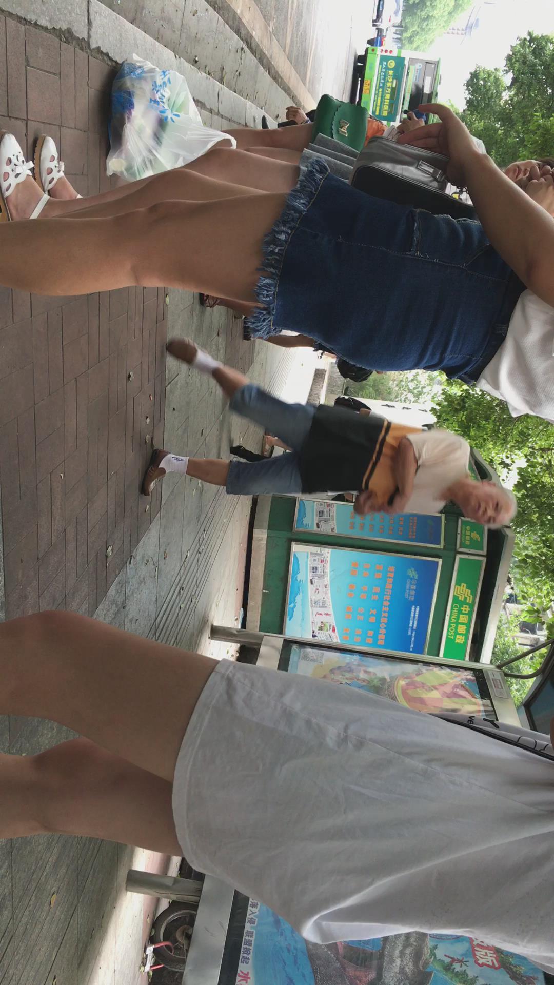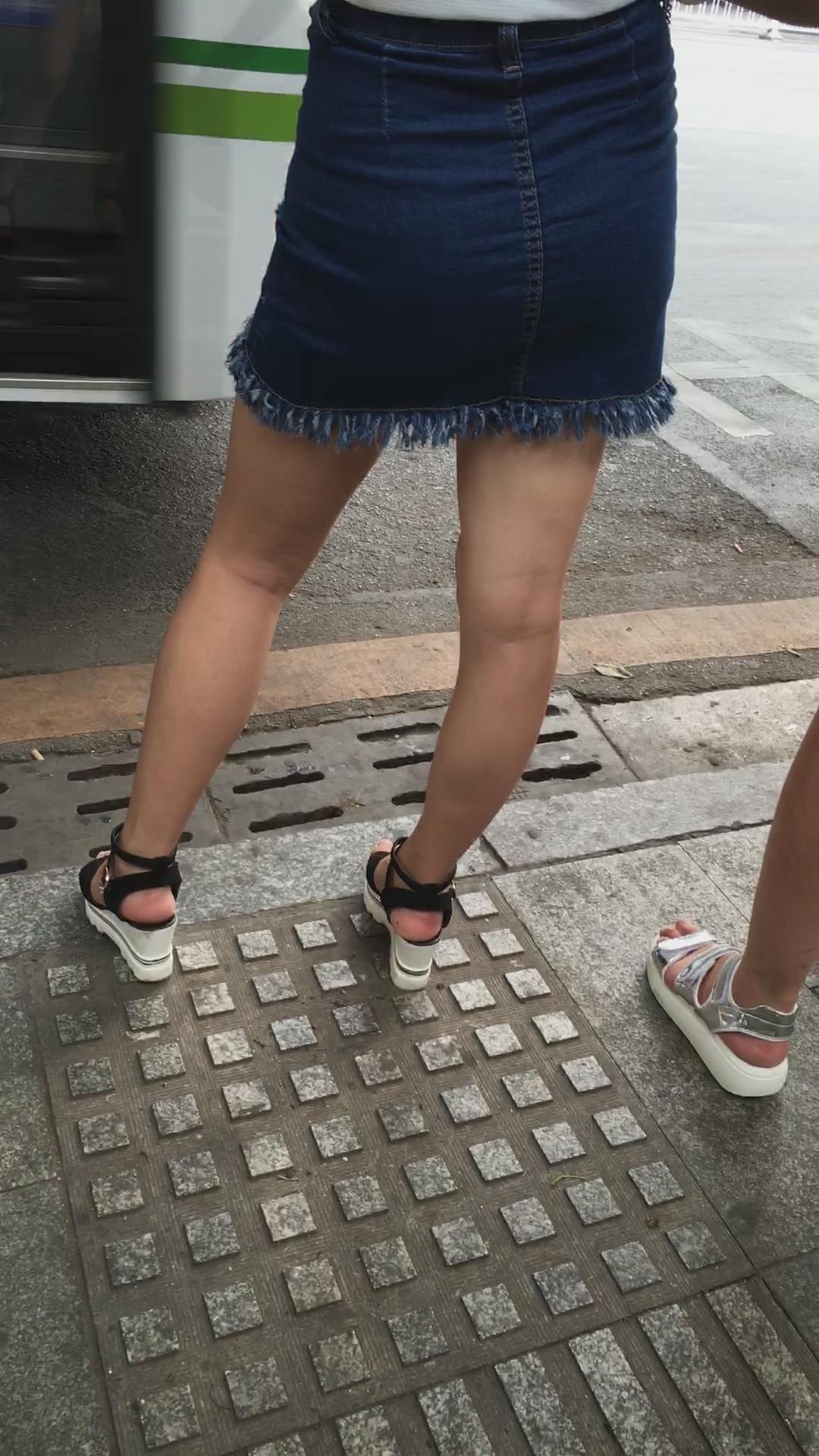 高腰牛仔裙裸腿妹子公交站等车 编号2408
