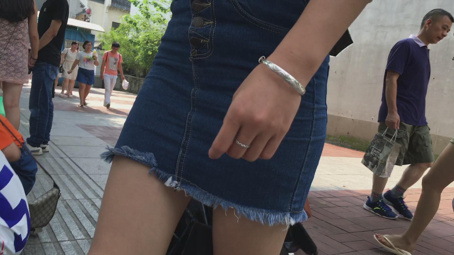 街拍美丽的紧身包臀牛仔裙女孩 编号2429